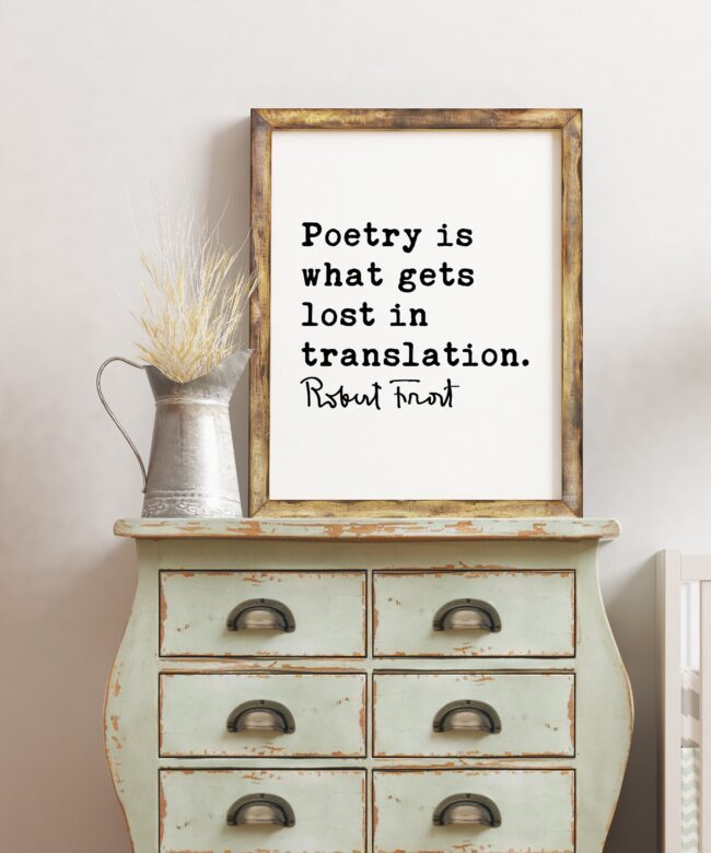 Poetry is what gets lost in translation. – Robert Frost Quote Print Art, Poems, Poetry Quotes, Quotes about Poetry