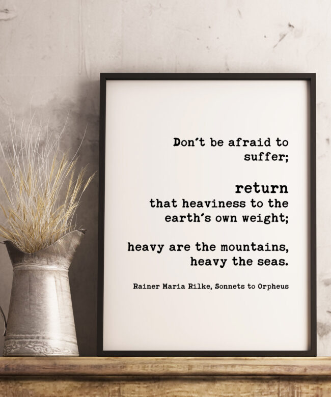 Don’t be afraid to suffer; return that heaviness to the earth’s own weight; – Rainer Maria Rilke – Typography Print – Minimalist Art Decor