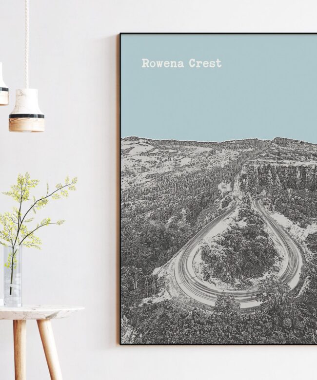 Rowena Crest at Columba River Gorge – Oregon Skyline Vintage Design Minimalist Art Print – Rowena Crest Art Print – Oregon Art Print
