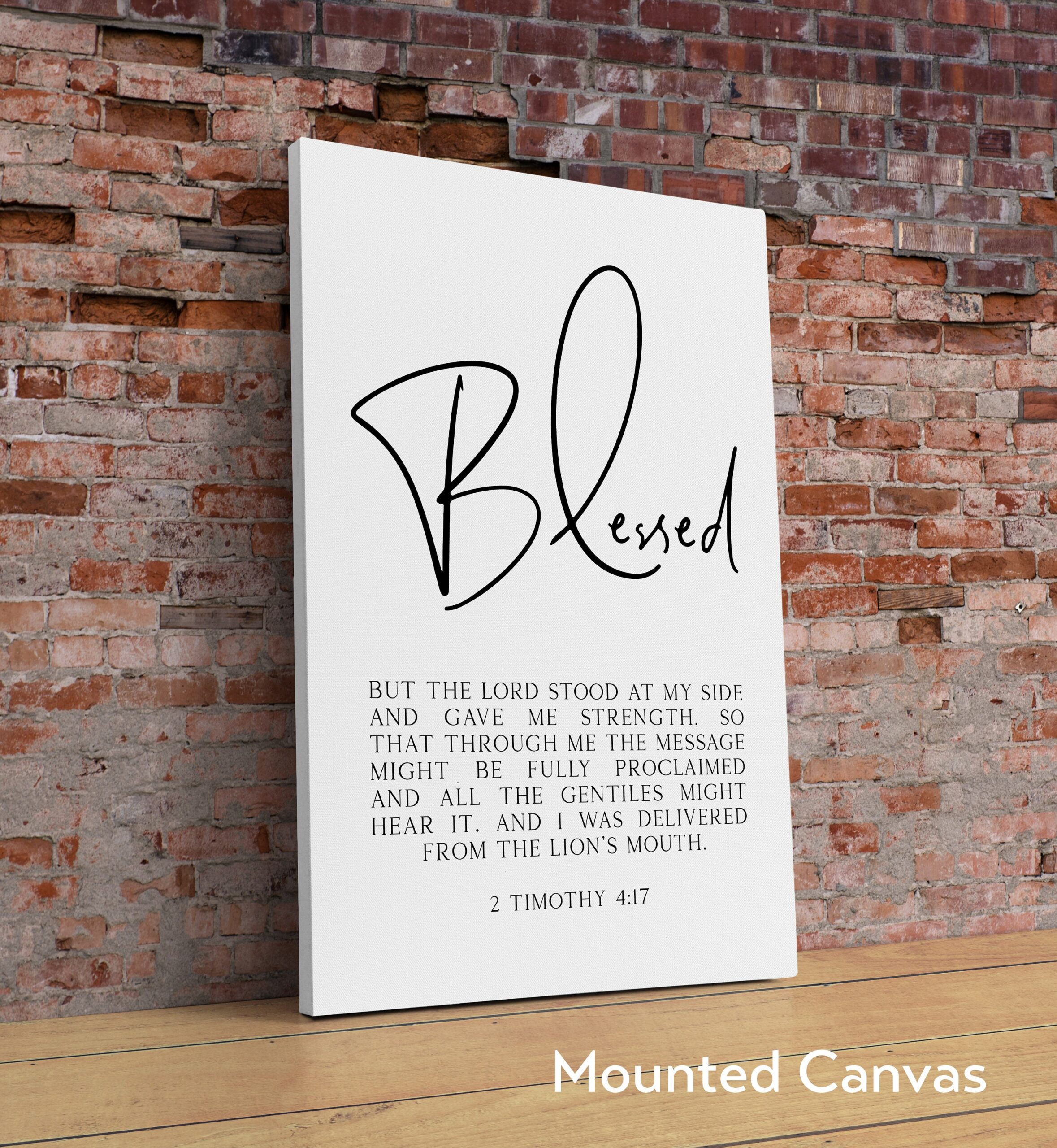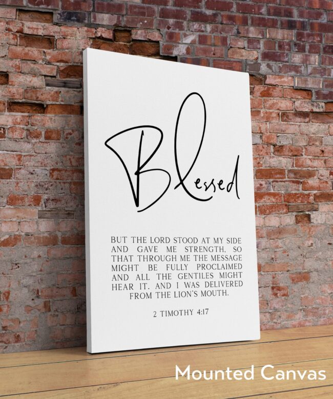 2 Timothy 4:17 – Blessed – But the Lord stood at my side and gave me strength. Typography Art Print – Scripture – Christian – Bible Verse
