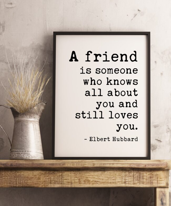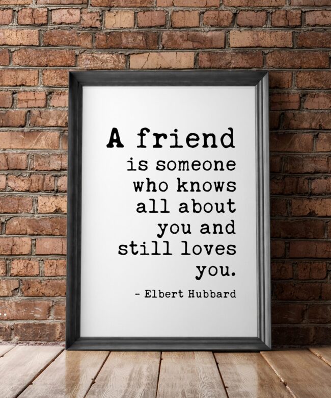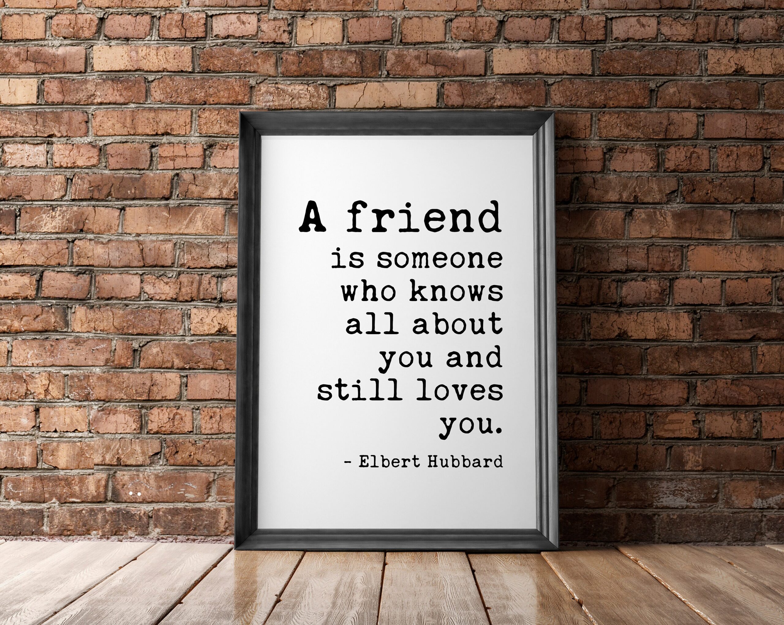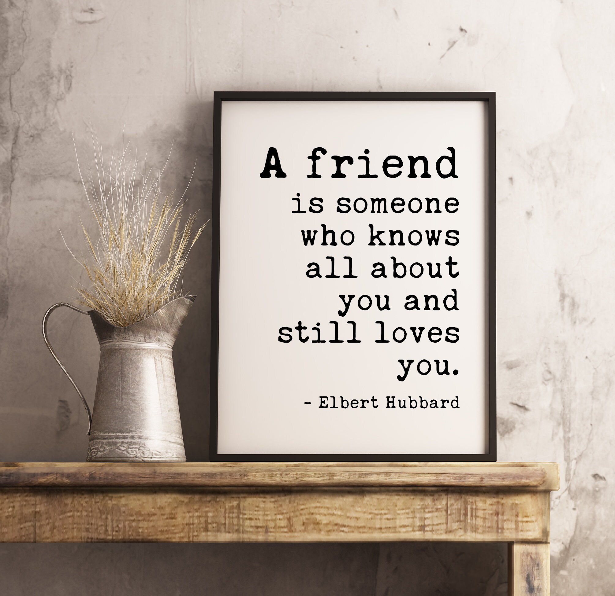 A Friend is Someone Who Knows All About You and Still Loves You by Elbert Hubbard Quote – Friendship – Best Friend Gift – Minimalist Art