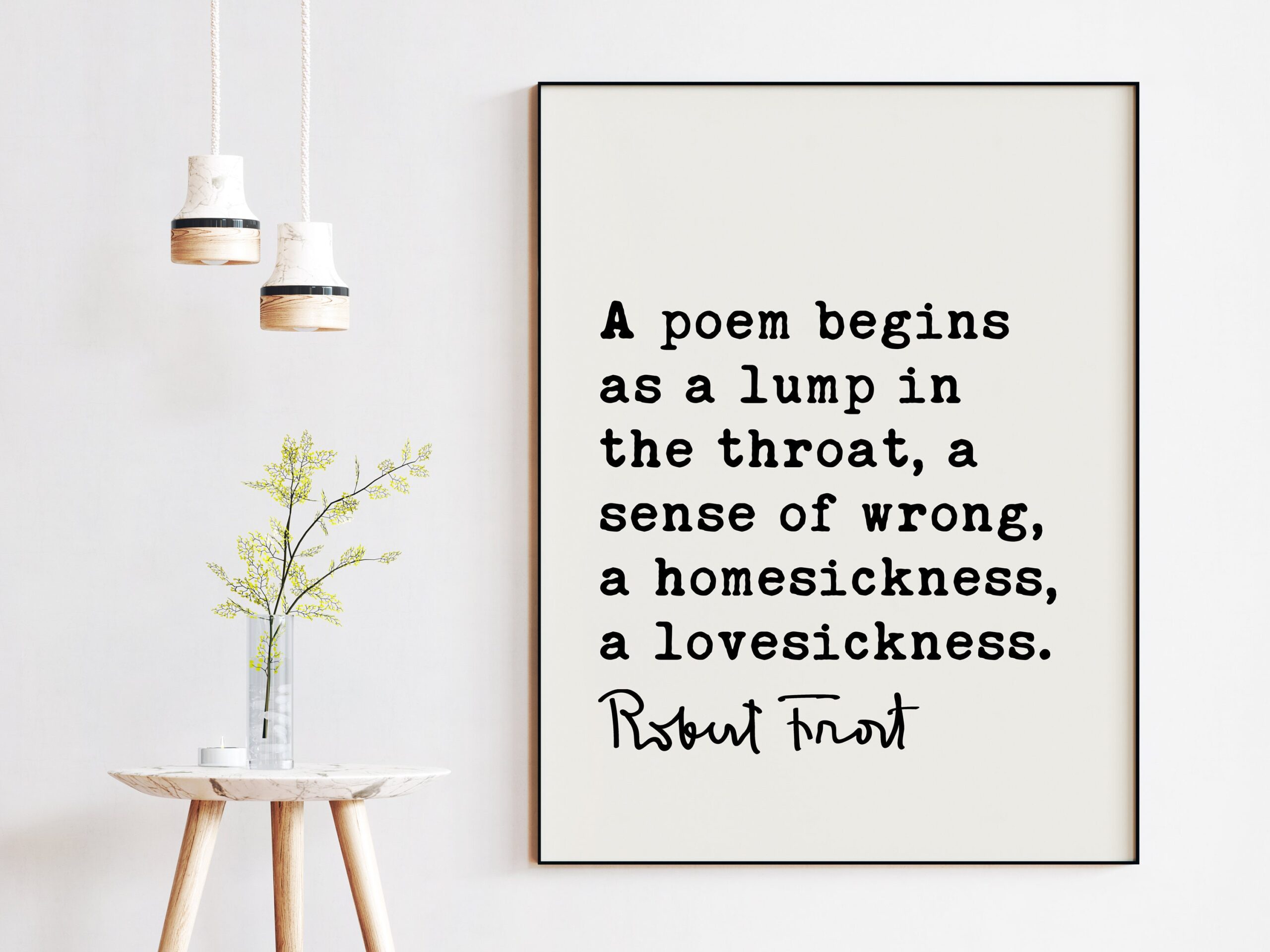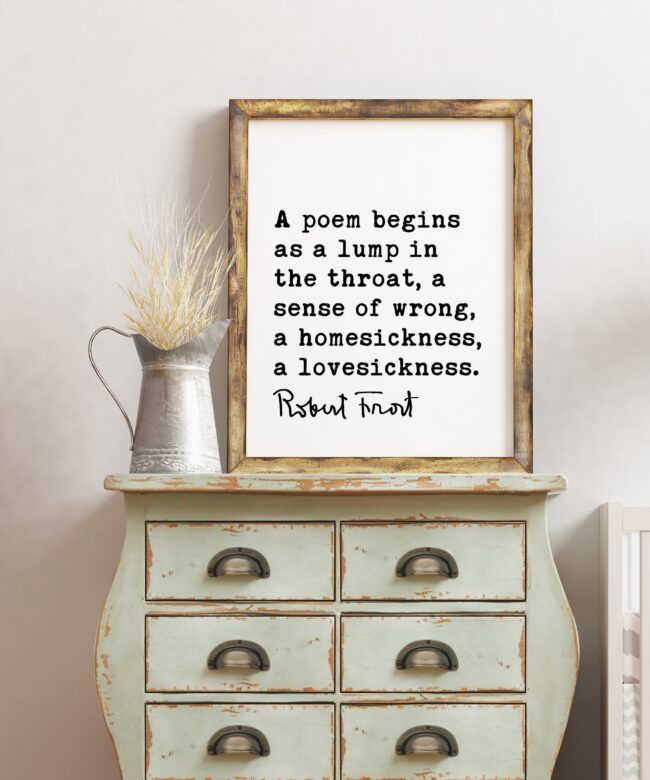 A poem begins as a lump in the throat, a sense of wrong, a homesickness, a lovesickness. – Robert Frost Quote Print Art, Love Poems