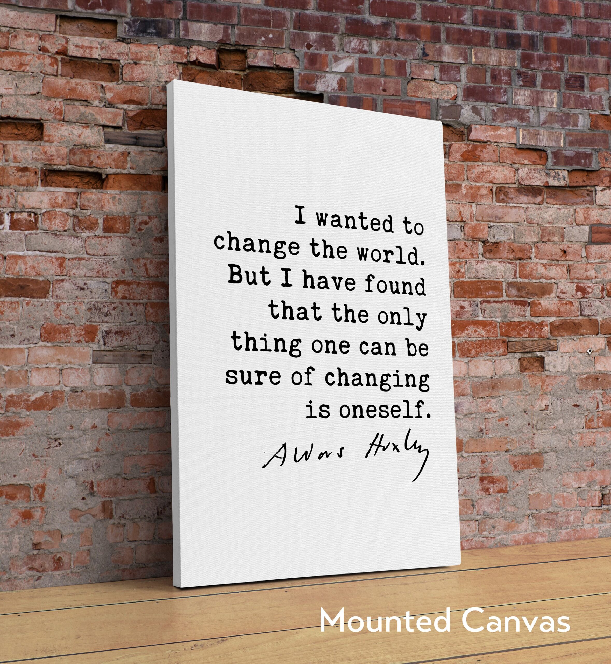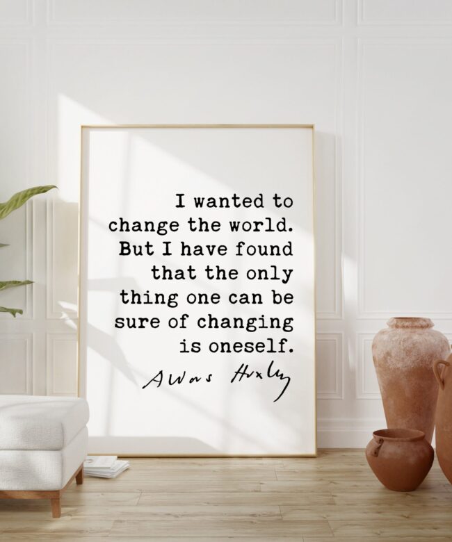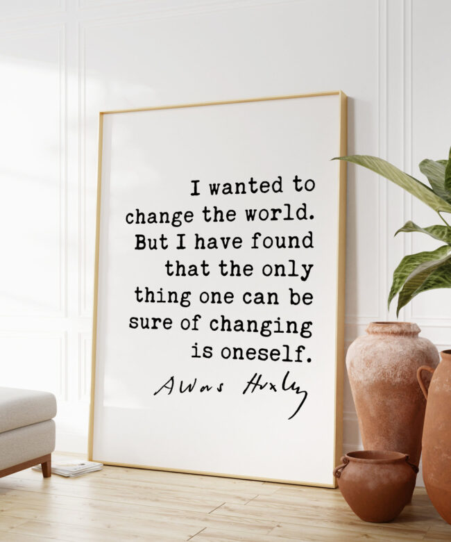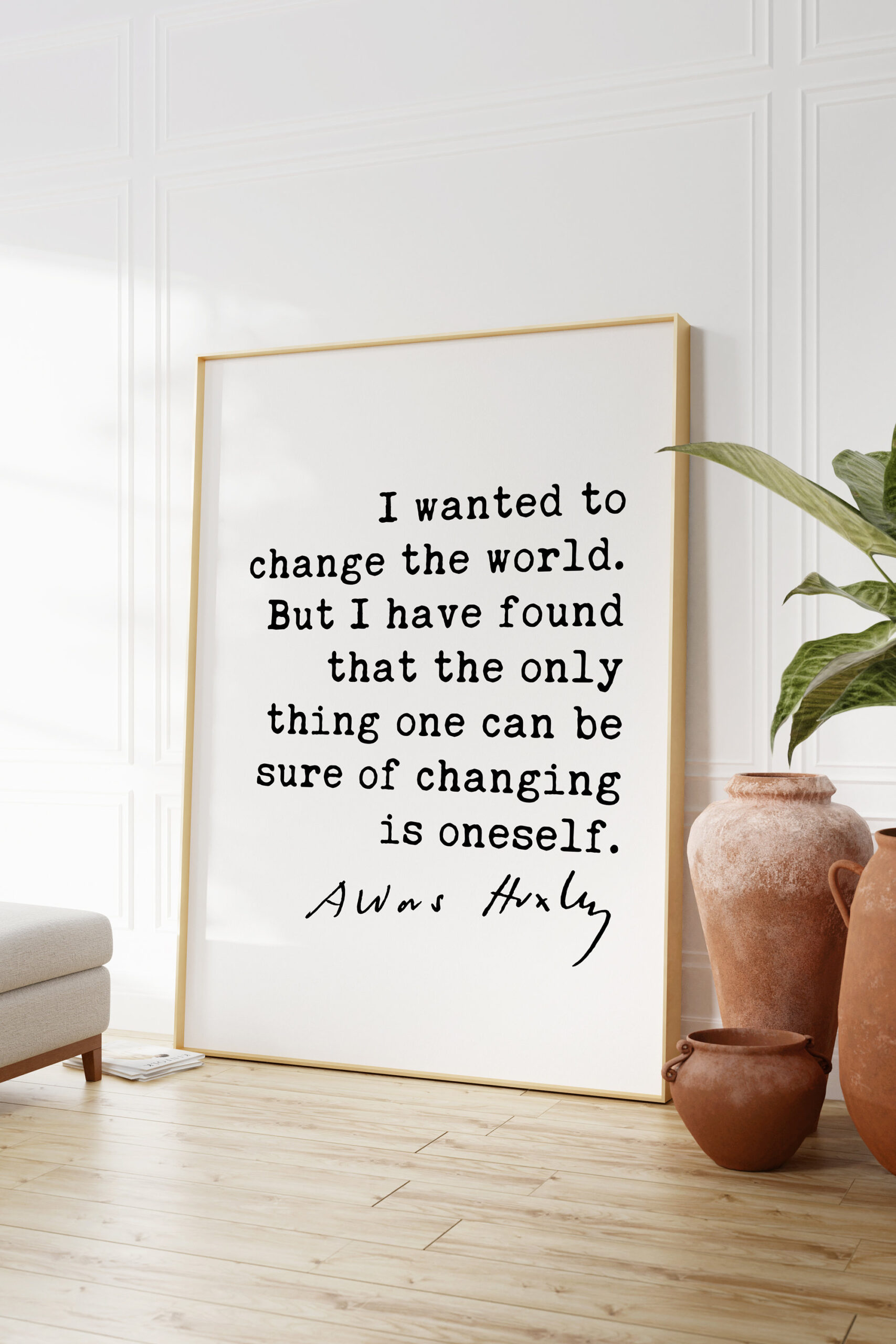 Get ready to transform your space with our Aldous Huxley Quote Typography Art Print: “I Wanted To Change the World. But I Have Found That the Only Thing One Can Be Sure of Changing Is Oneself.”