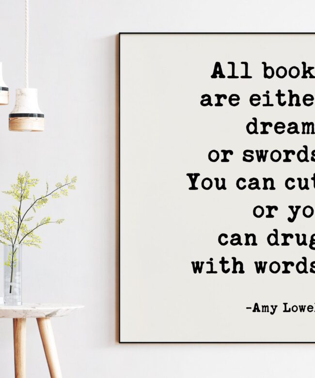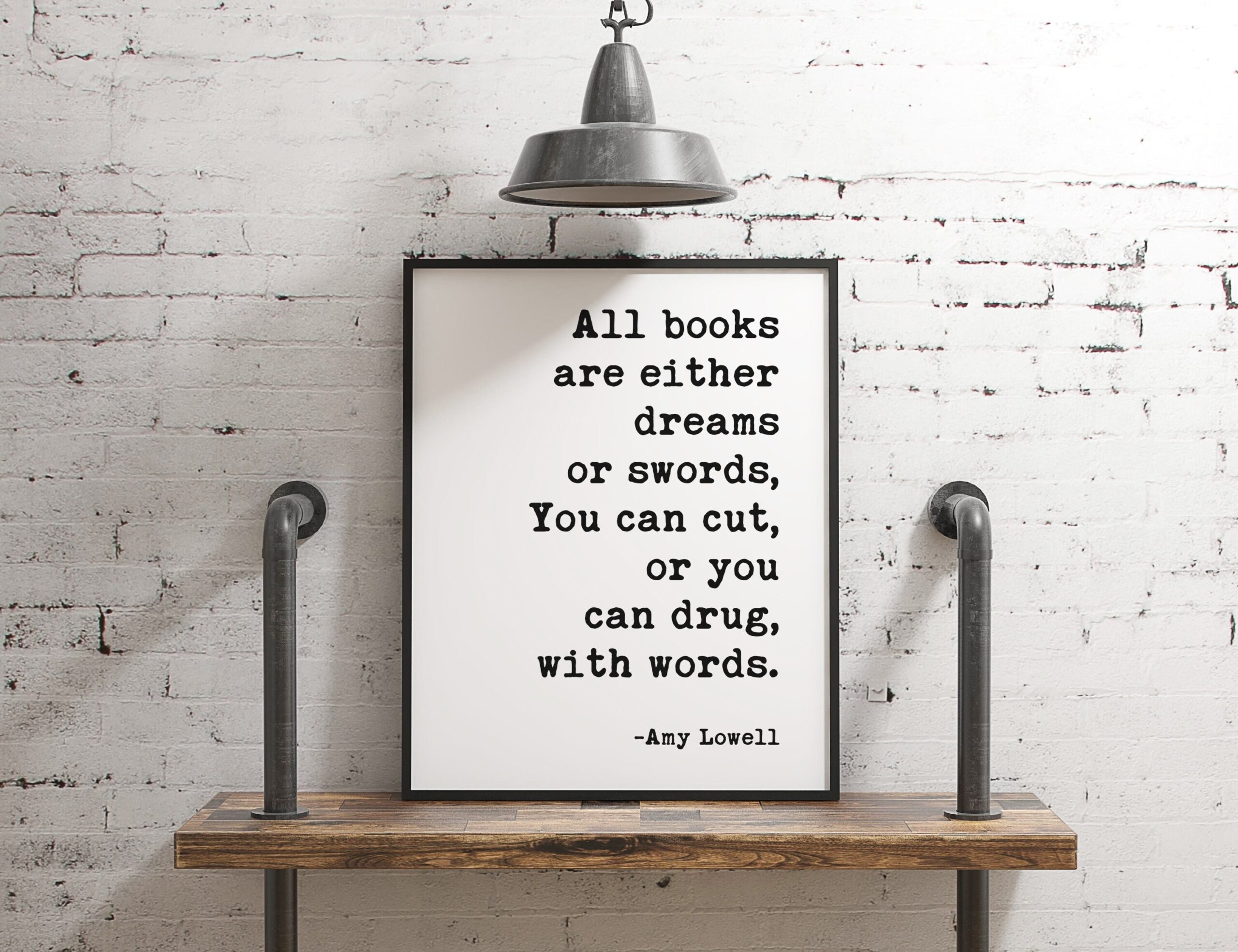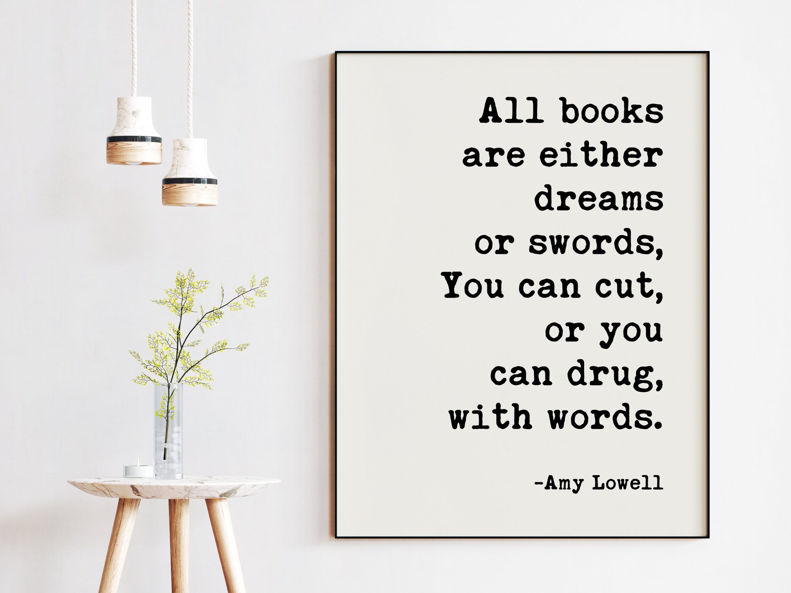 All books are either dreams or swords, You can cut, or you can drug, with words. – Amy Lowell Poem, Typography Print, Poem Art, Book Lovers