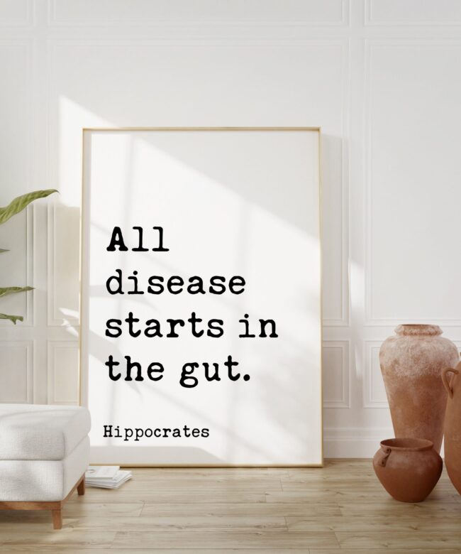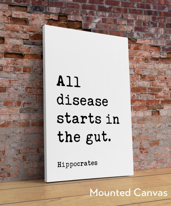 All disease starts in the gut. Hippocrates Quote Typography Art – Wellness – Fitness – Inspiration – Health