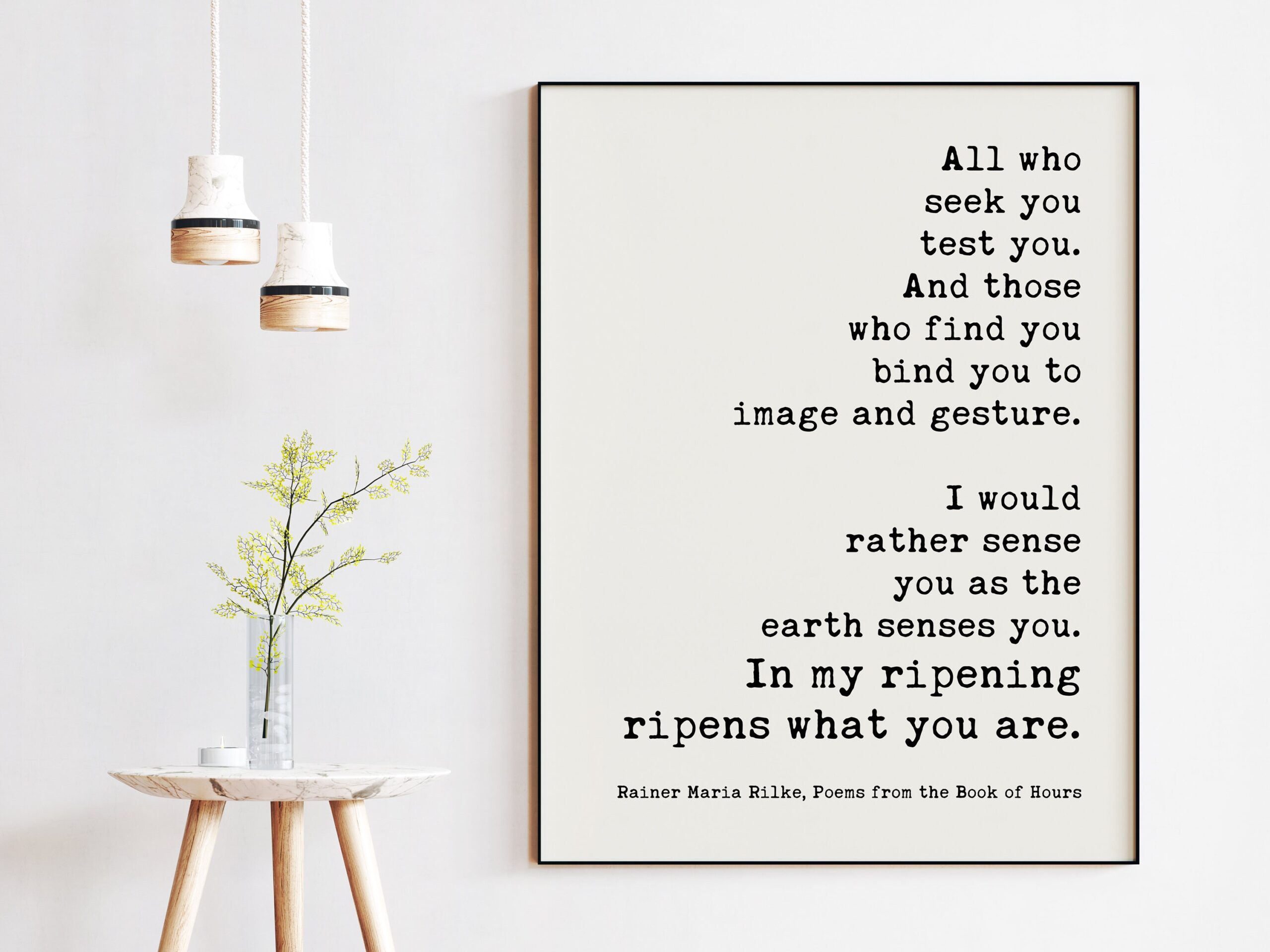 All who seek you test you. And those who find you bind you to image and gesture. Rainer Maria Rilke, Book of Hours: Love Poems to God