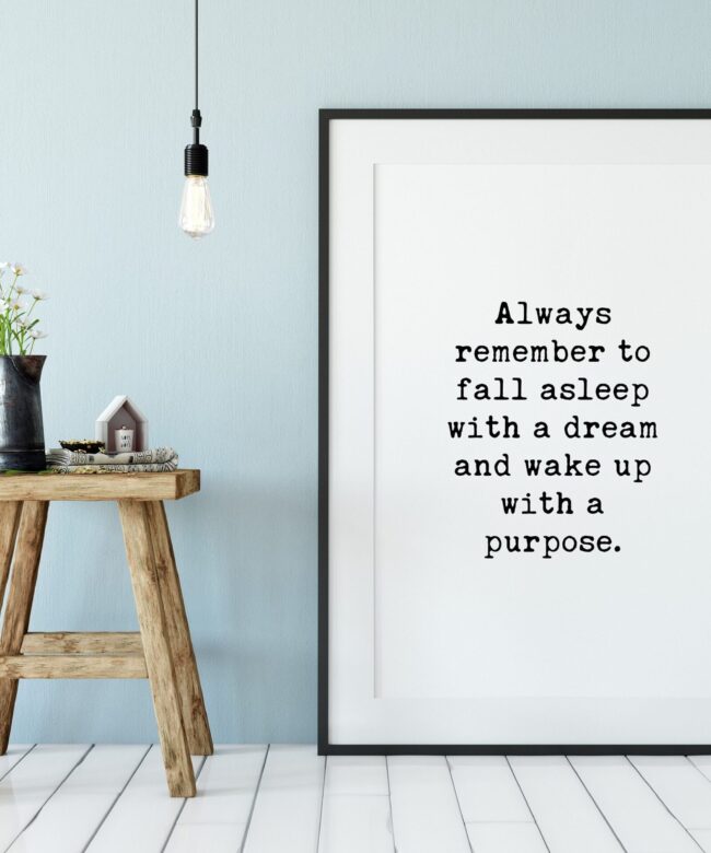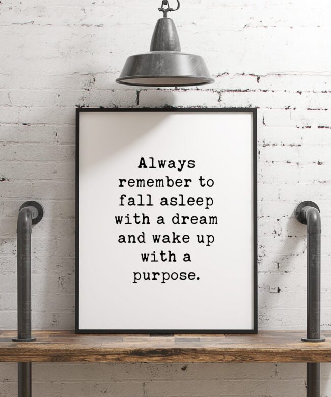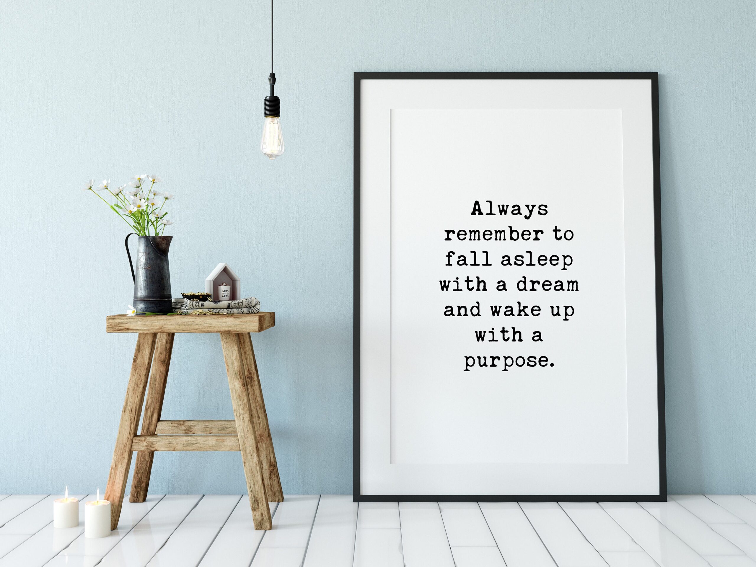 Always Remember to Fall Asleep with a Dream and Wake up with a Purpose Typography Print – Home Wall Decor – Minimalist Decor
