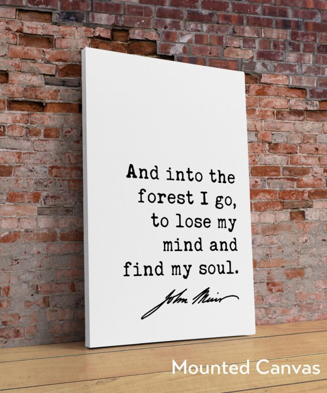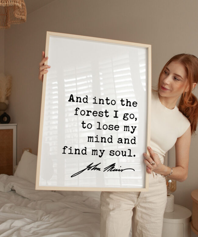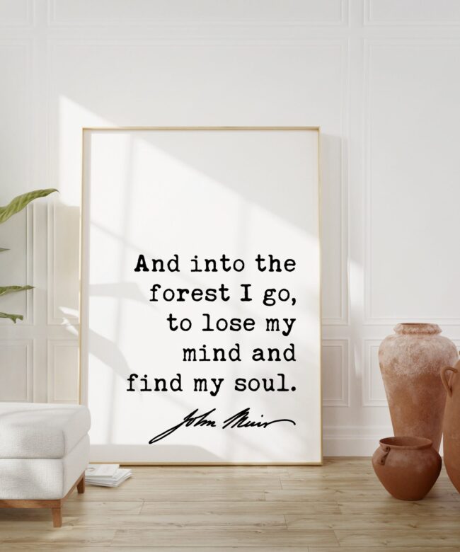 And into the forest I go, to lose my mind and find my soul. John Muir Quote Typography Art Print