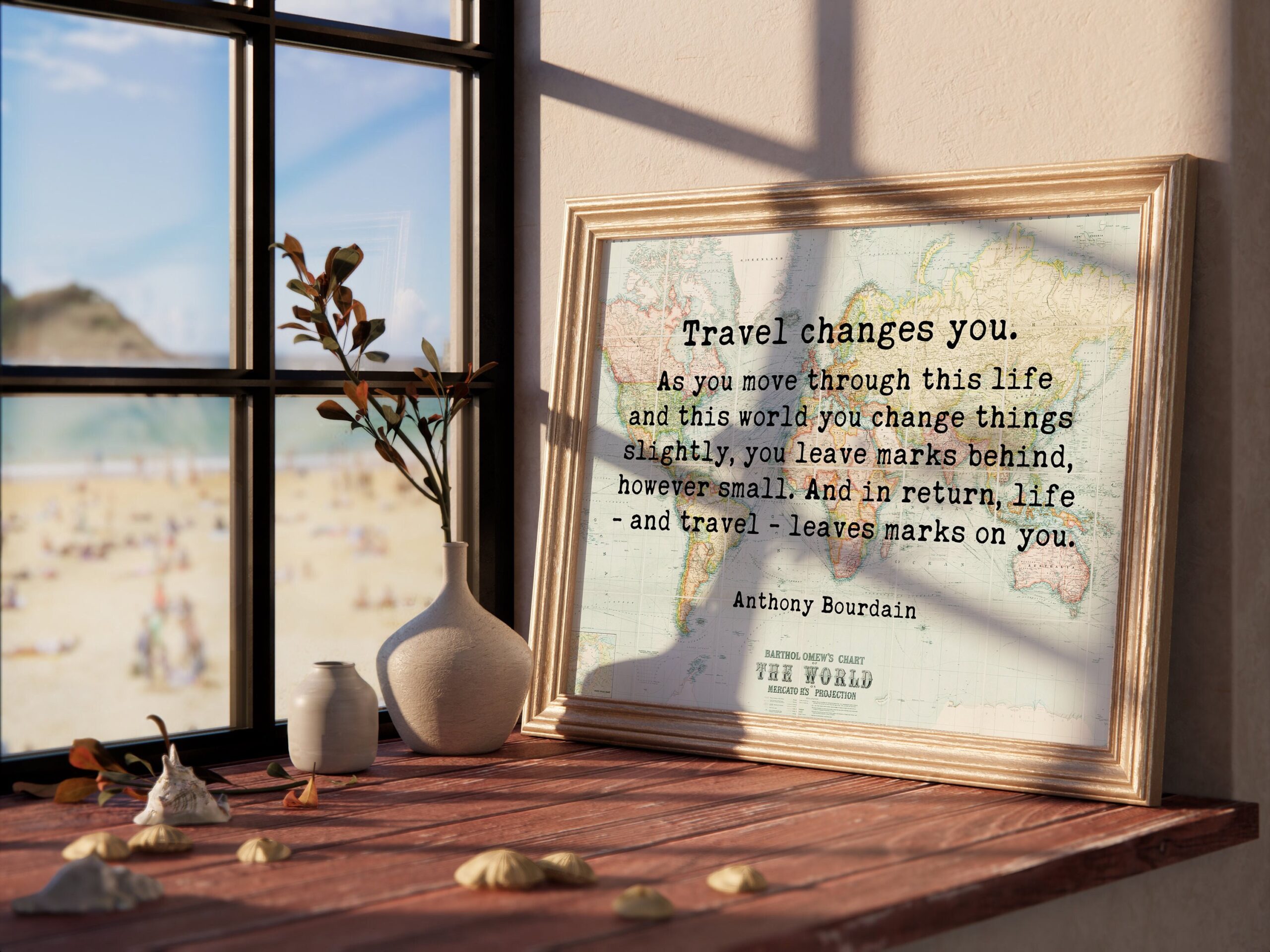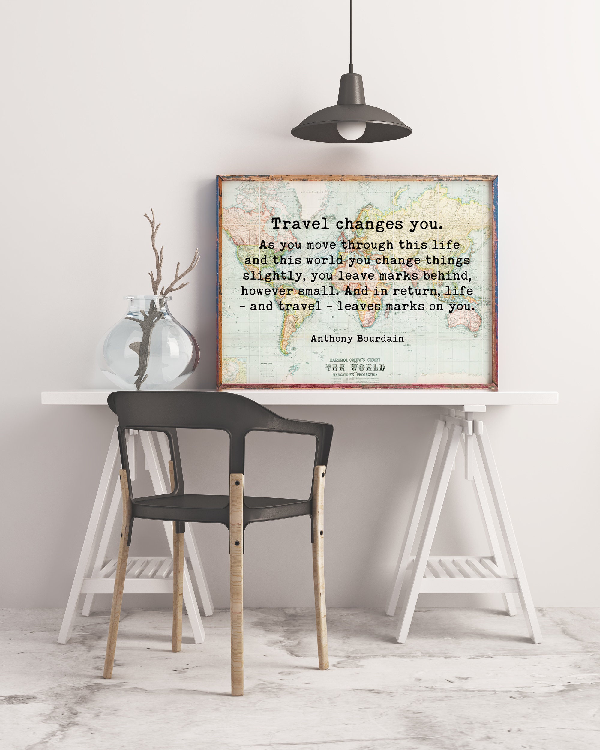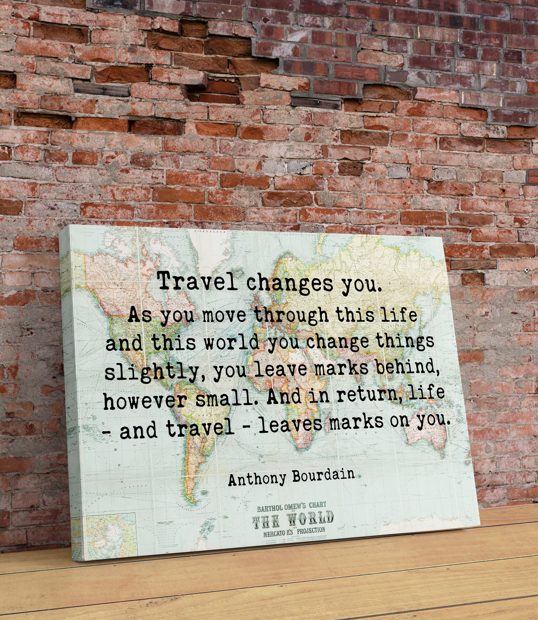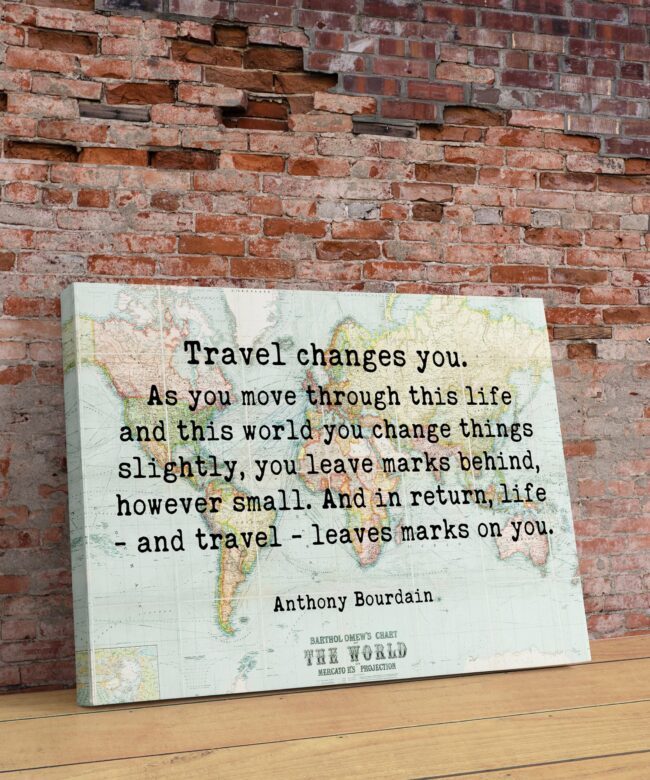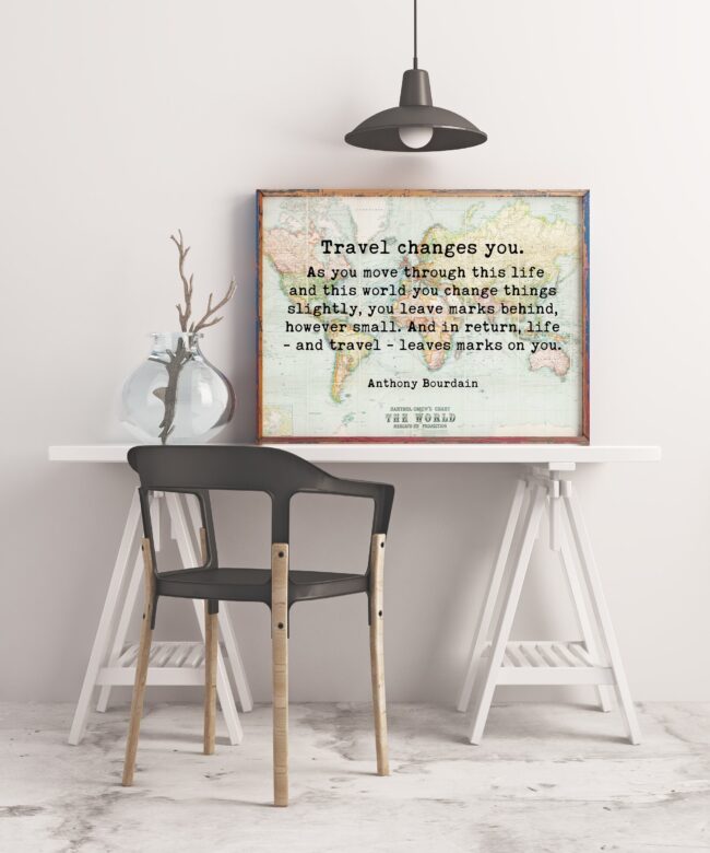 Anthony Bourdain Quote – Travel Changes You Typography Wall Art – With World Map – Minimalist Wall Decor