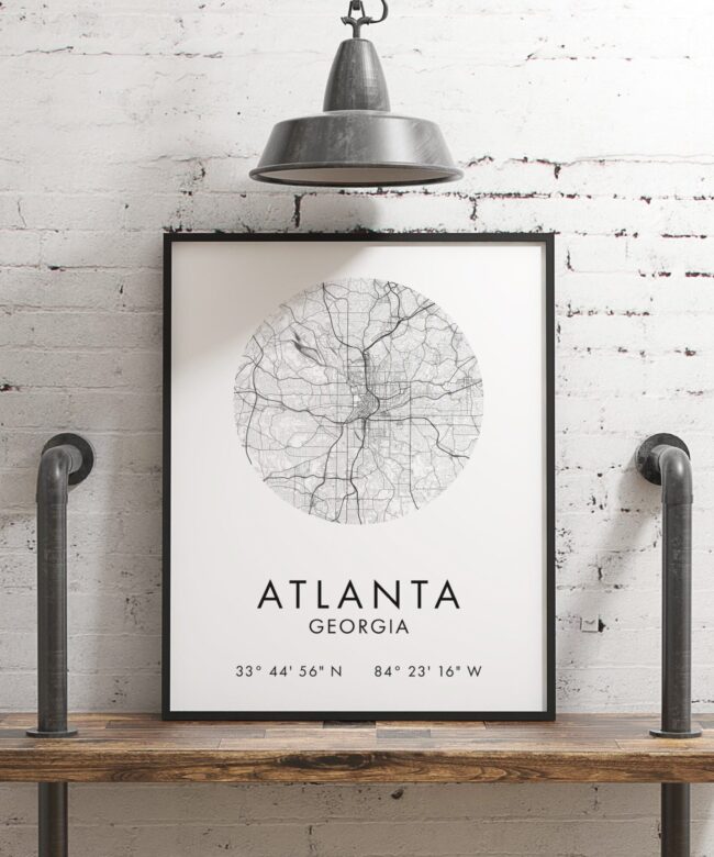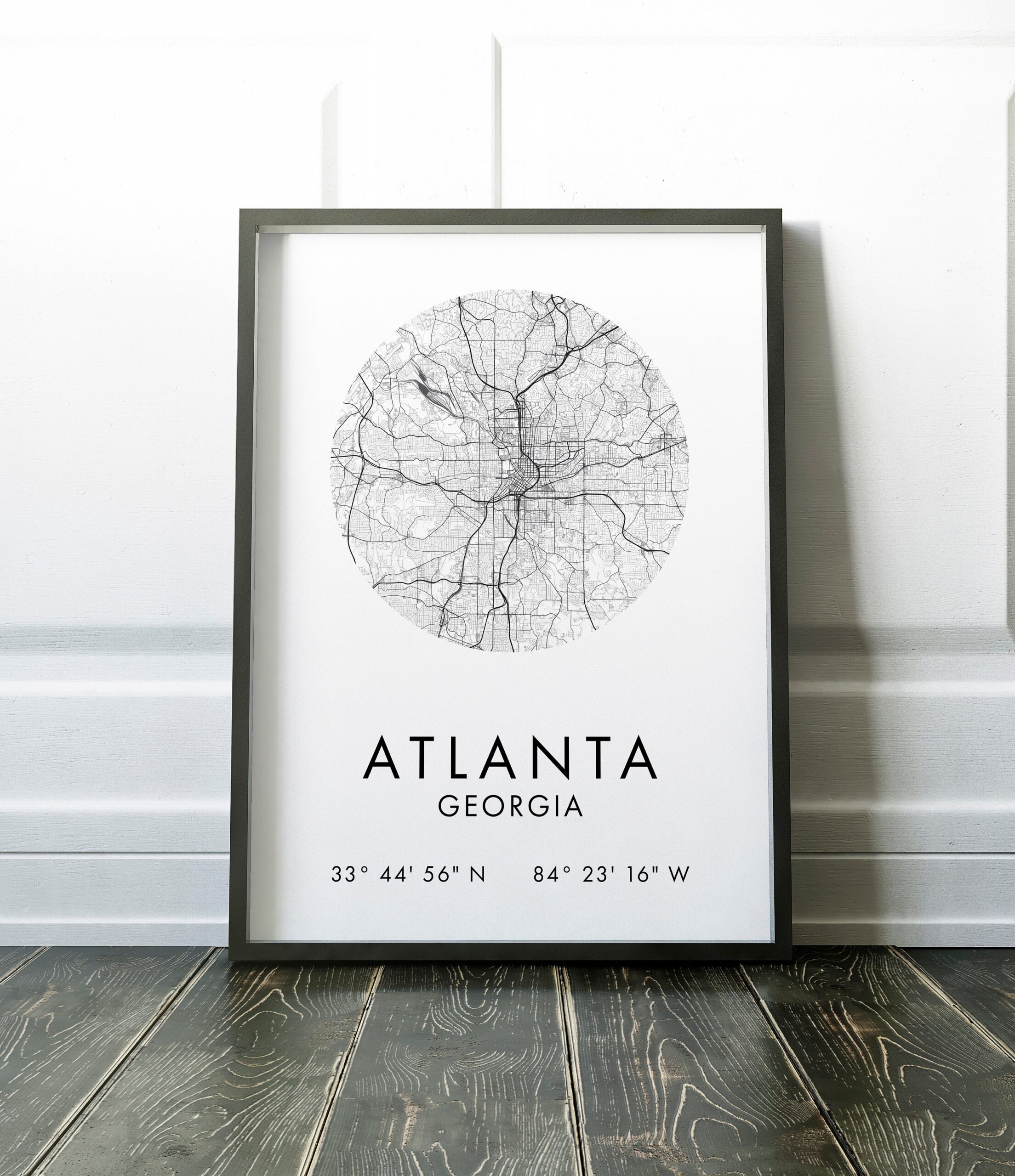 Atlanta, Georgia City Street Map, with GPS Art Print – Office – Home Decor – Restaurant – Apartment – Condo – Typography