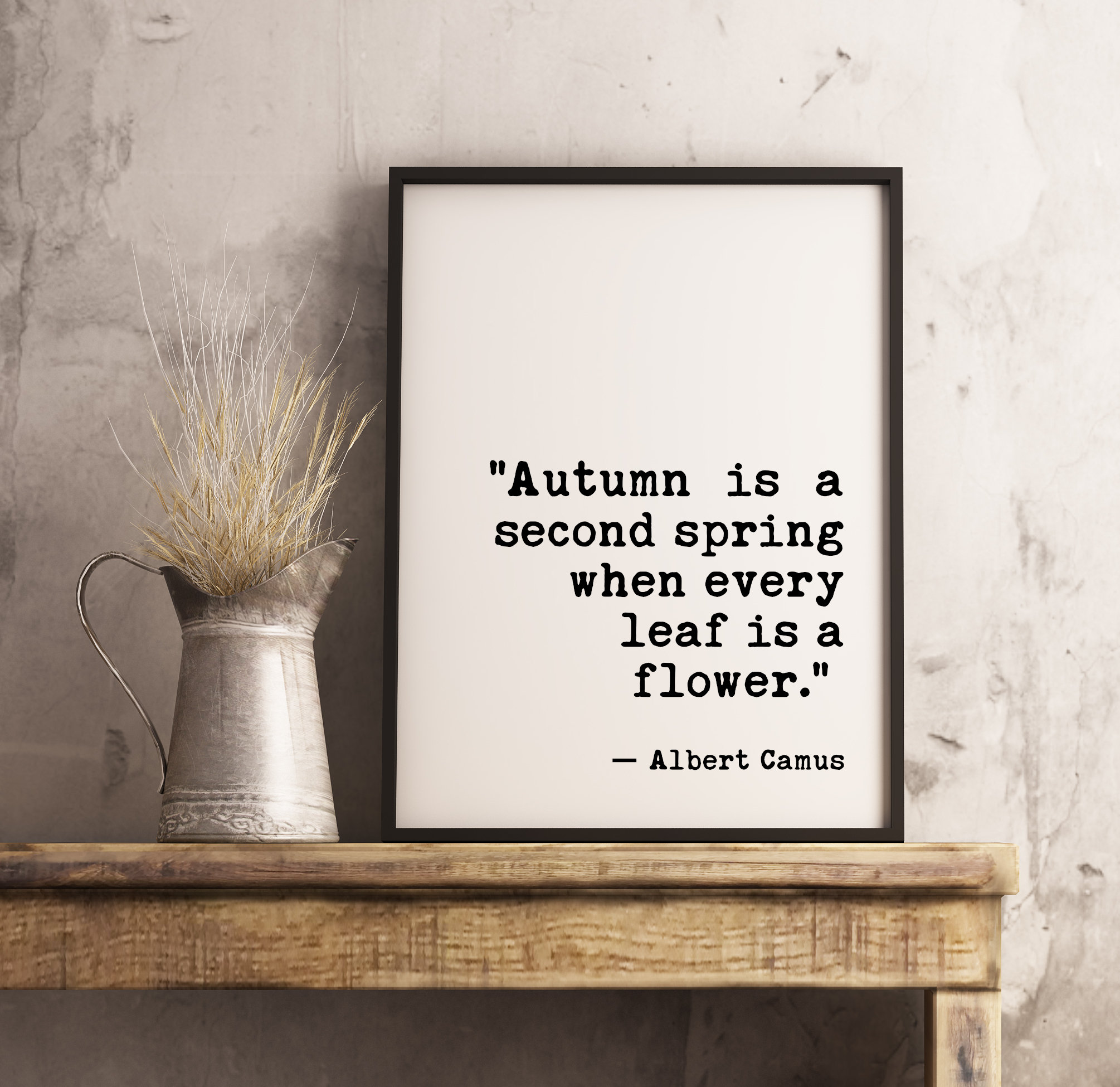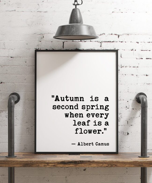 Autumn is a second spring when every leaf is a flower. A. Camus – Fall Wall Art, Typography Print, Home Wall Decor, Minimalist Decor
