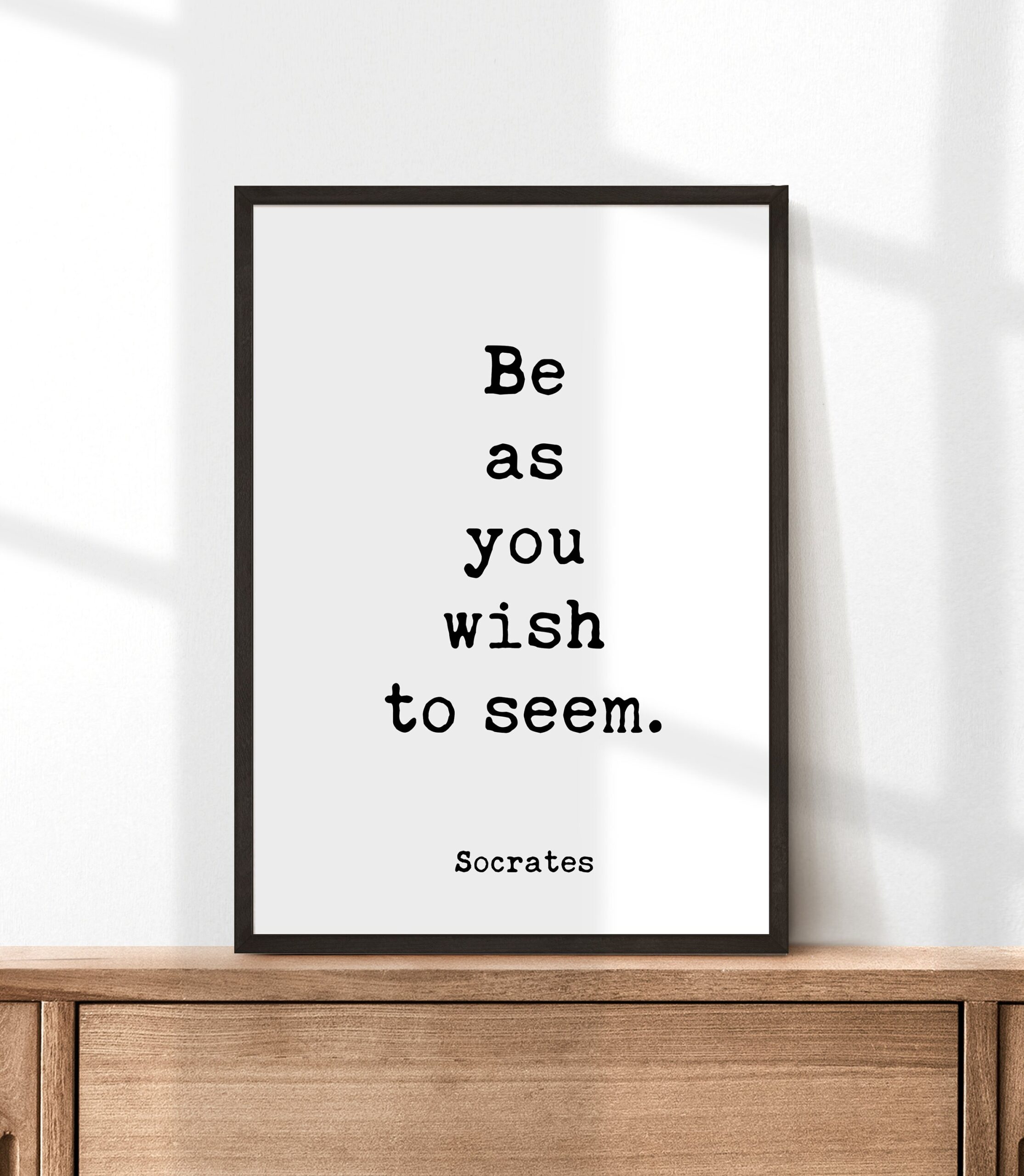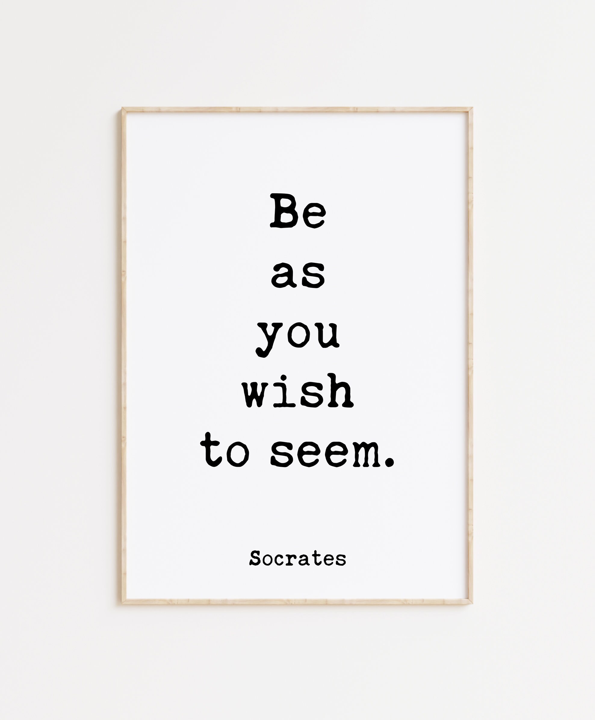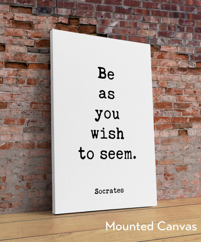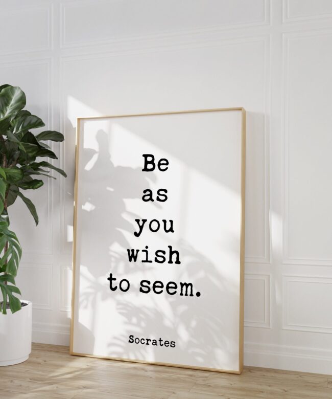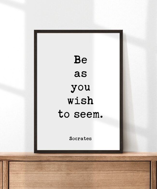 Embrace your truest self and radiate authenticity with this typography art print featuring the timeless words of Socrates: “Be as you wish to seem.”