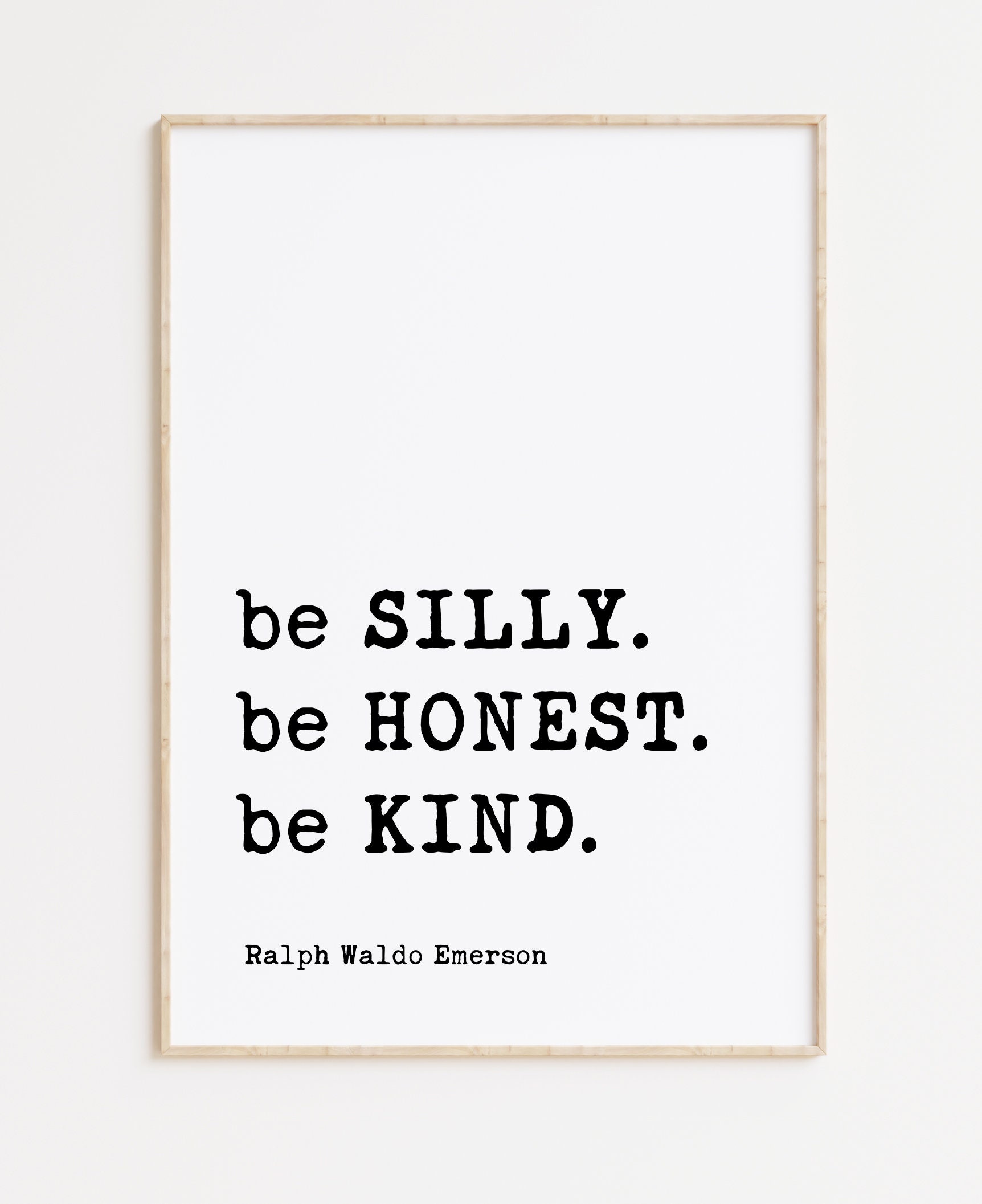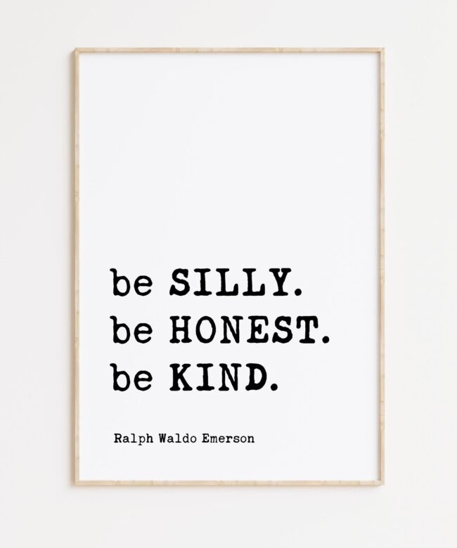 Introducing our “Be Silly, Be Honest, Be Kind” Ralph Waldo Emerson Typography Art Print – a delightful reminder to live life with authenticity and a sprinkle of silliness!
