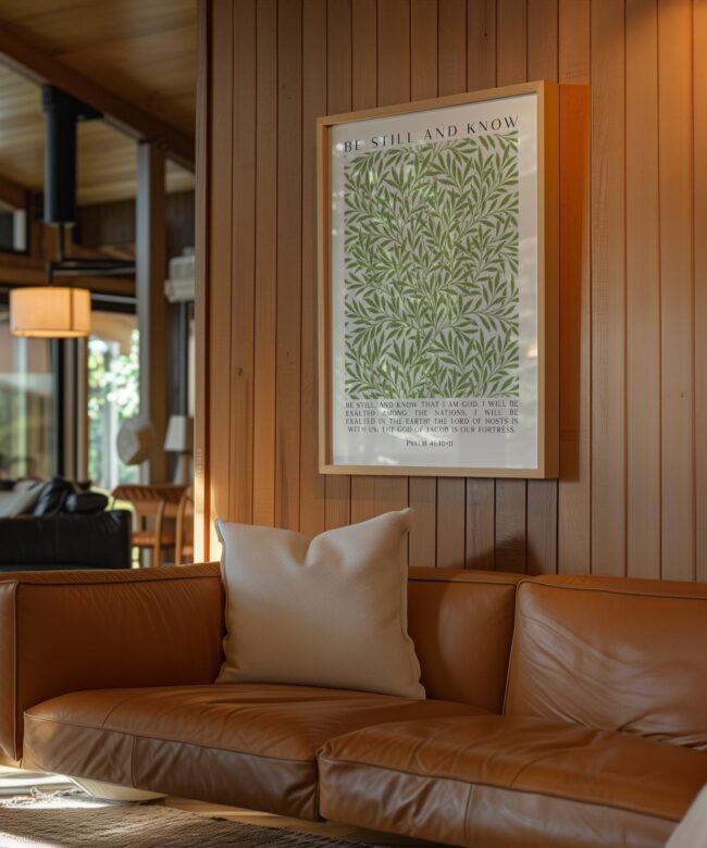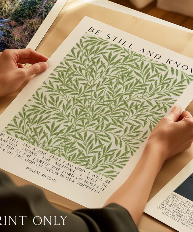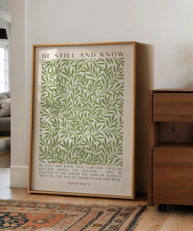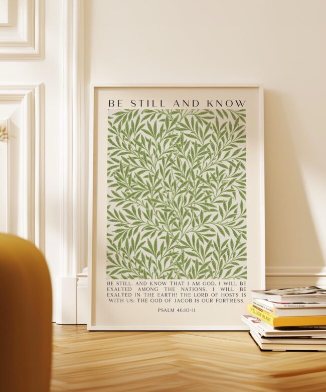 Be Still and Know Art Print • William Morris Willow Design • Psalm 46 Bible Verse