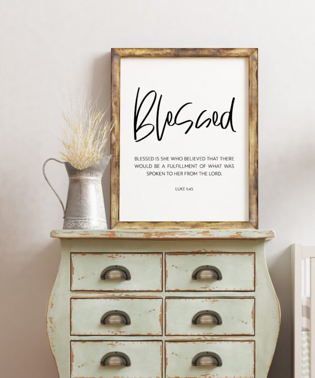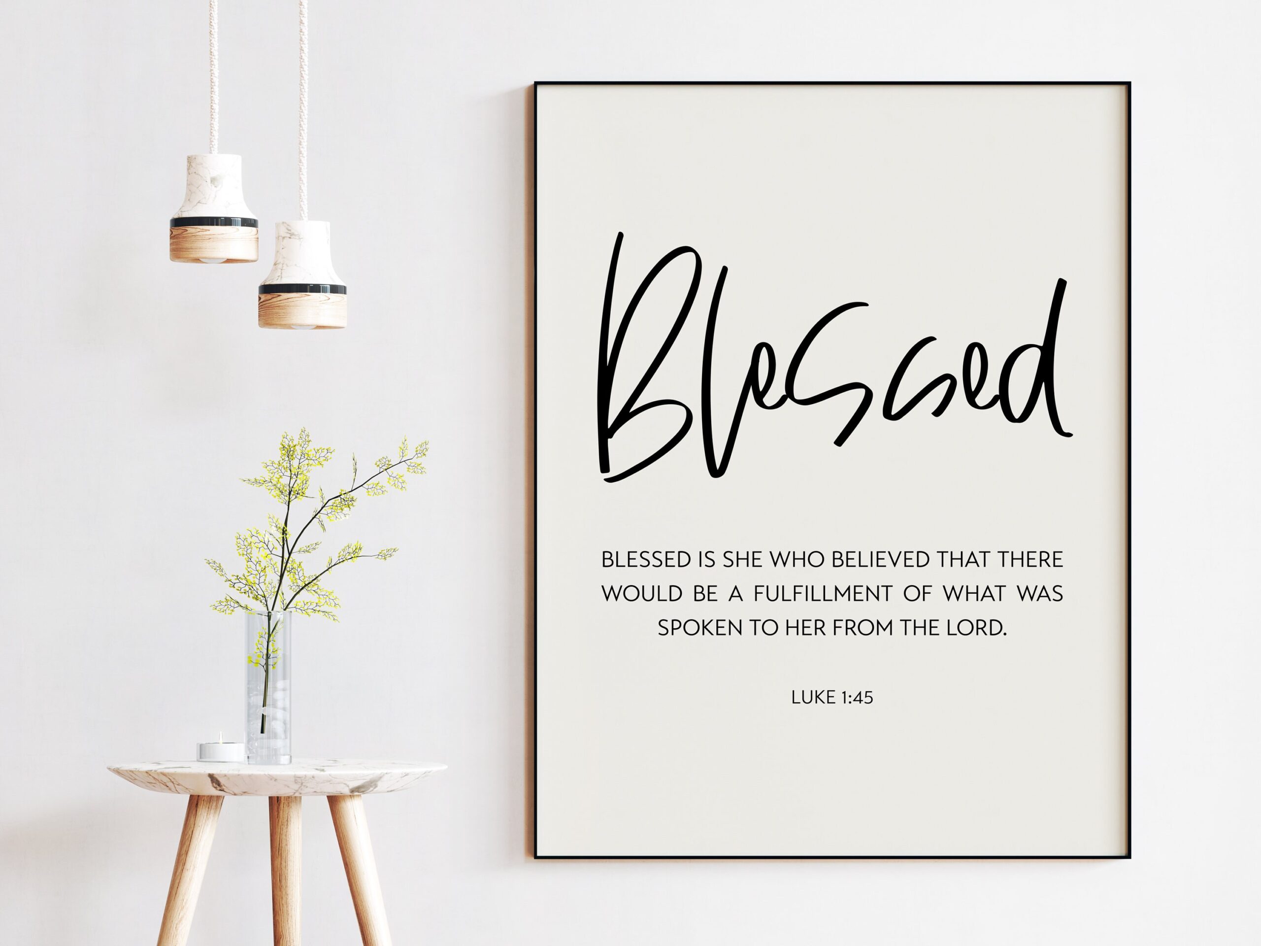 Blessed Is She Who Believed That There Would Be A Fulfillment Luke 1:45 Art Print – Religious Scripture – Bible Verse Art – Gift for Her