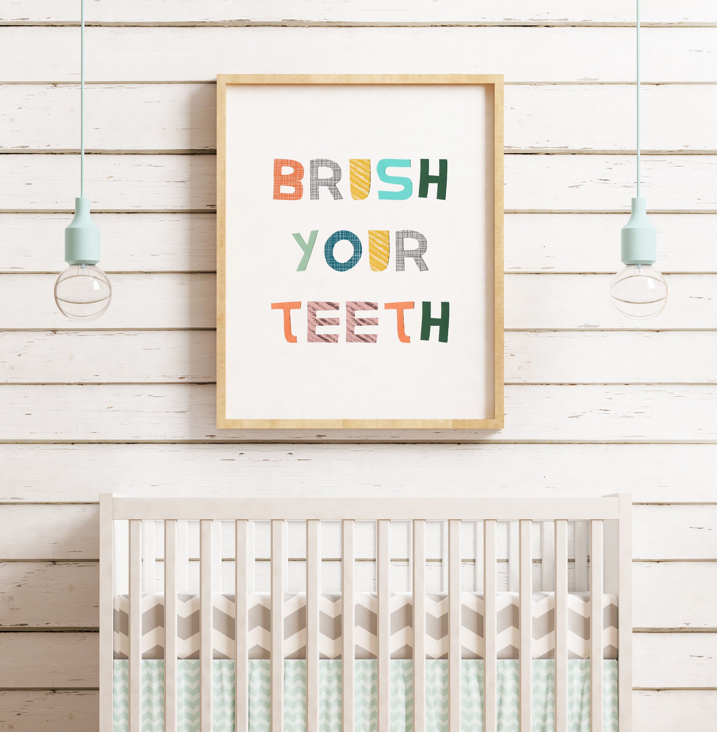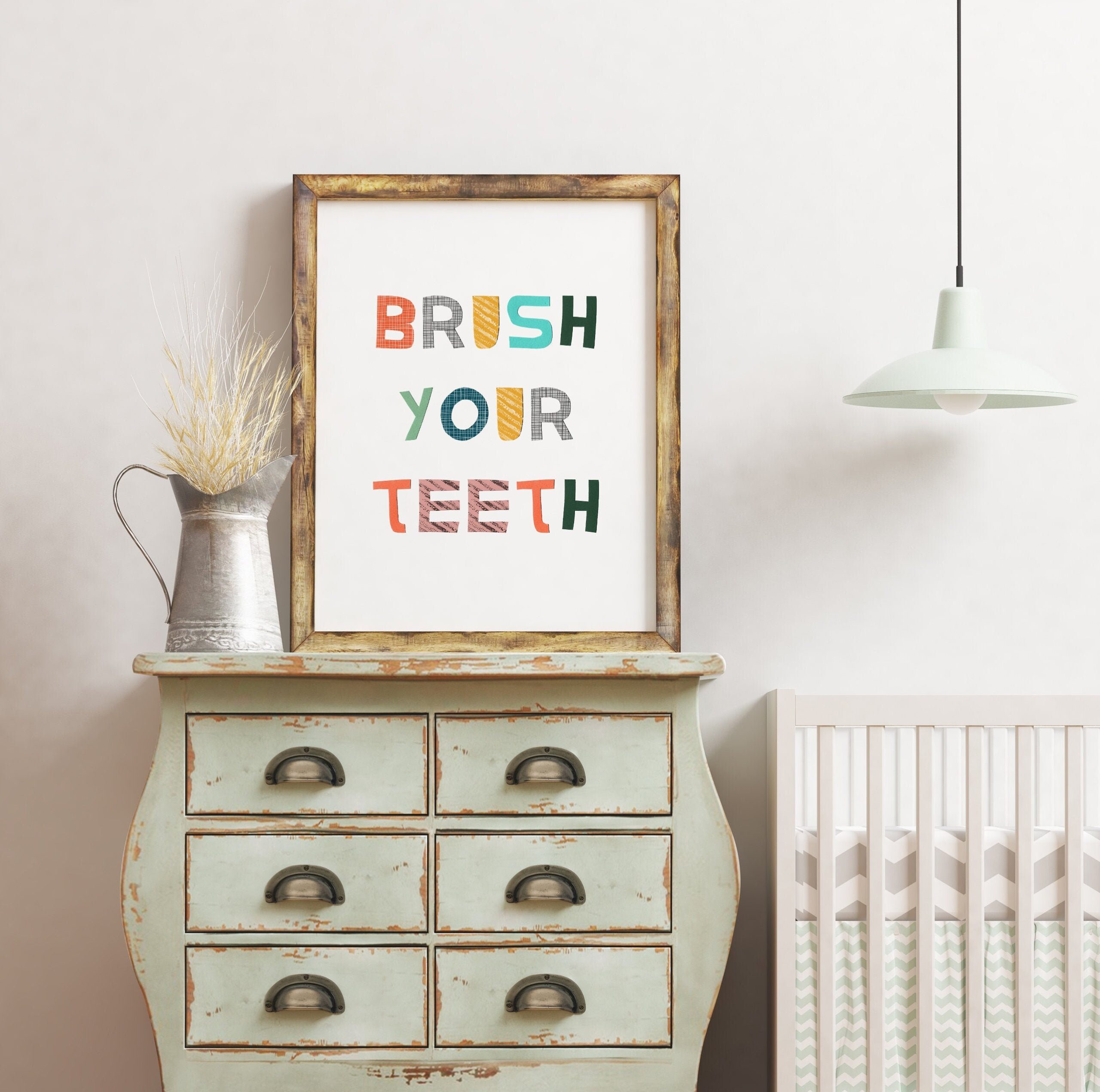 Brush Your Teeth Bathroom Wall Art, Childs Bathroom Art, Kids Bathroom Art, Children’s Bathroom Wall Art, Bathroom Reminder