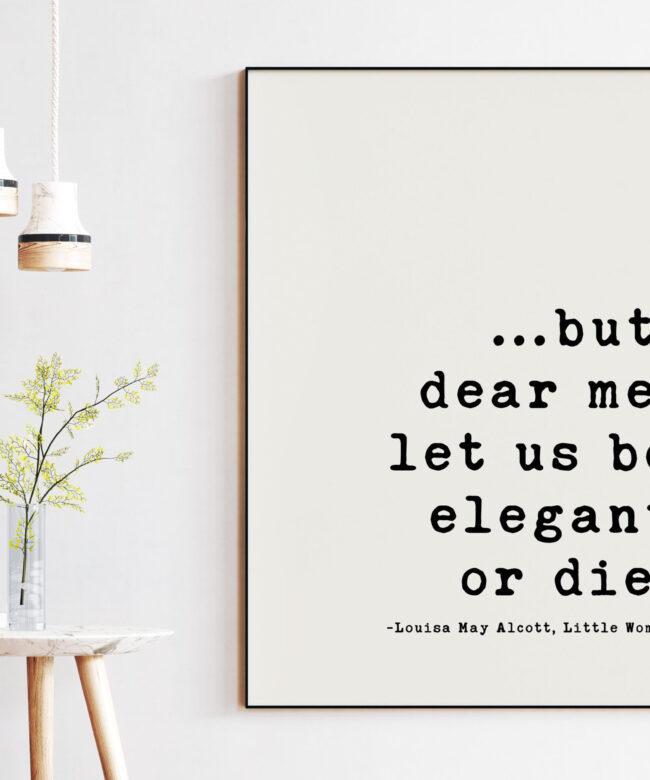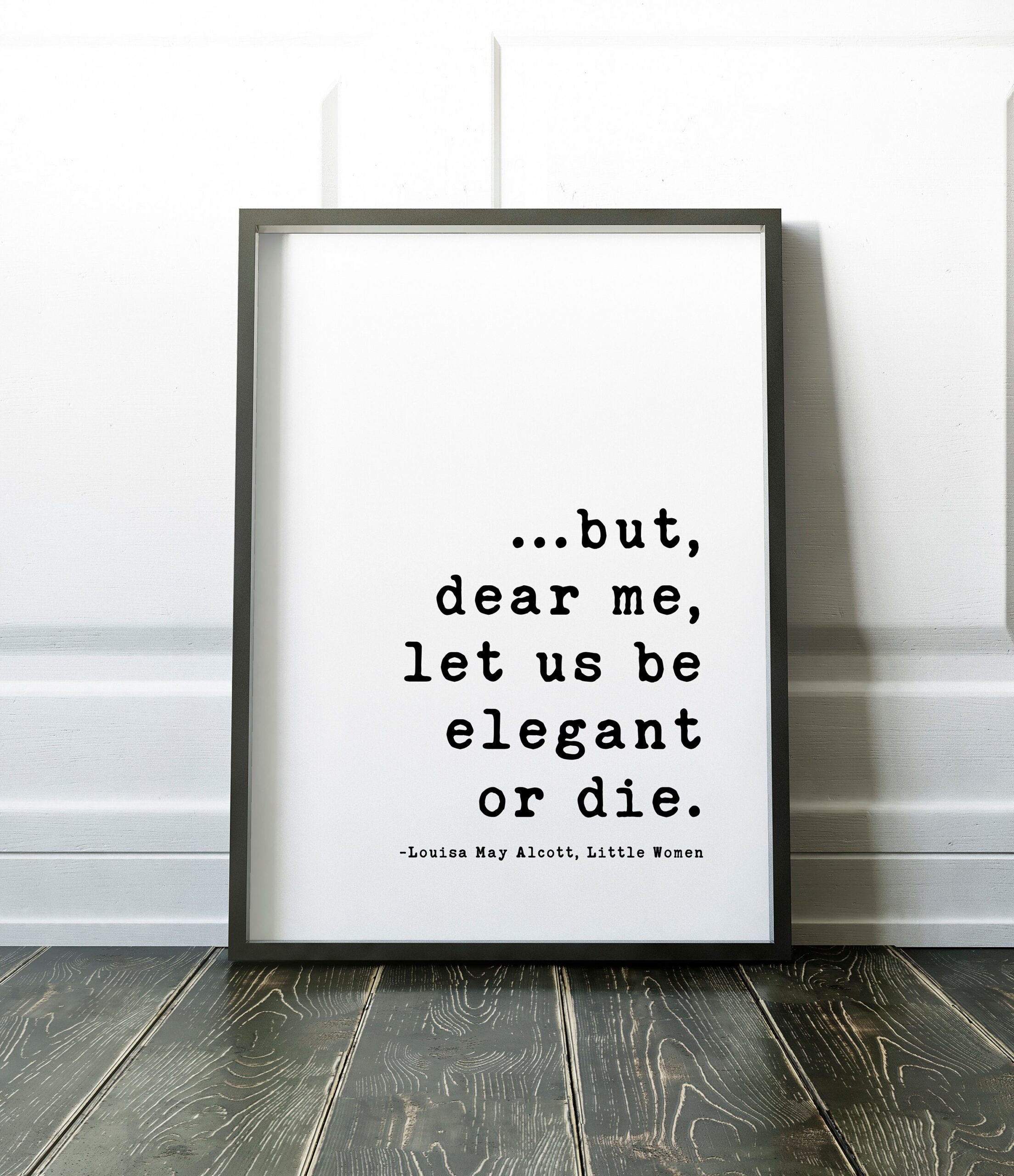 but, dear me, let us be elegant or die. – Louisa May Alcott, Little Women Quotes, Little Women Art Prints, Louisa May Alcott Quotes