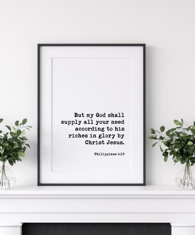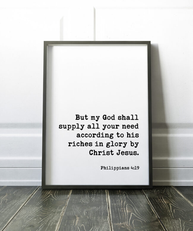 But my God shall supply all your need according to his riches in glory by Christ Jesus – Philippians 4:19 Typography Print – Scripture
