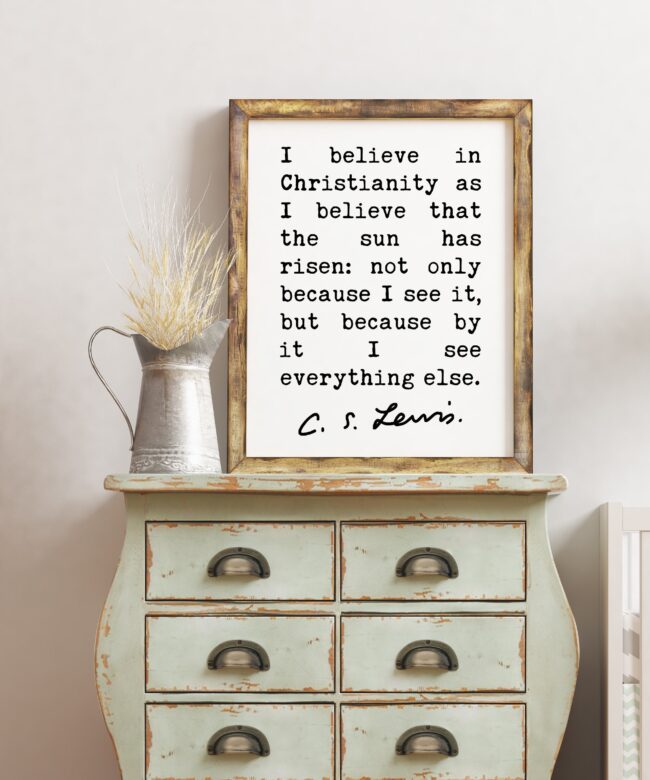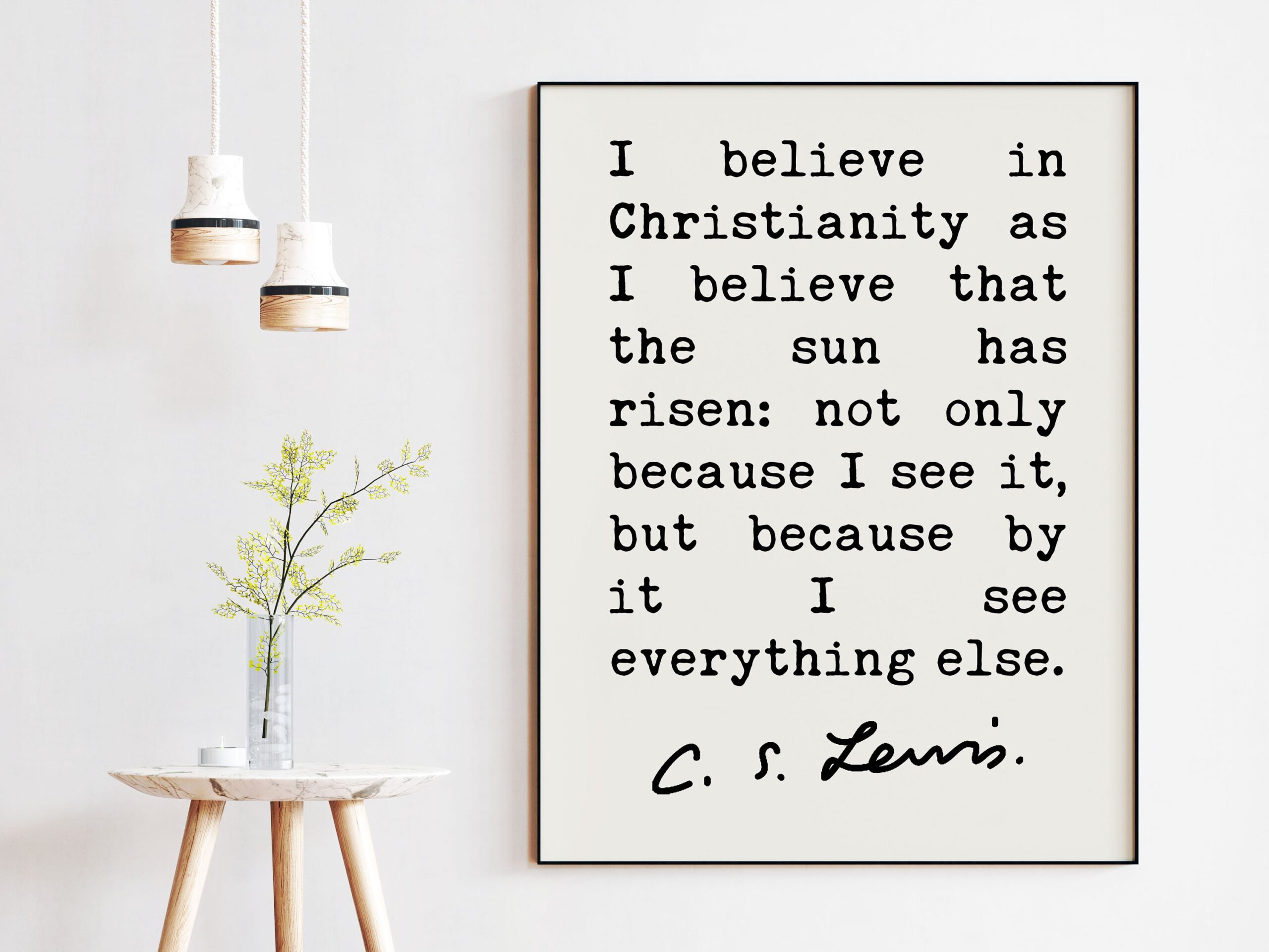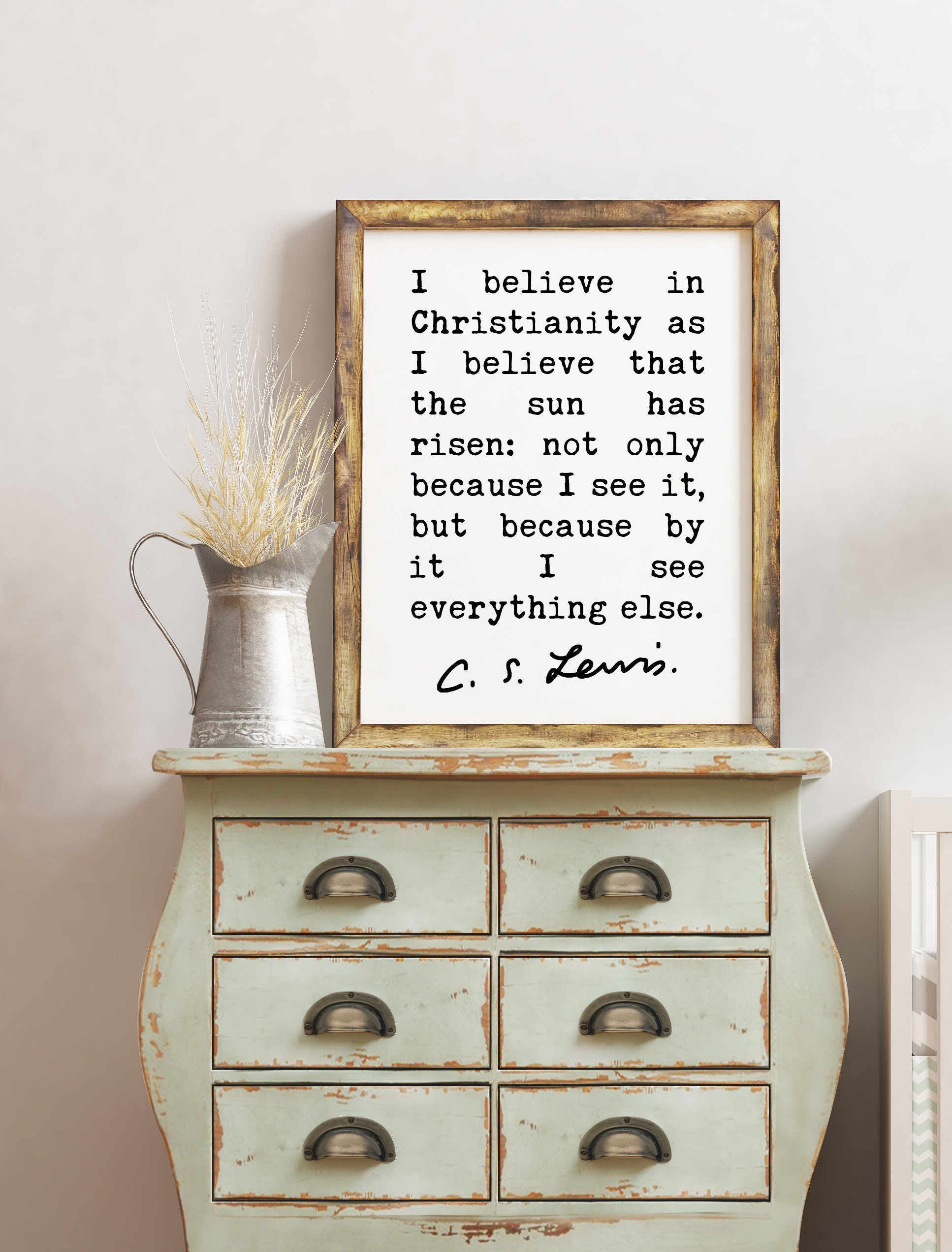 C.S. Lewis Quote I believe in Christianity as I believe that the sun has risen. Art Print – Christian Quotes – Inspirational – Encouragement