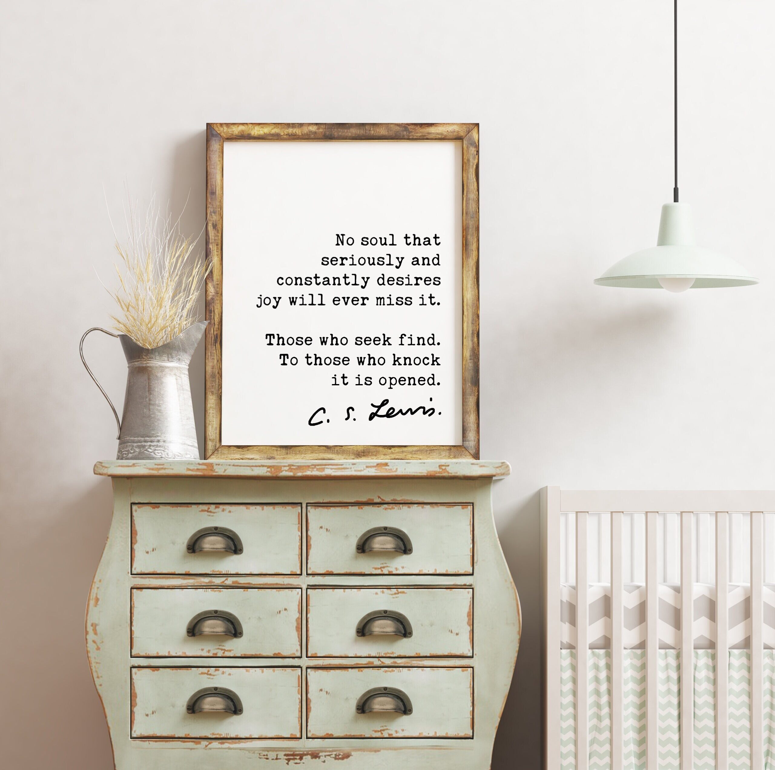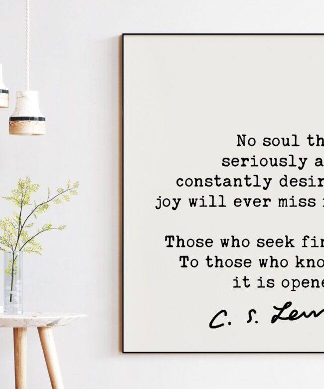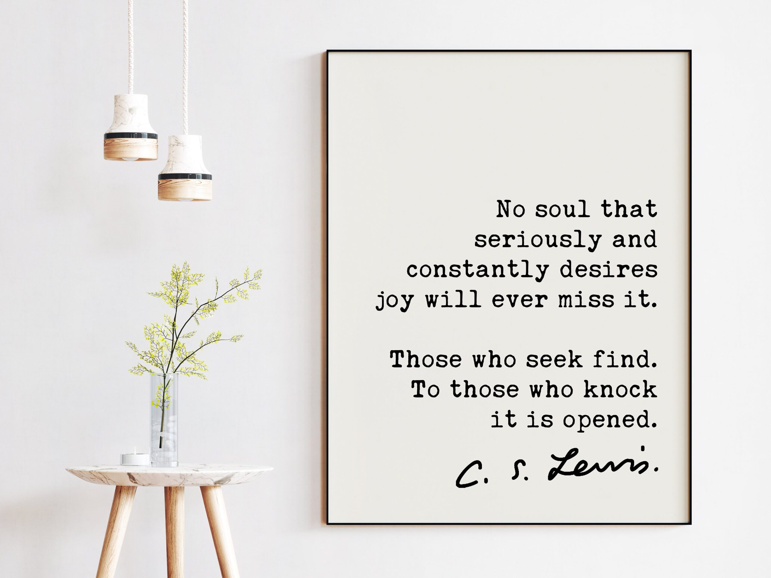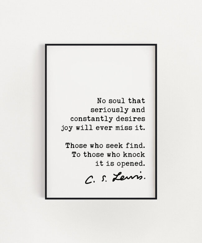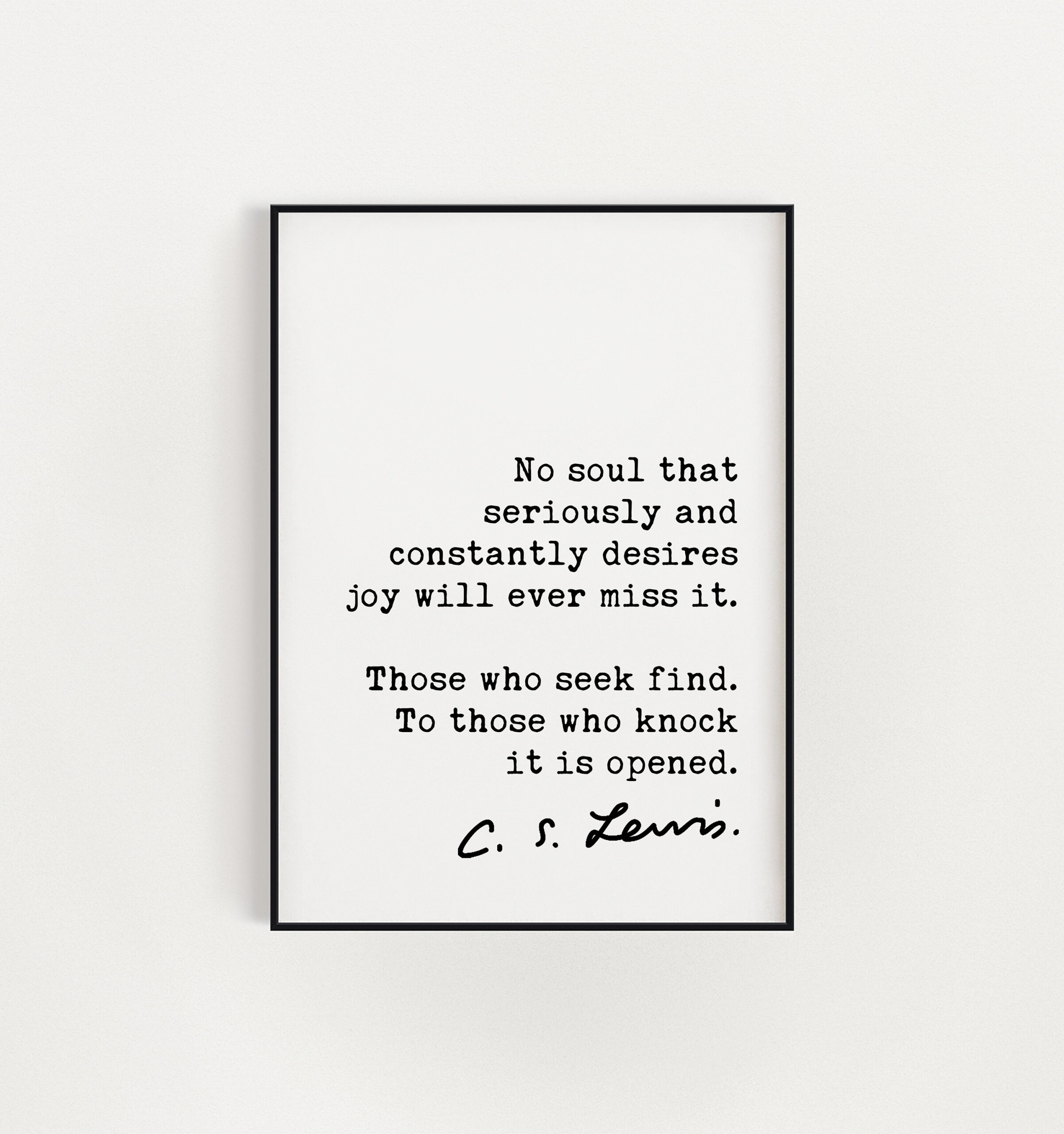 C.S. Lewis Quote No soul that seriously and constantly desires joy will ever miss it. … To those who knock it is opened. Art Print