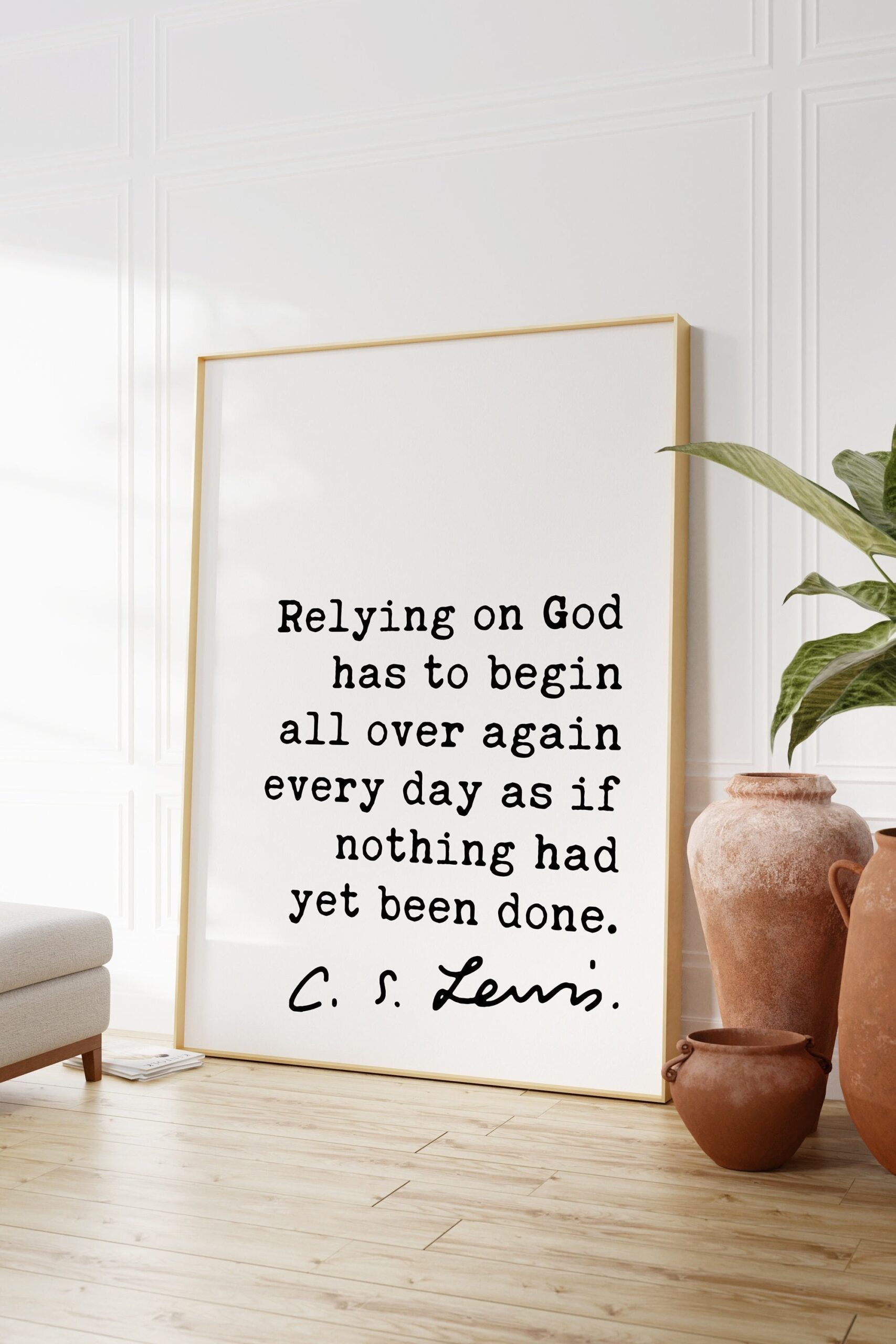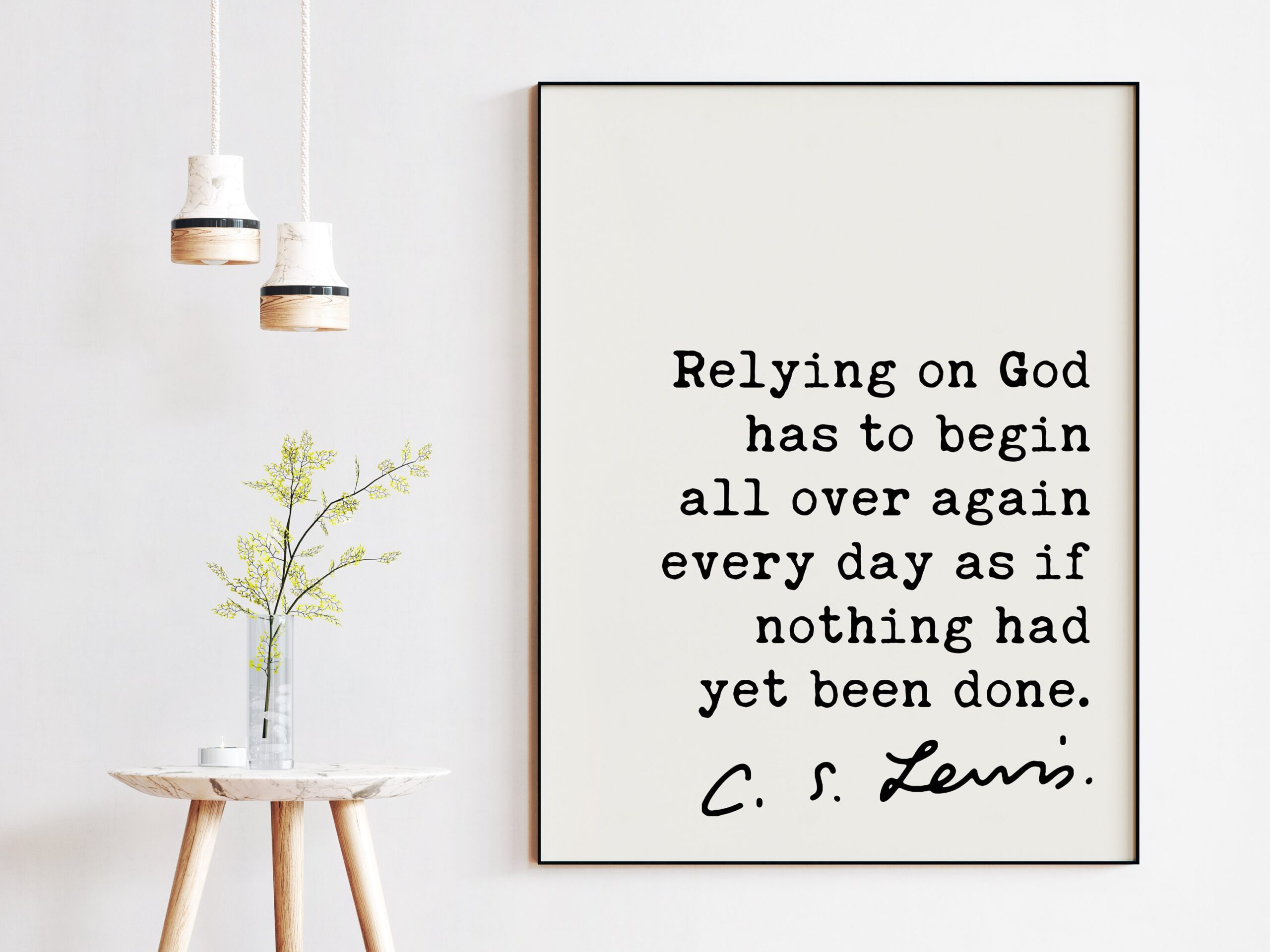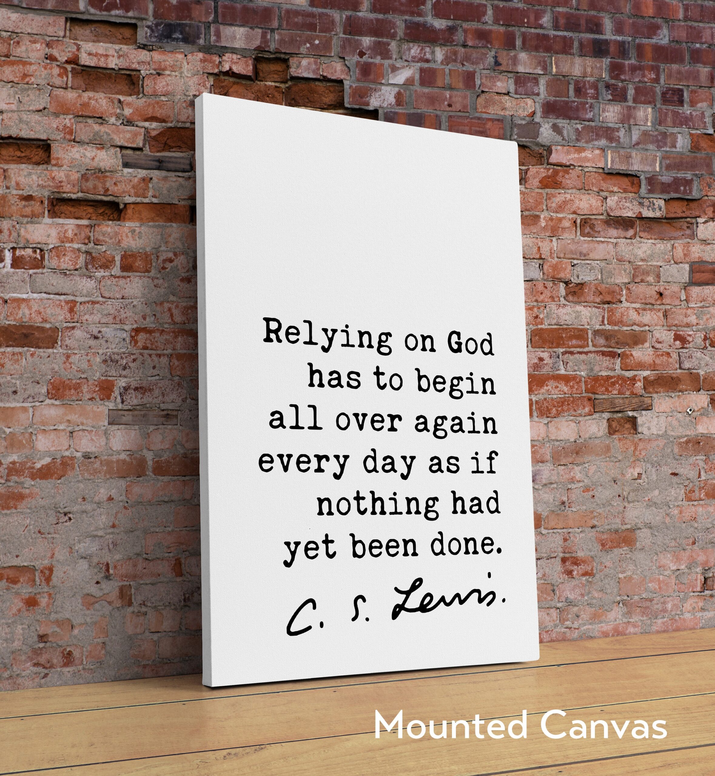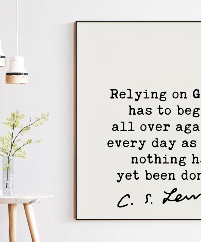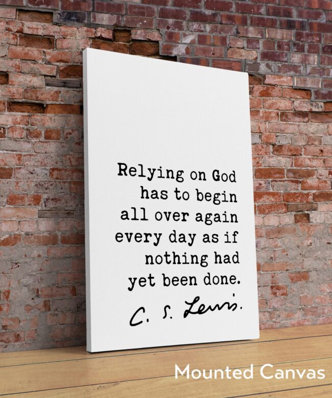 C.S. Lewis quote – Relying on God has to begin all over again every day as if nothing had yet been done. Art Print – Christian – Spiritual