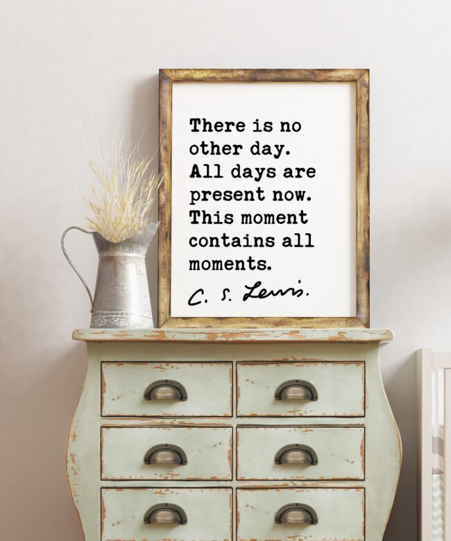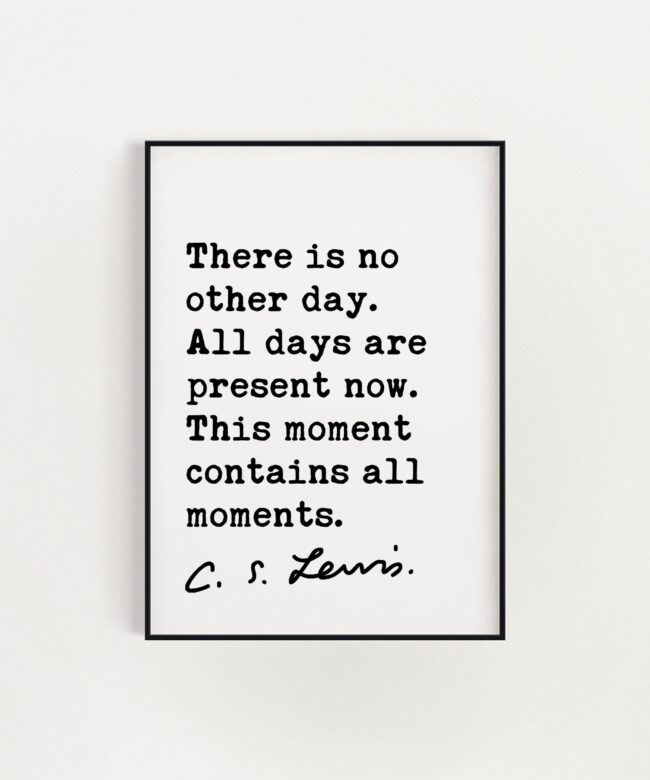 C.S. Lewis quote – There is no other day. All days are present now. This moment contains all moments. Art Print – Inspirational Print