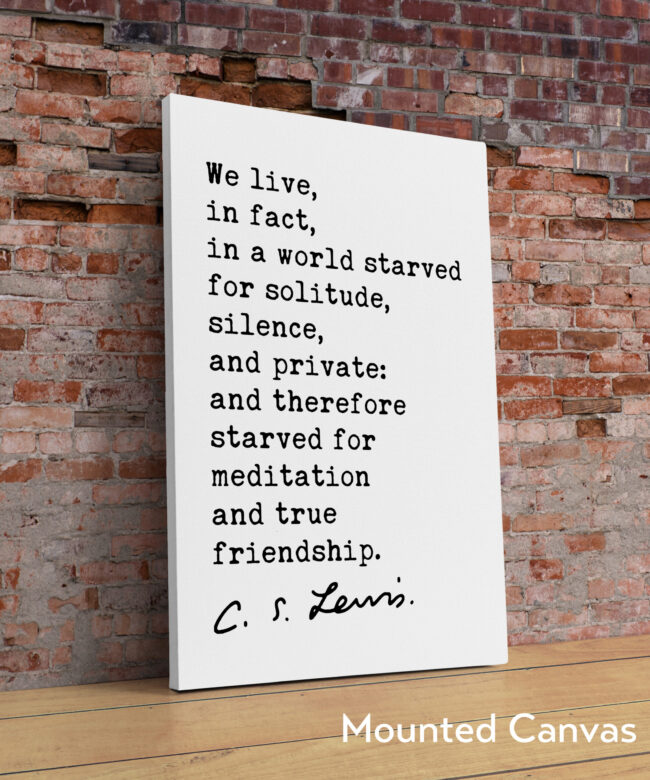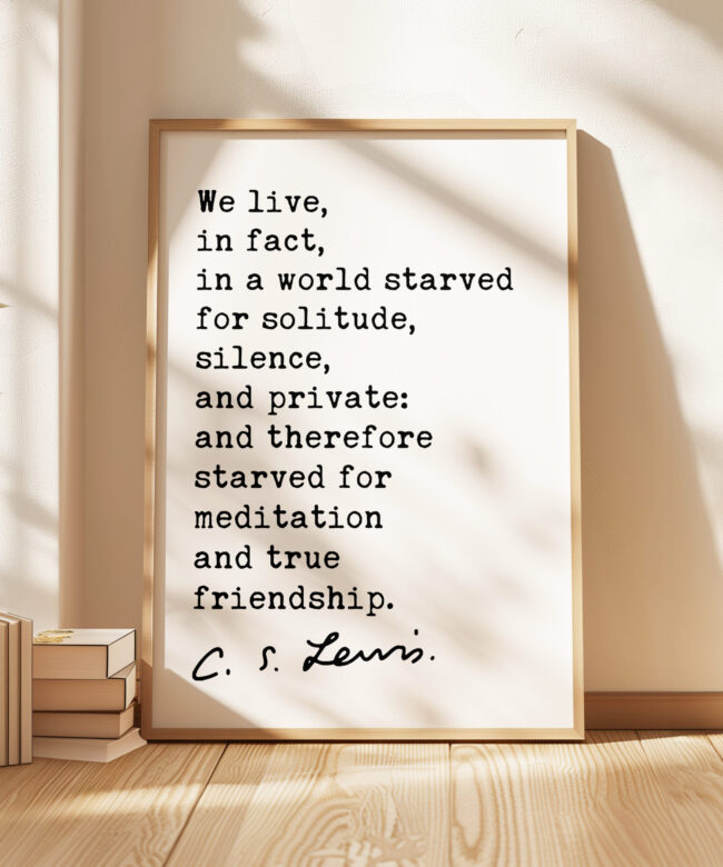 We live, in fact, in a world starved for solitude, silence, and private: and therefore starved for meditation and true friendship.
