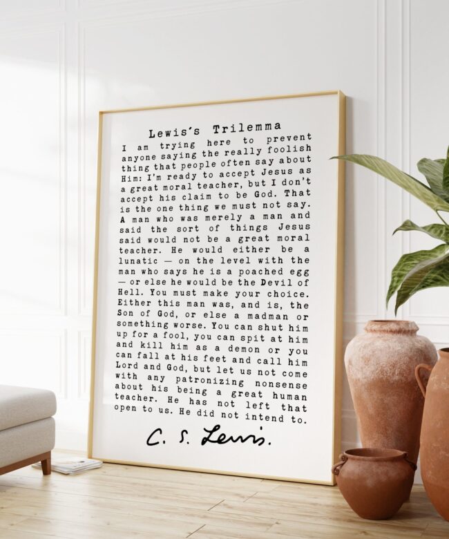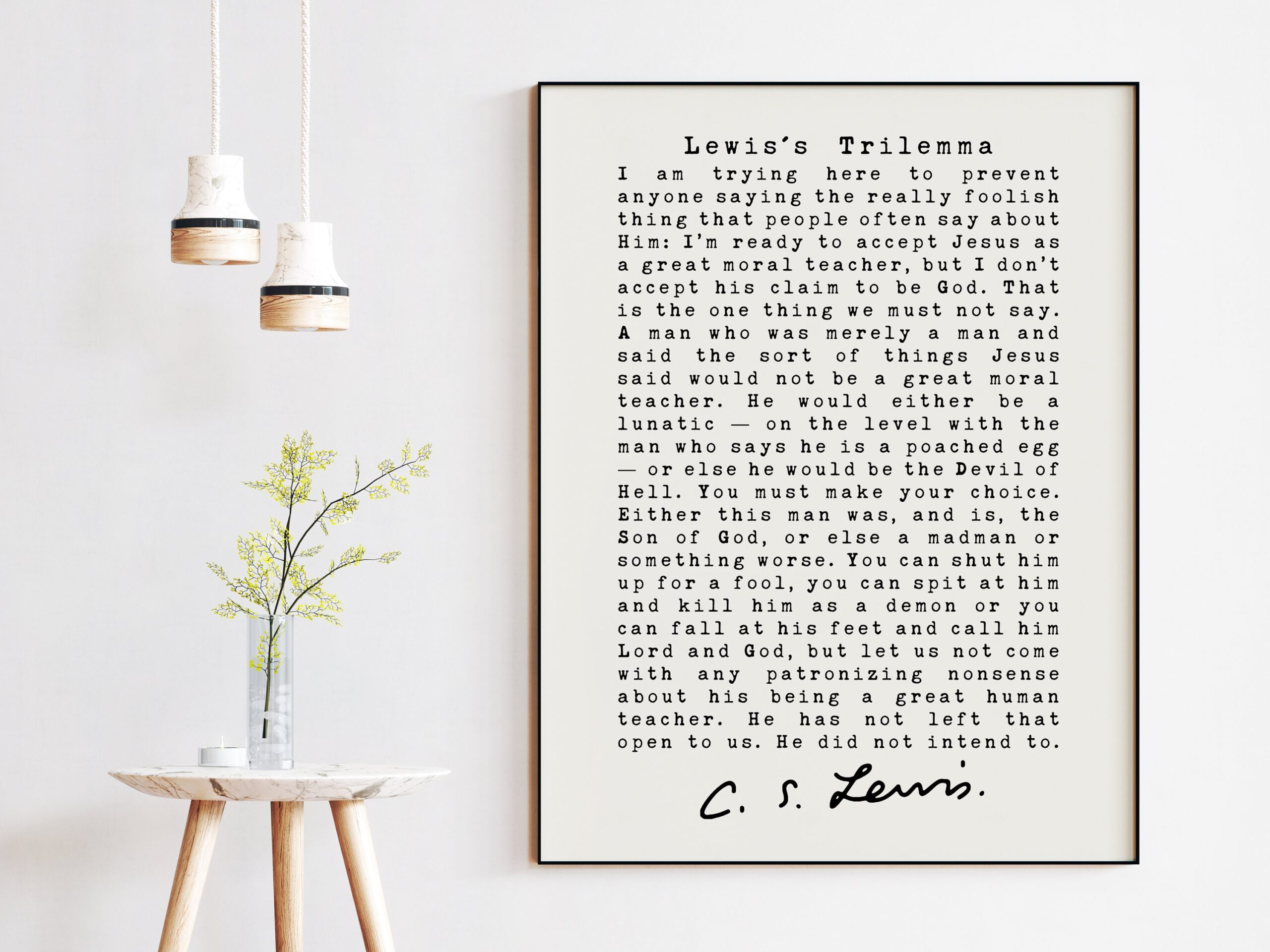 C.S. Lewis’s Trilemma – Christian Quotes Art Print Liar Lunatic or Lord – Inspirational – Christianity – Apologetics