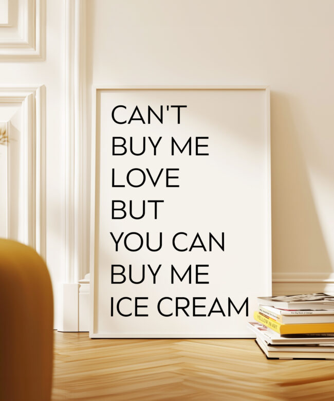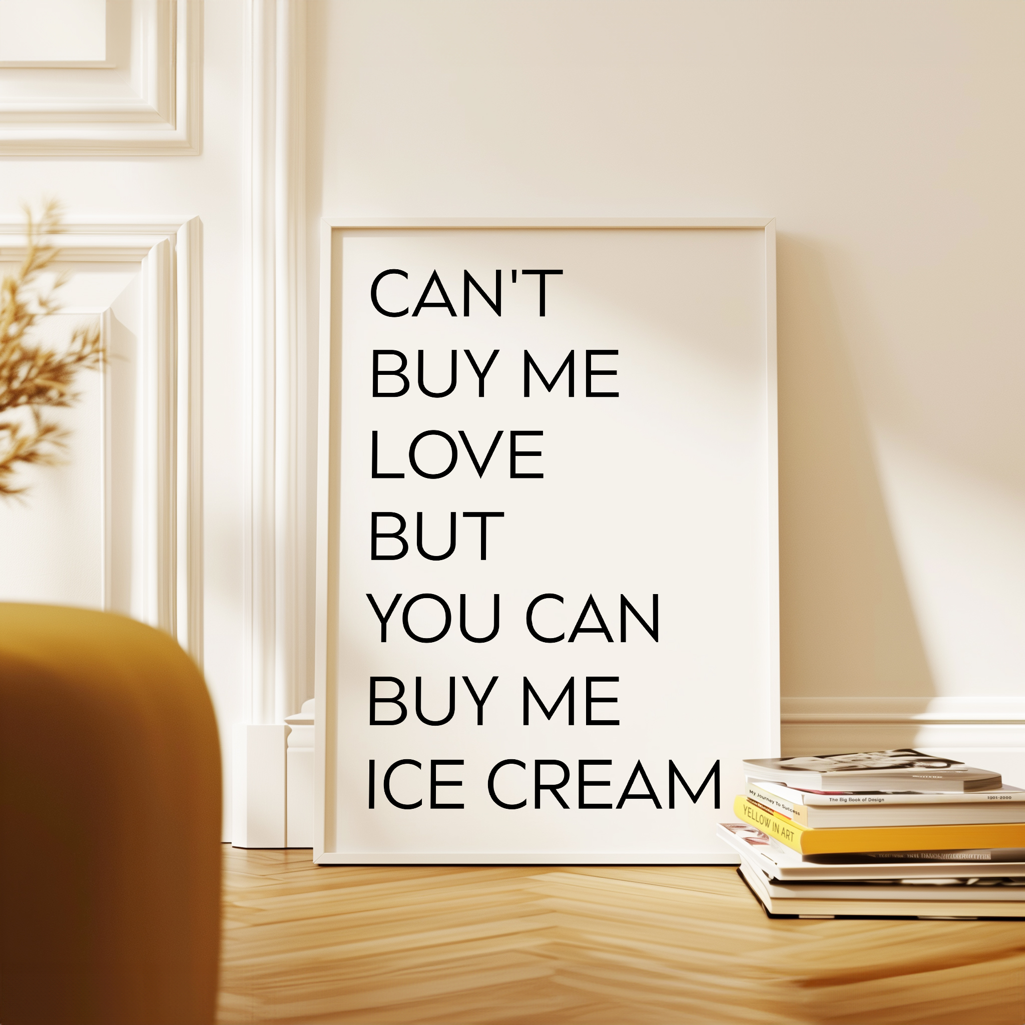 Can’t buy me love, but you can buy me ice cream. Typography Art Print