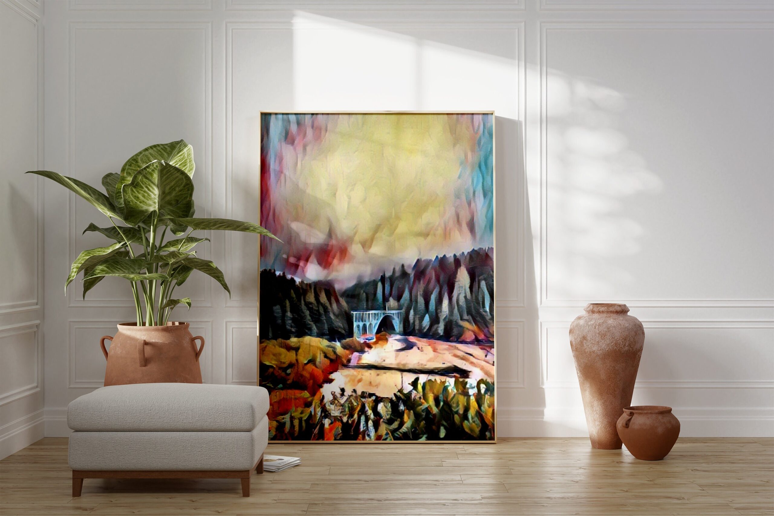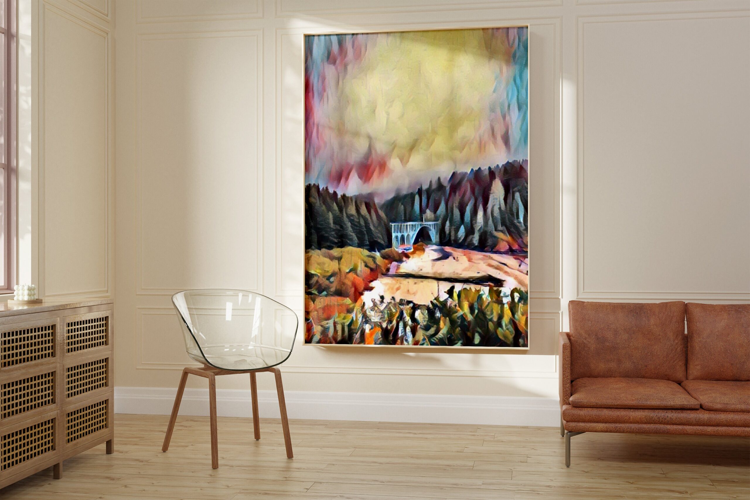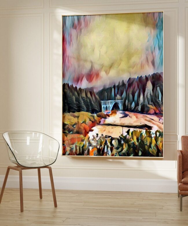 Cape Creek Bridge at Heceta Head, Oregon Digital Watercolor Art Print – PNW – Colorful – Cheerful – Oregon Coast