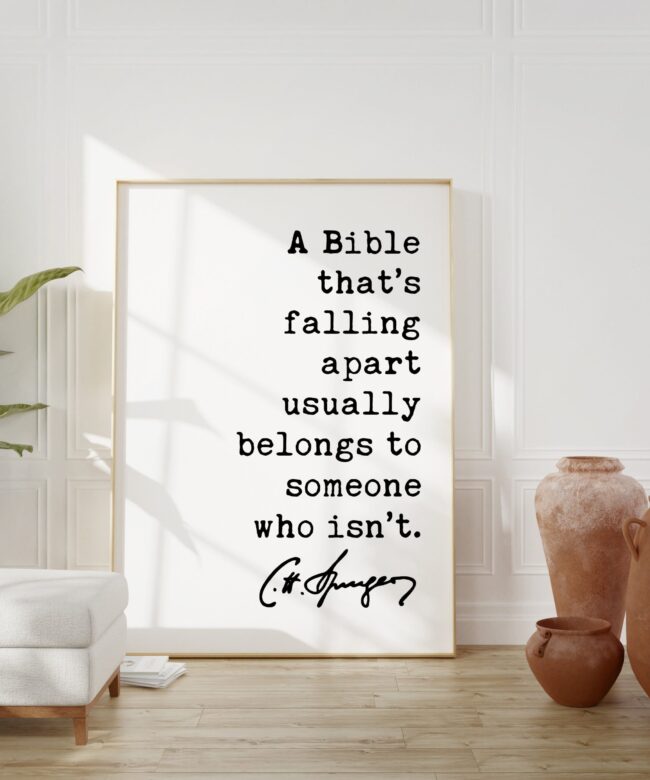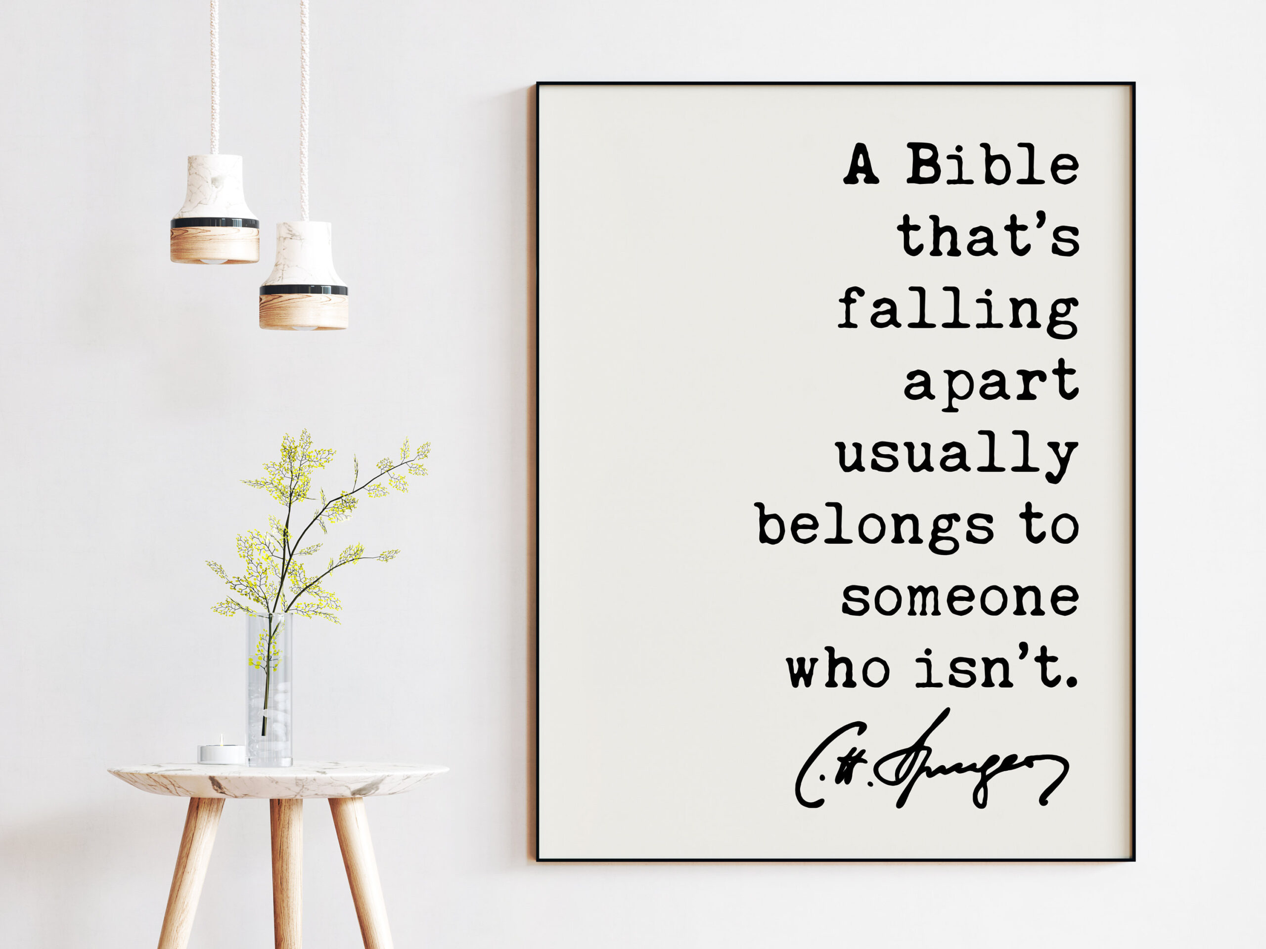 Charles Spurgeon Quote – A Bible that’s falling apart usually belongs to someone who isn’t. Art Print – Christian – Family – Traditional
