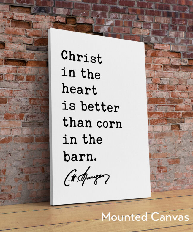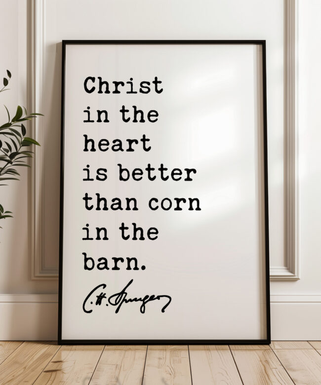 Find solace and inspiration with this meaningful typography art print featuring the profound words of Charles Spurgeon, “Christ in the heart is better than corn in the barn.”