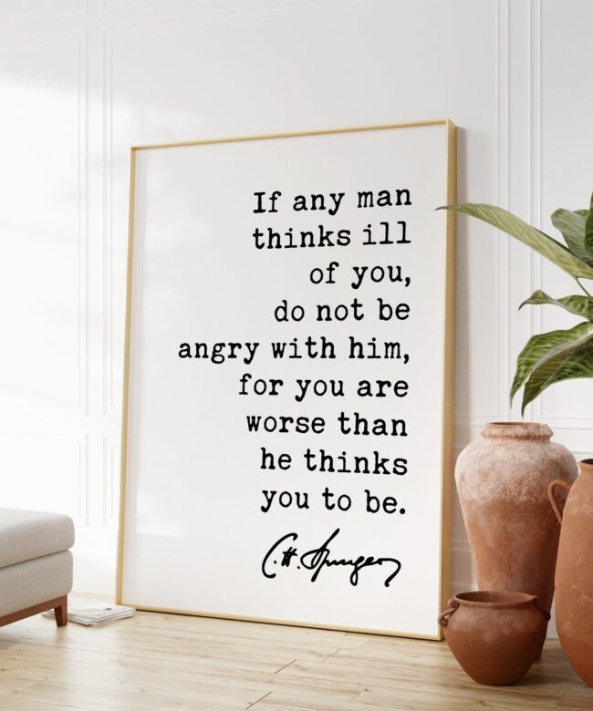 Charles Spurgeon Quote If any man thinks ill of you, do not be angry with him, for you are worse than he thinks you to be. Art Print