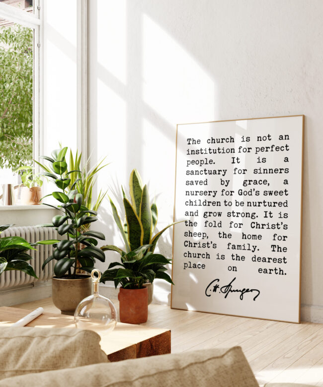 Charles Spurgeon Quote The Church is not an institution for perfect people Art Print