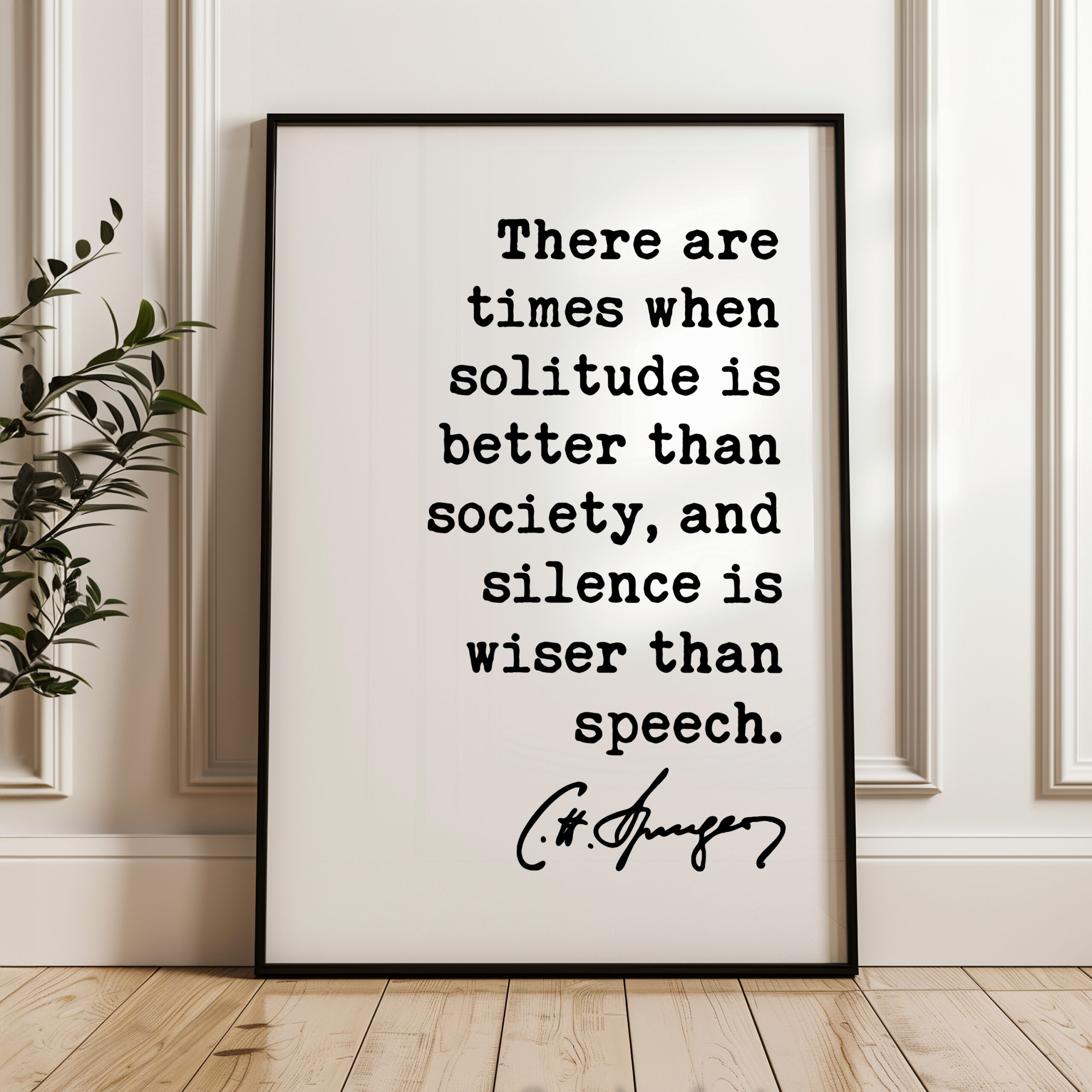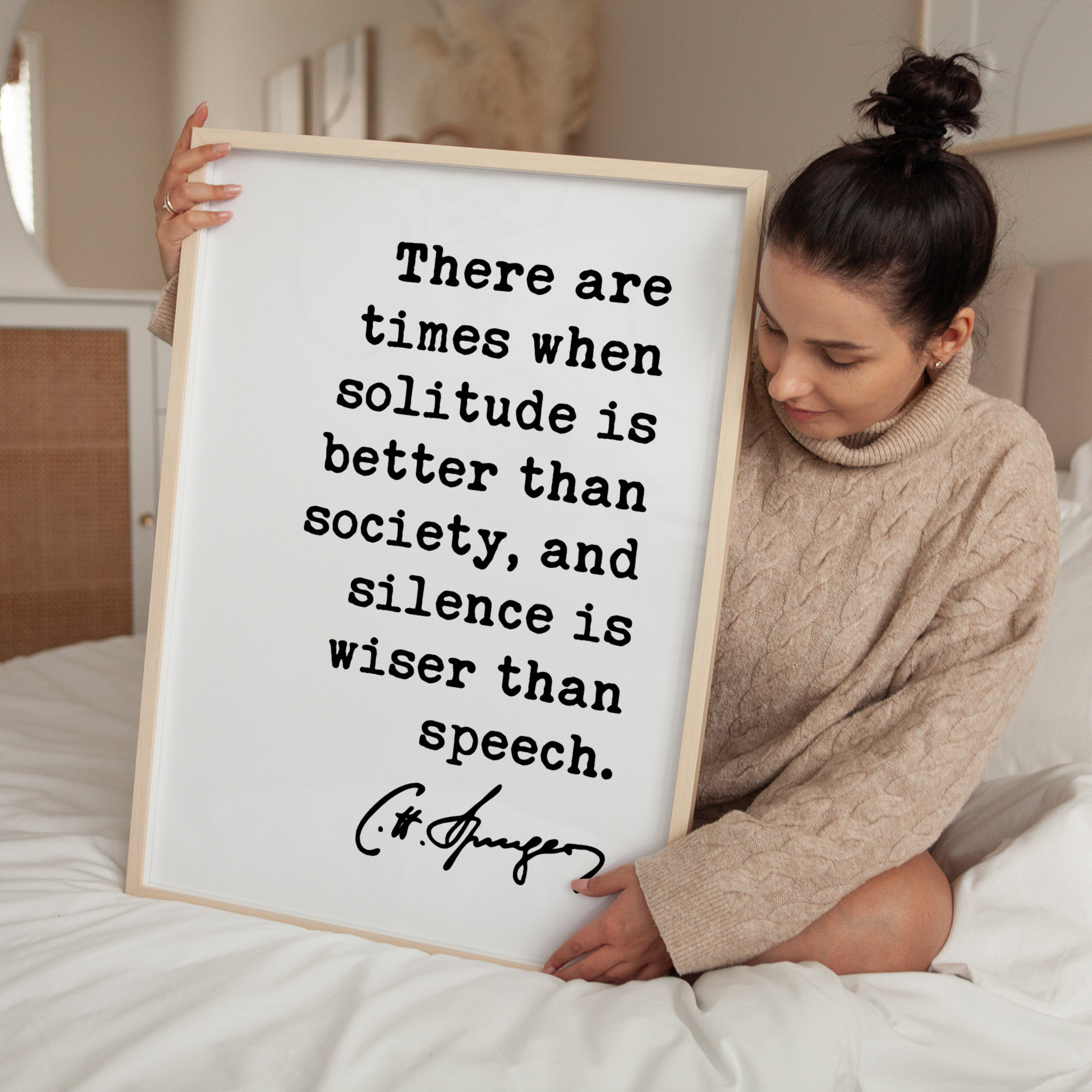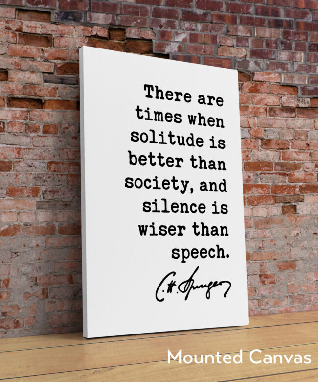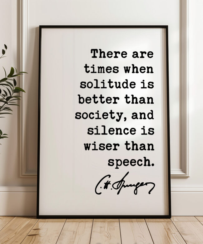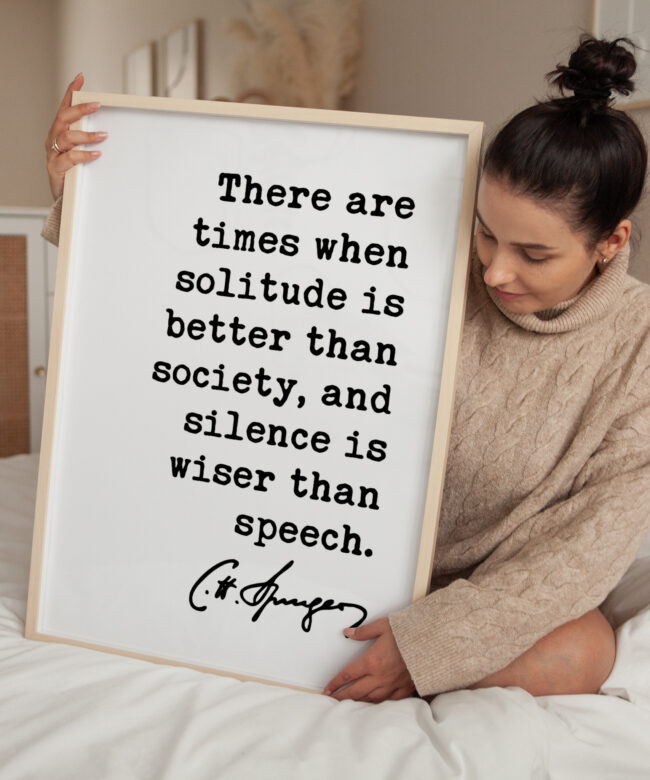 Embrace the power of introspection and the beauty of stillness with this captivating typography art print. Featuring the insightful words of Charles Spurgeon, “There are times when solitude is better than society, and silence is wiser than speech,” this artwork celebrates the value of quiet reflection and the wisdom found in solitude.