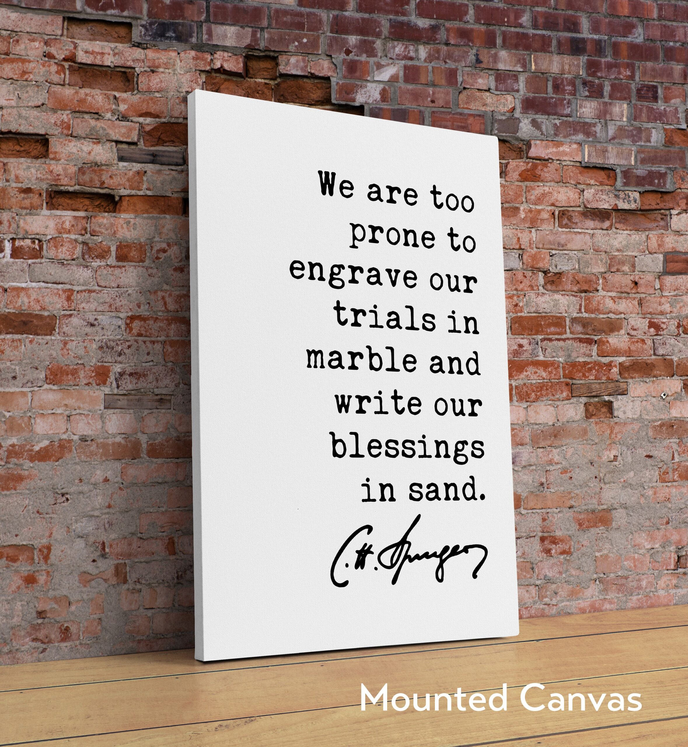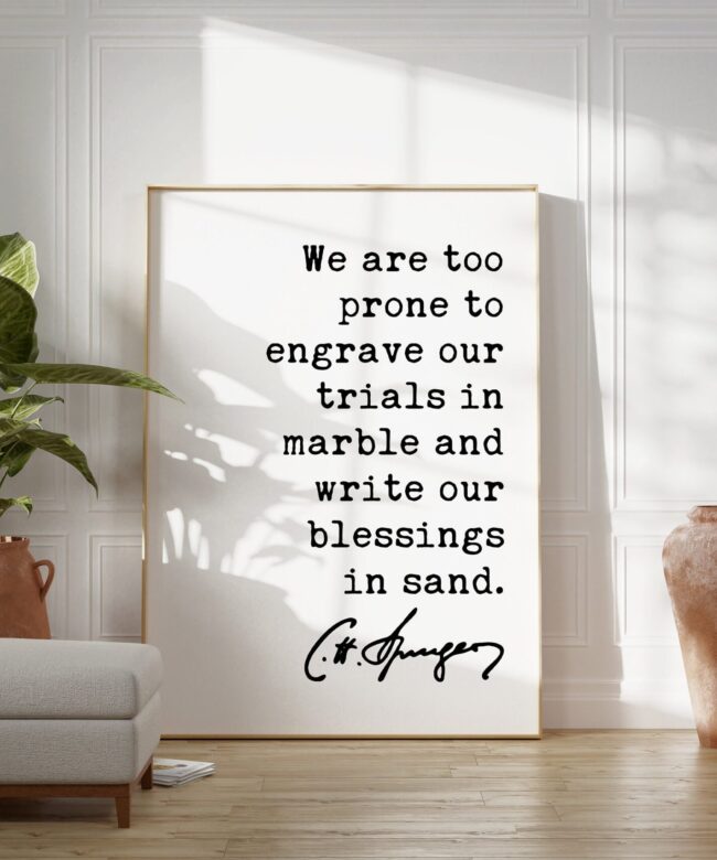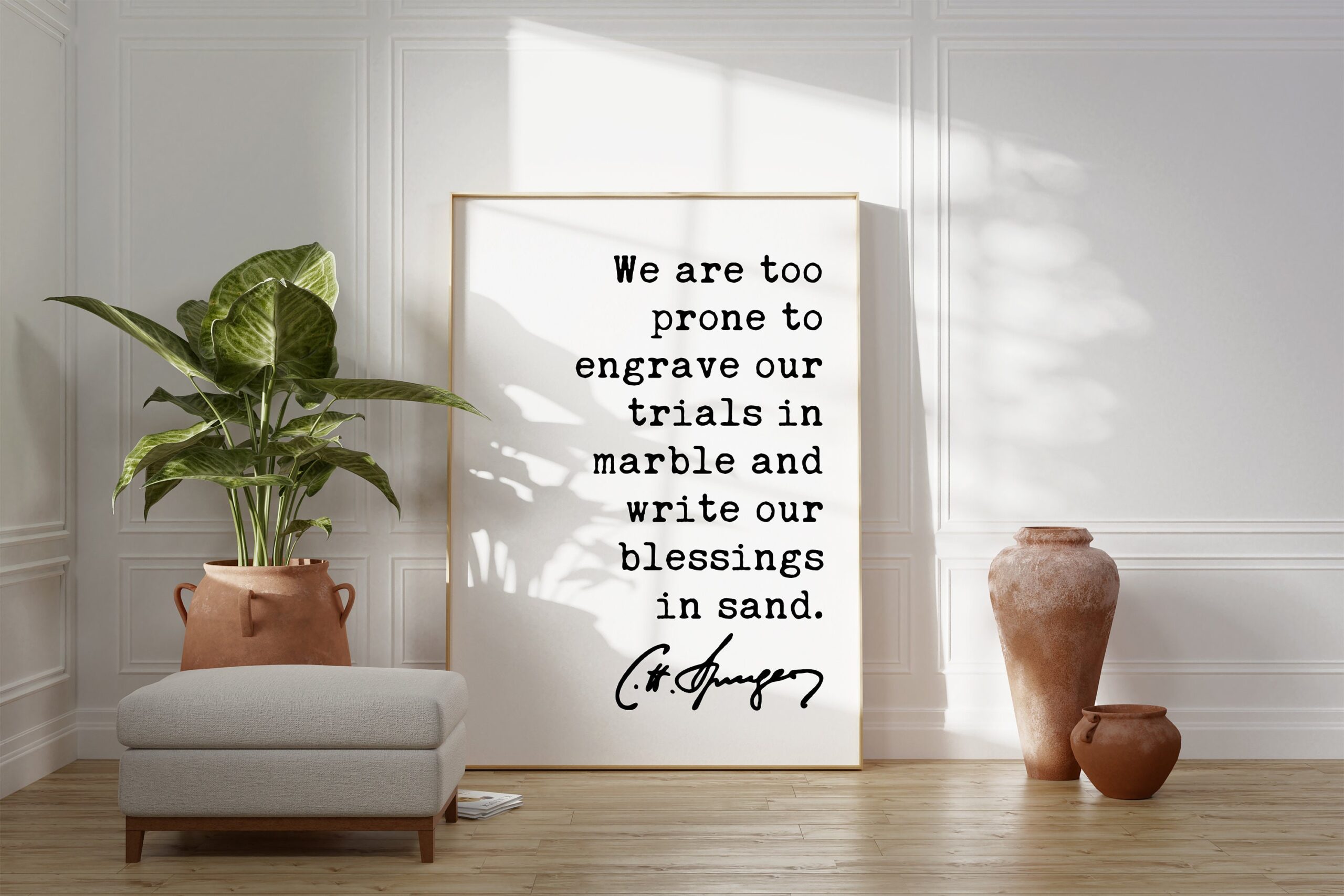 Charles Spurgeon Quote We are too prone to engrave our trials in marble and write our blessings in sand. Art Print – Religious – Spiritual