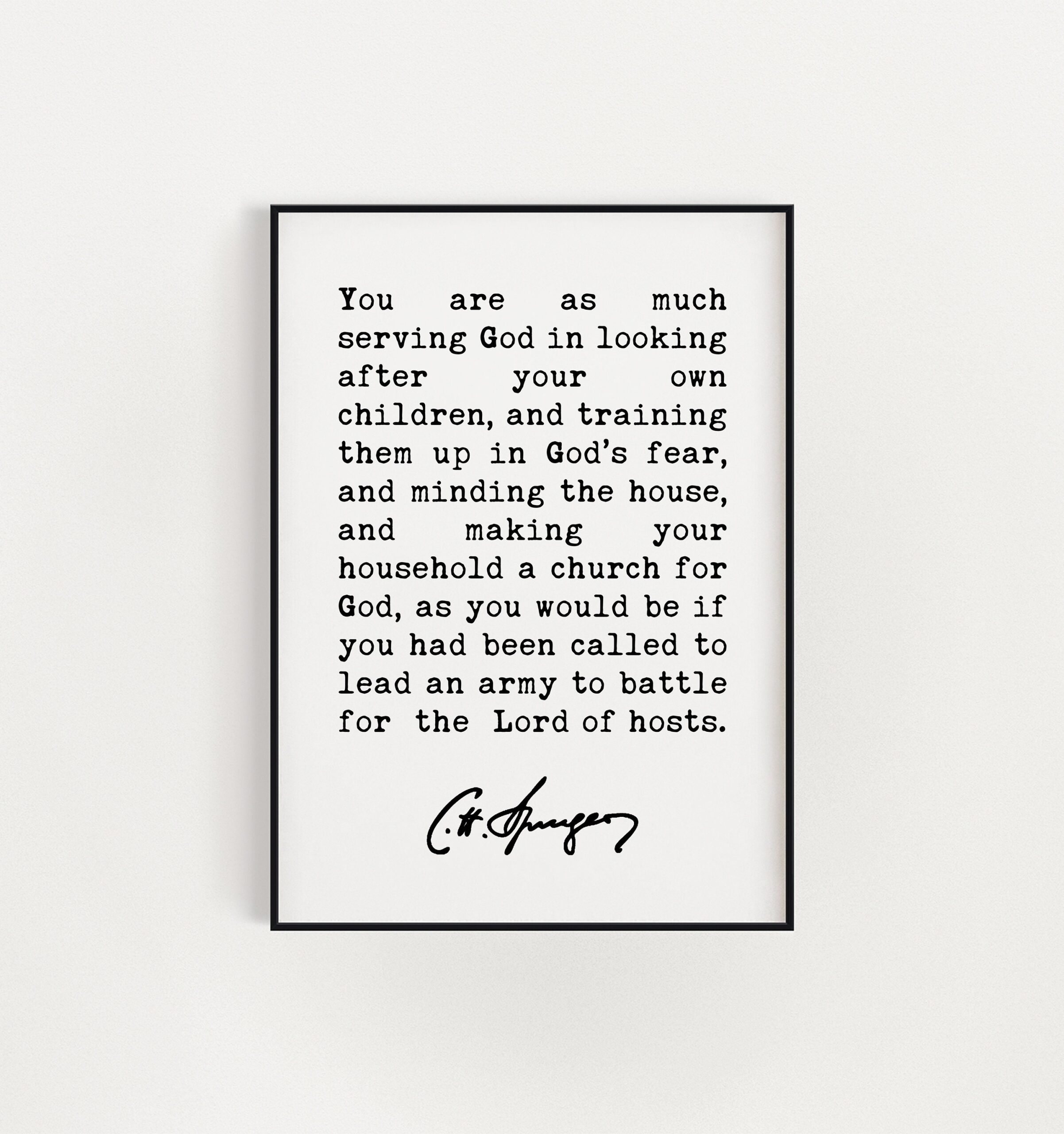 Charles Spurgeon Quote – You are as much serving God in looking after your own children Art Print – Christian – Family – Traditional