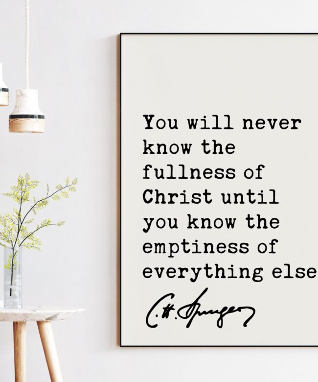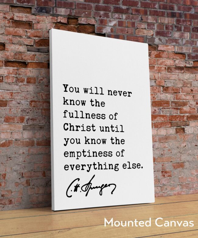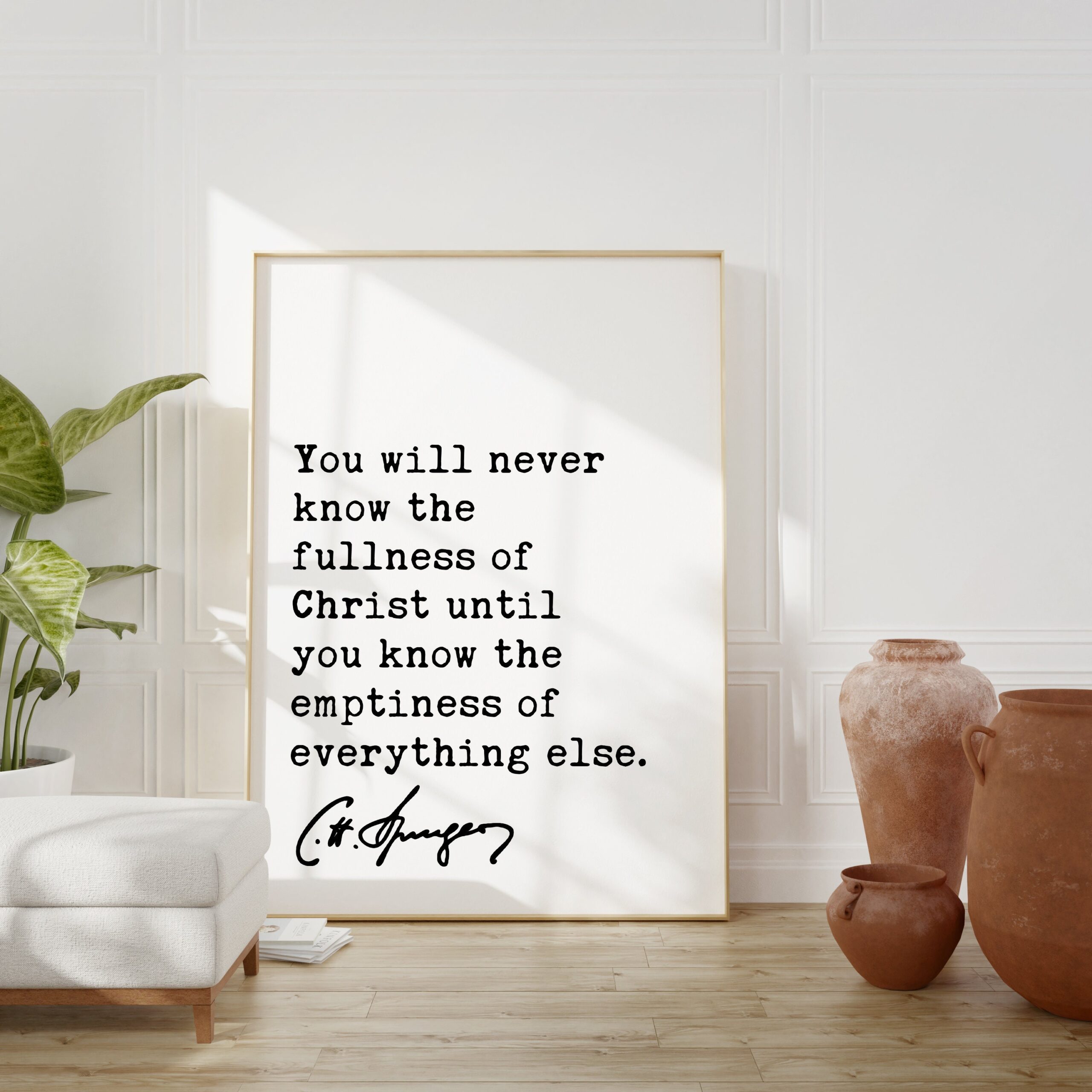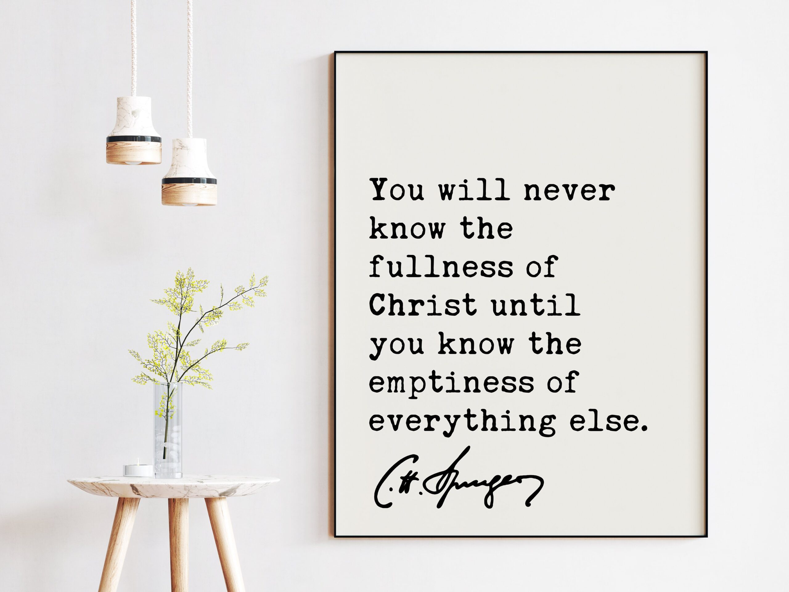 Charles Spurgeon Quote – You will never know the fullness of Christ until you know the emptiness of everything else. Art Print – Christian