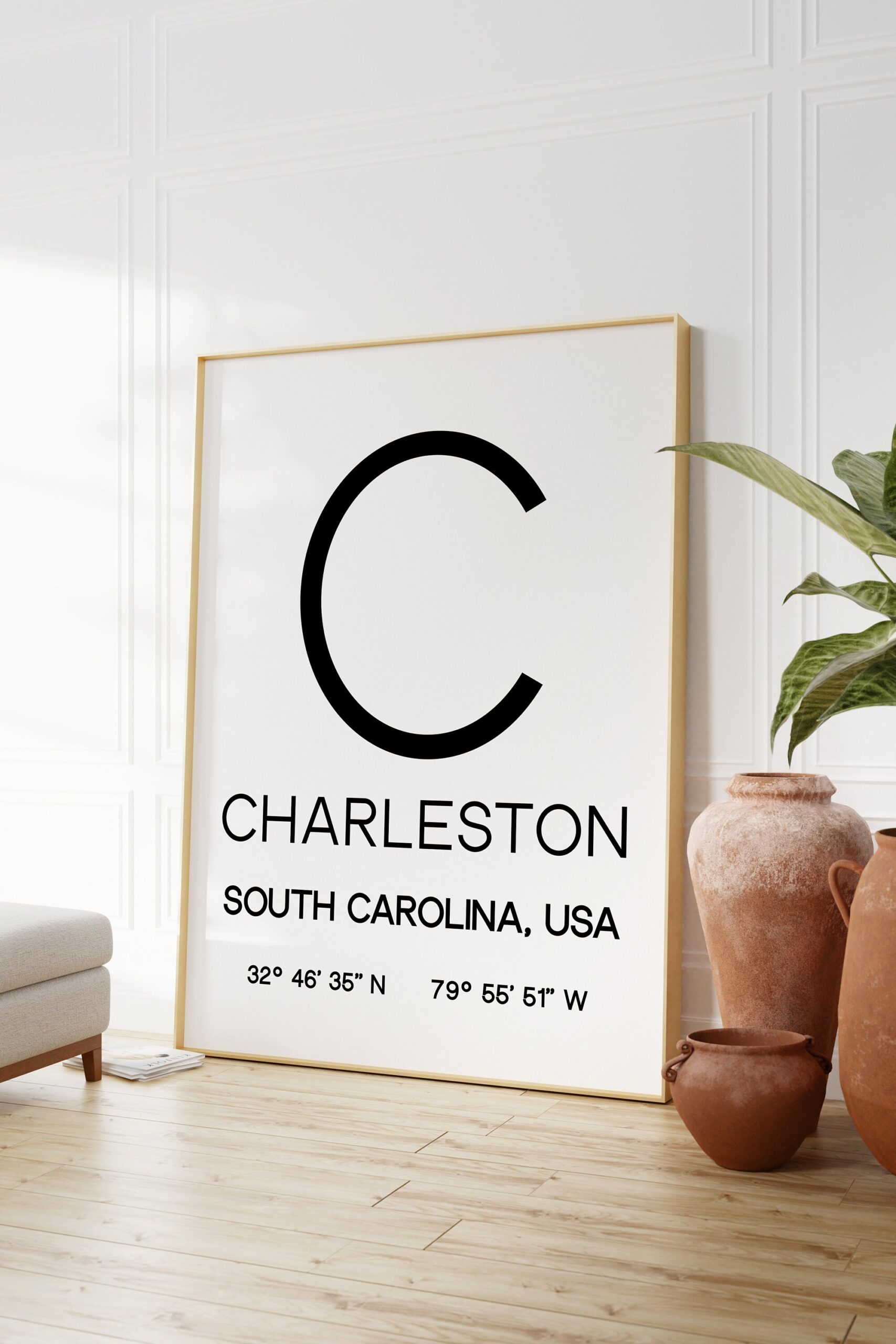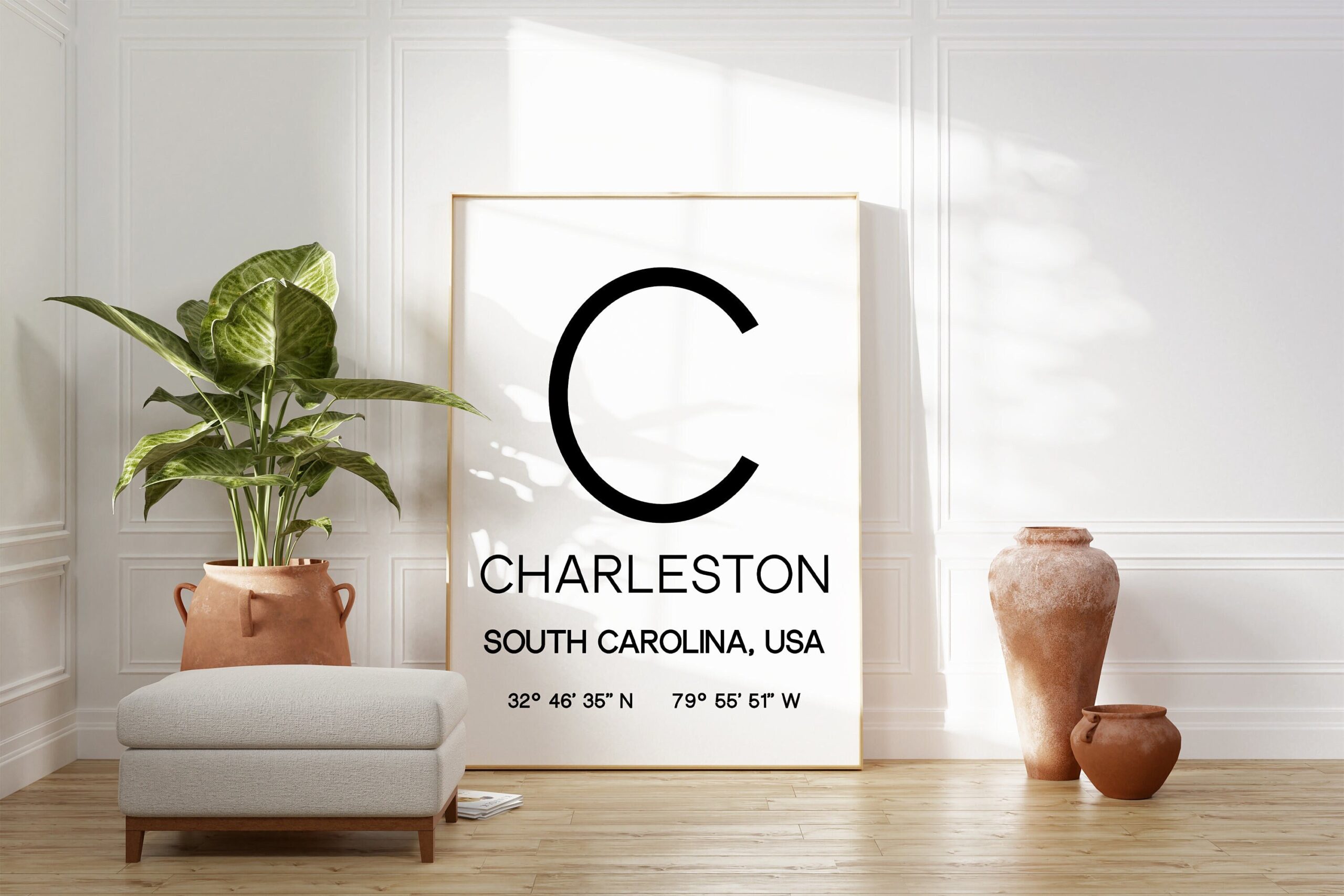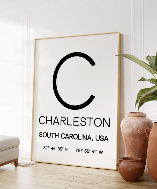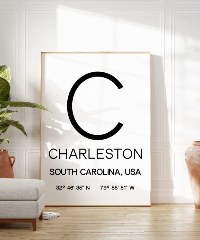 Charleston, South Carolina with GPS Coordinates Typography Art Print – Office – Home Decor – Restaurant – Apartment – Condo – Gift Ideas