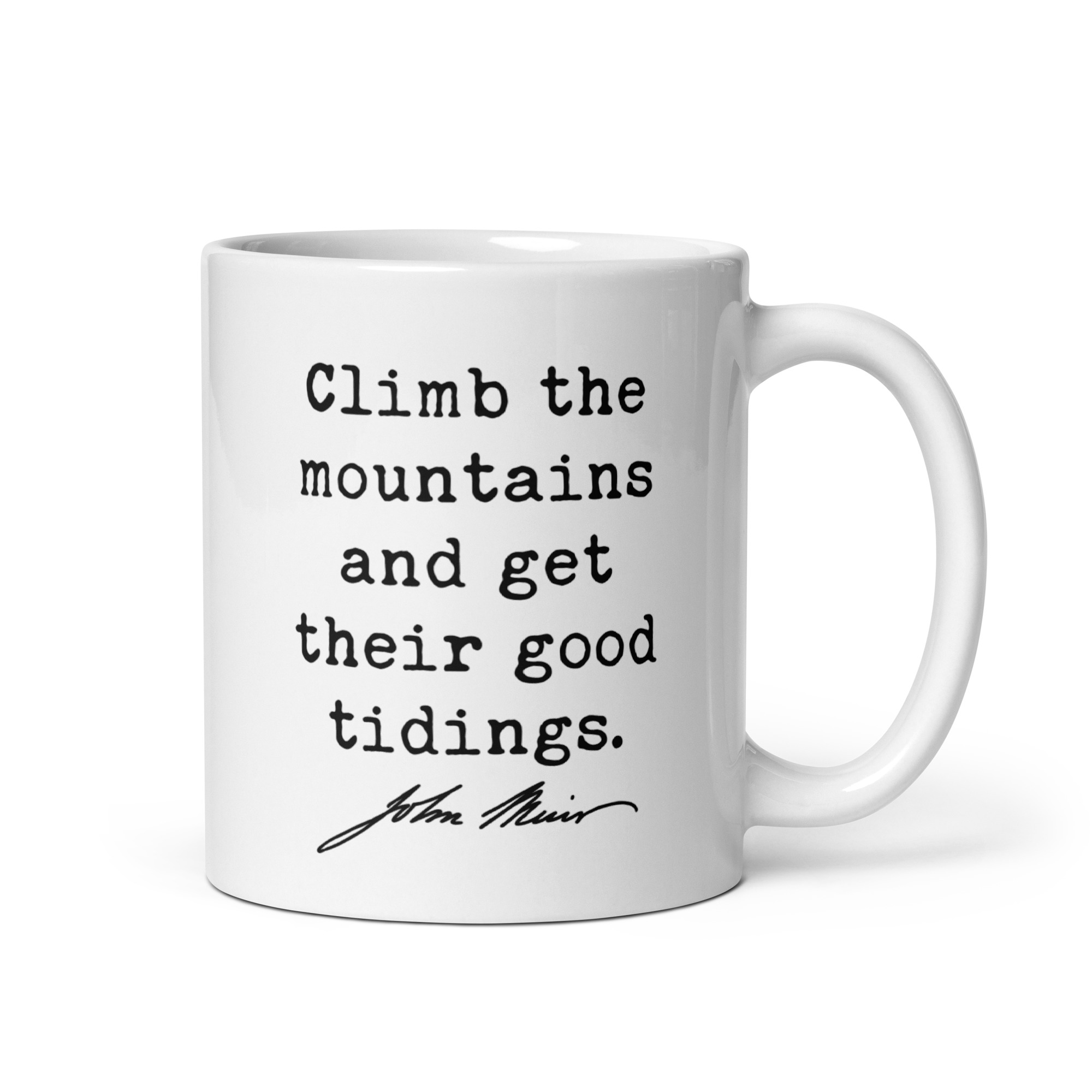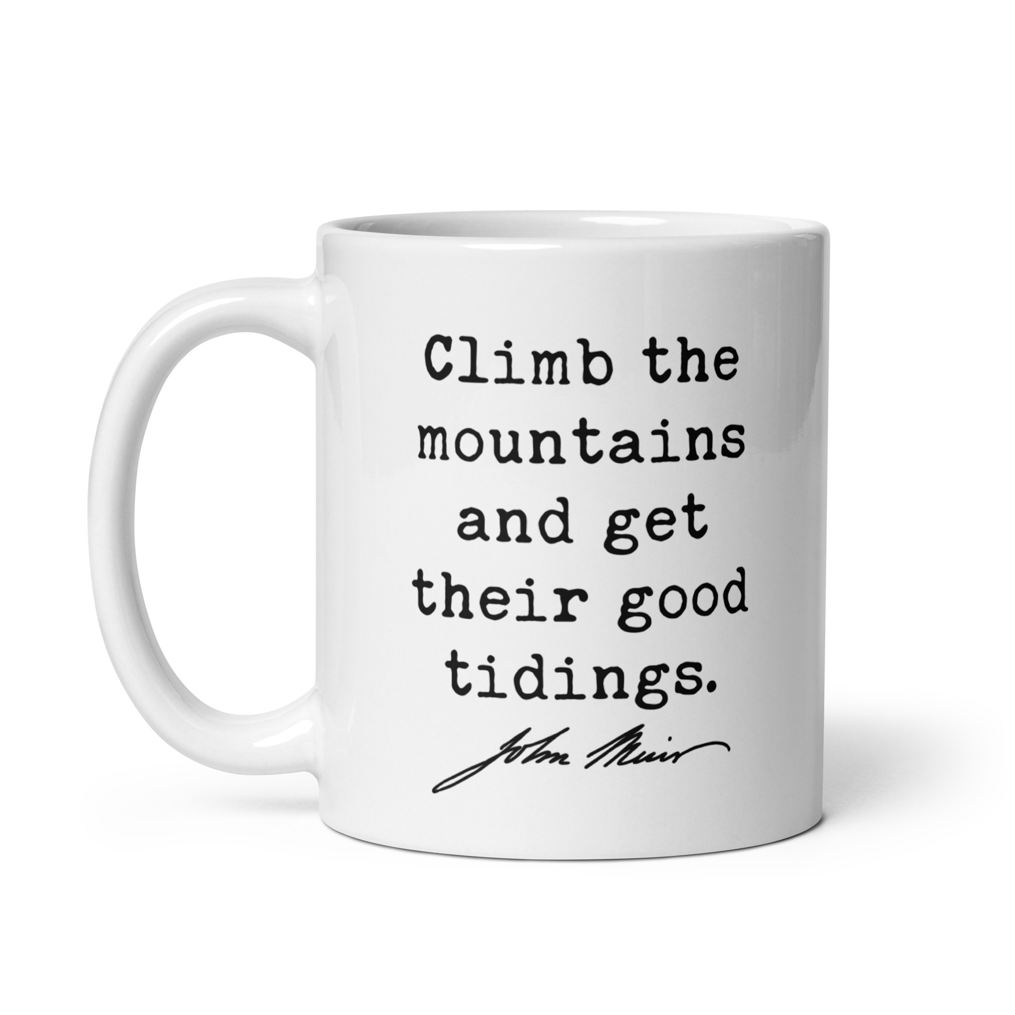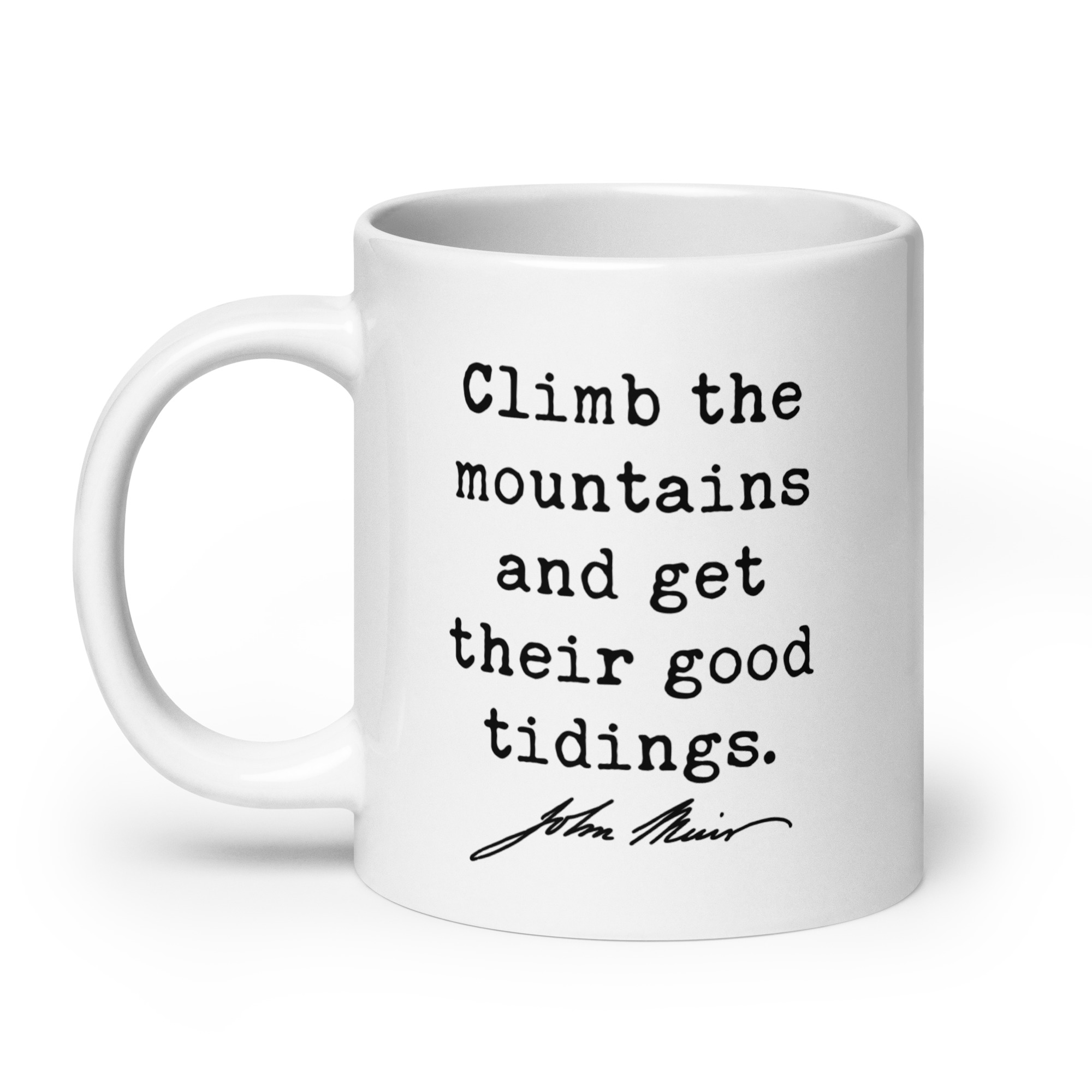 Fuel your love for the wild with this inspiring John Muir quote: “Climb the mountains and get their good tidings.” Perfect for adventurers, hikers, and nature lovers, this ceramic coffee mug serves as a daily reminder to seek peace and perspective in the great outdoors. Available in 11oz, 15oz, and 20oz sizes, it’s ideal for sipping your favorite beverage while dreaming of your next mountain escape. A meaningful gift for explorers at heart!