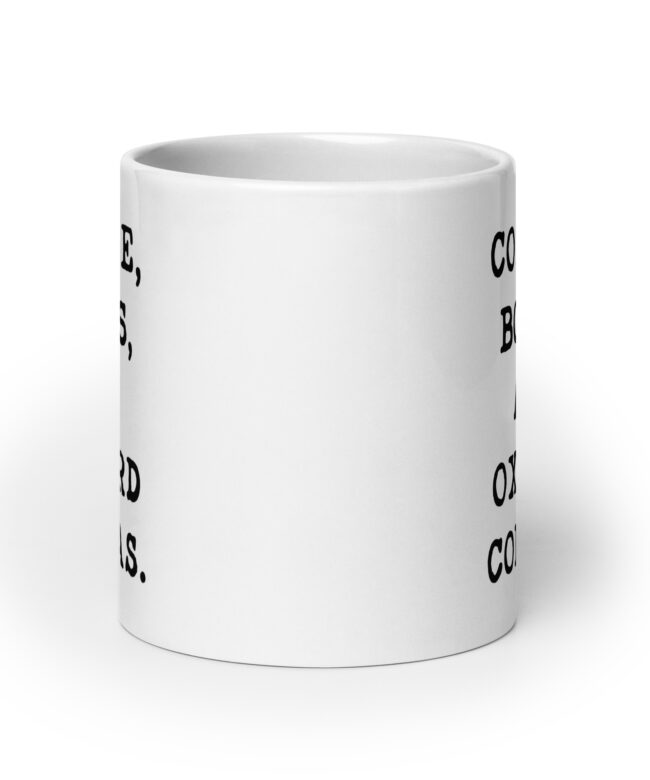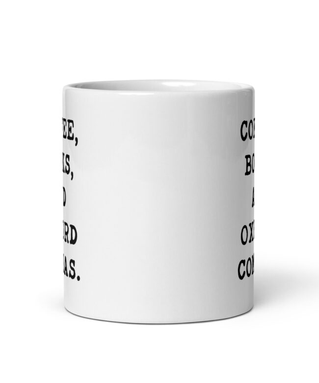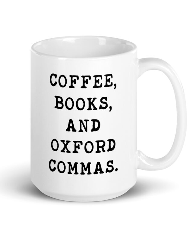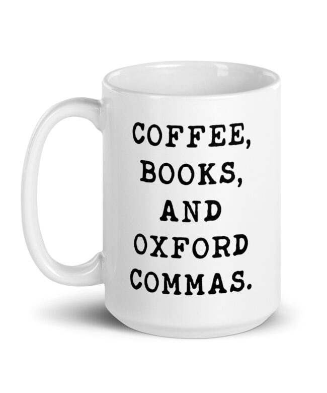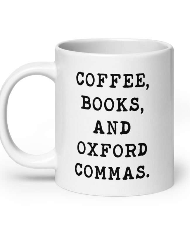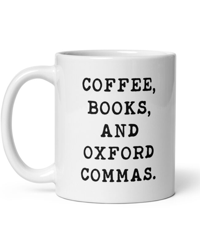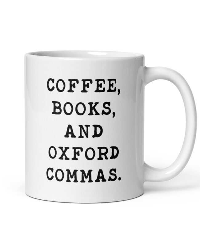 For book lovers, coffee enthusiasts, and grammar aficionados, this “Coffee, Books, and Oxford Commas” mug is the perfect companion! Whether you’re curling up with a great novel or writing your next masterpiece, this mug is a must-have for anyone who believes in the power of a good cup of coffee, a good book, and proper punctuation. Available in 11oz, 15oz, and 20oz sizes, this durable ceramic mug makes a thoughtful gift for writers, readers, or anyone who enjoys a little literary humor.