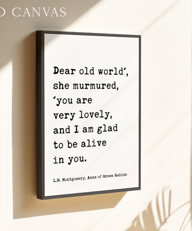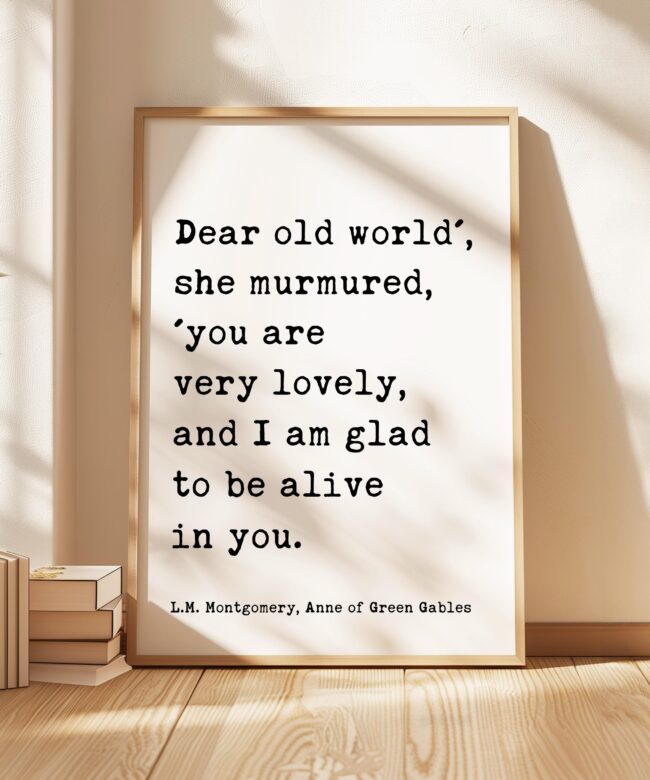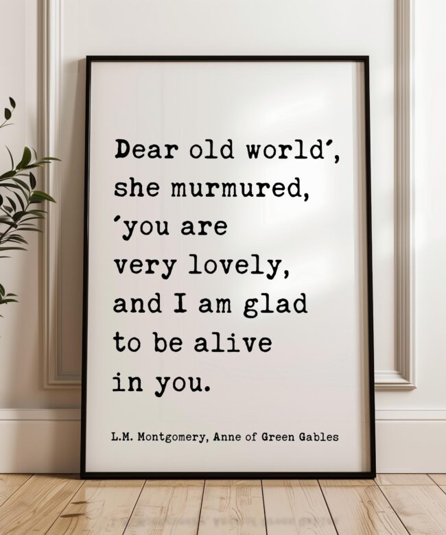 Dear old world’, she murmured, ‘you are very lovely… glad to be alive in you. ― L.M. Montgomery, Anne of Green Gables Typography Art Print