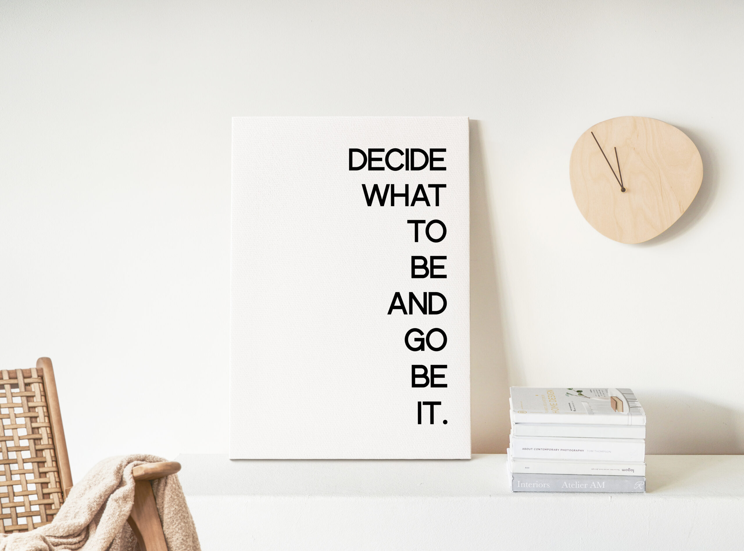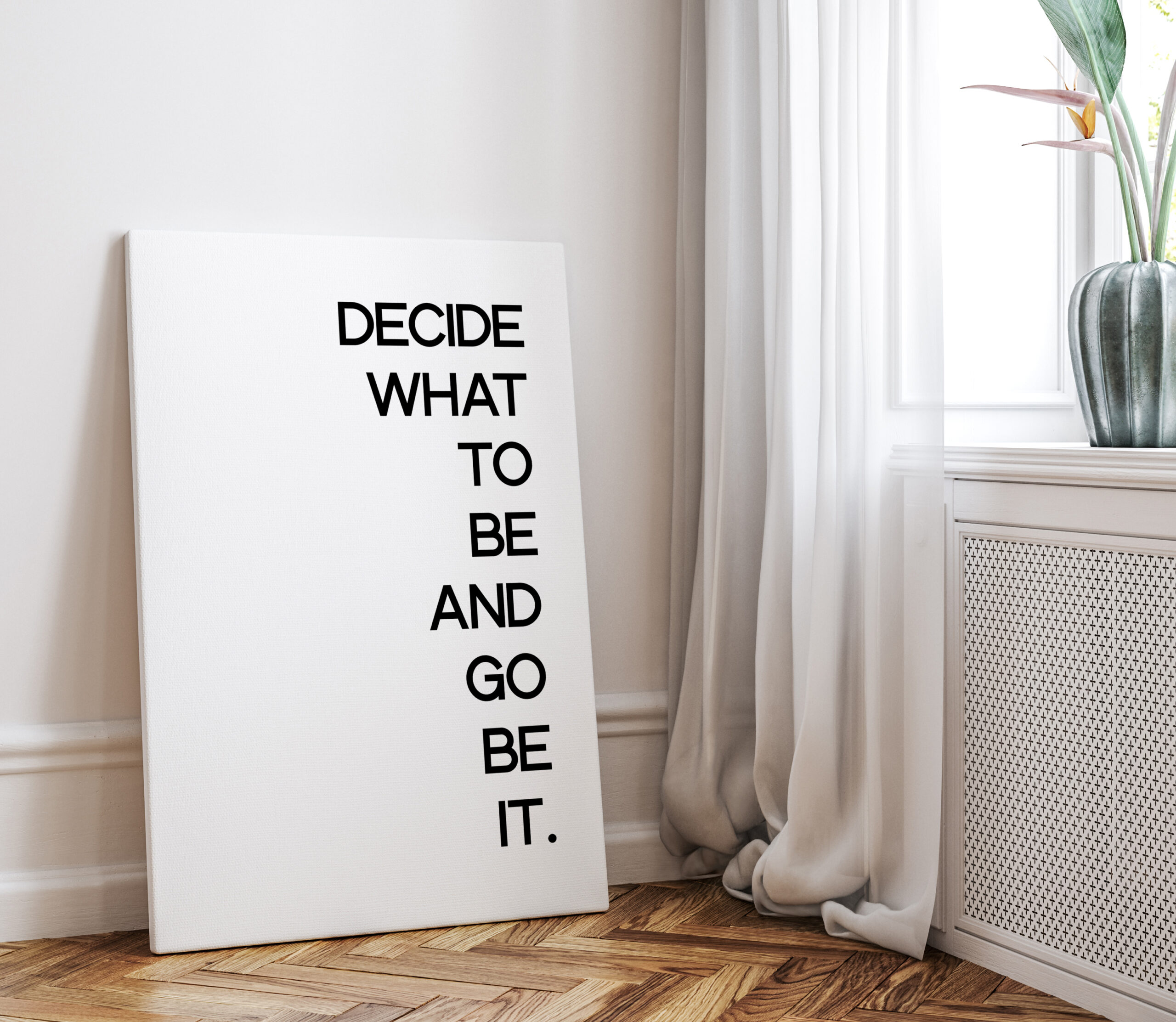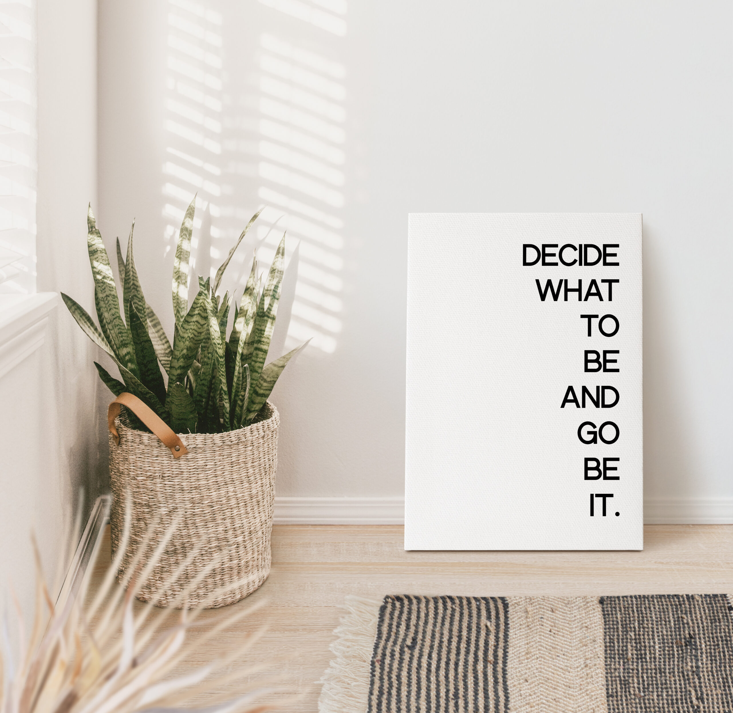 Shop for more items featuring this quote, Decide What To Be And Go Be It.