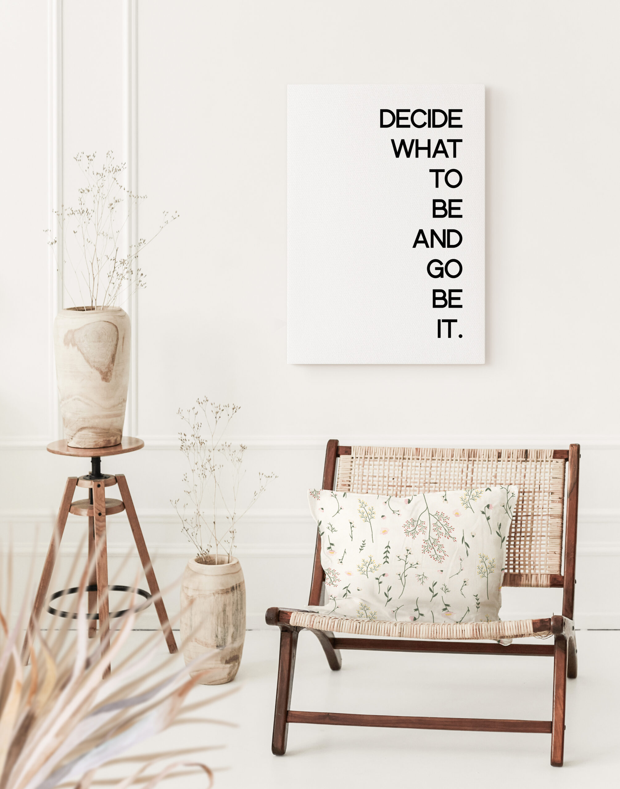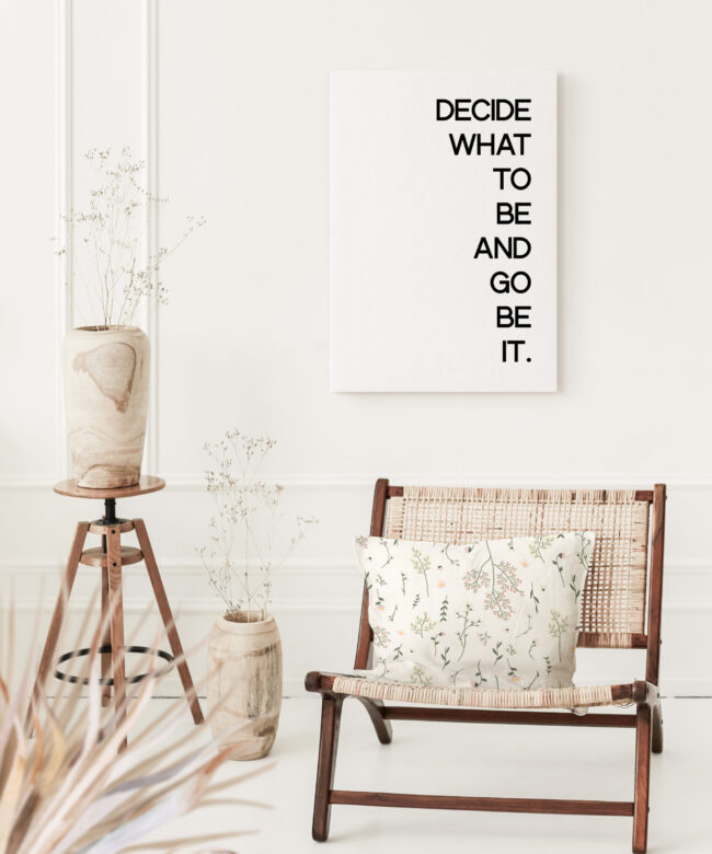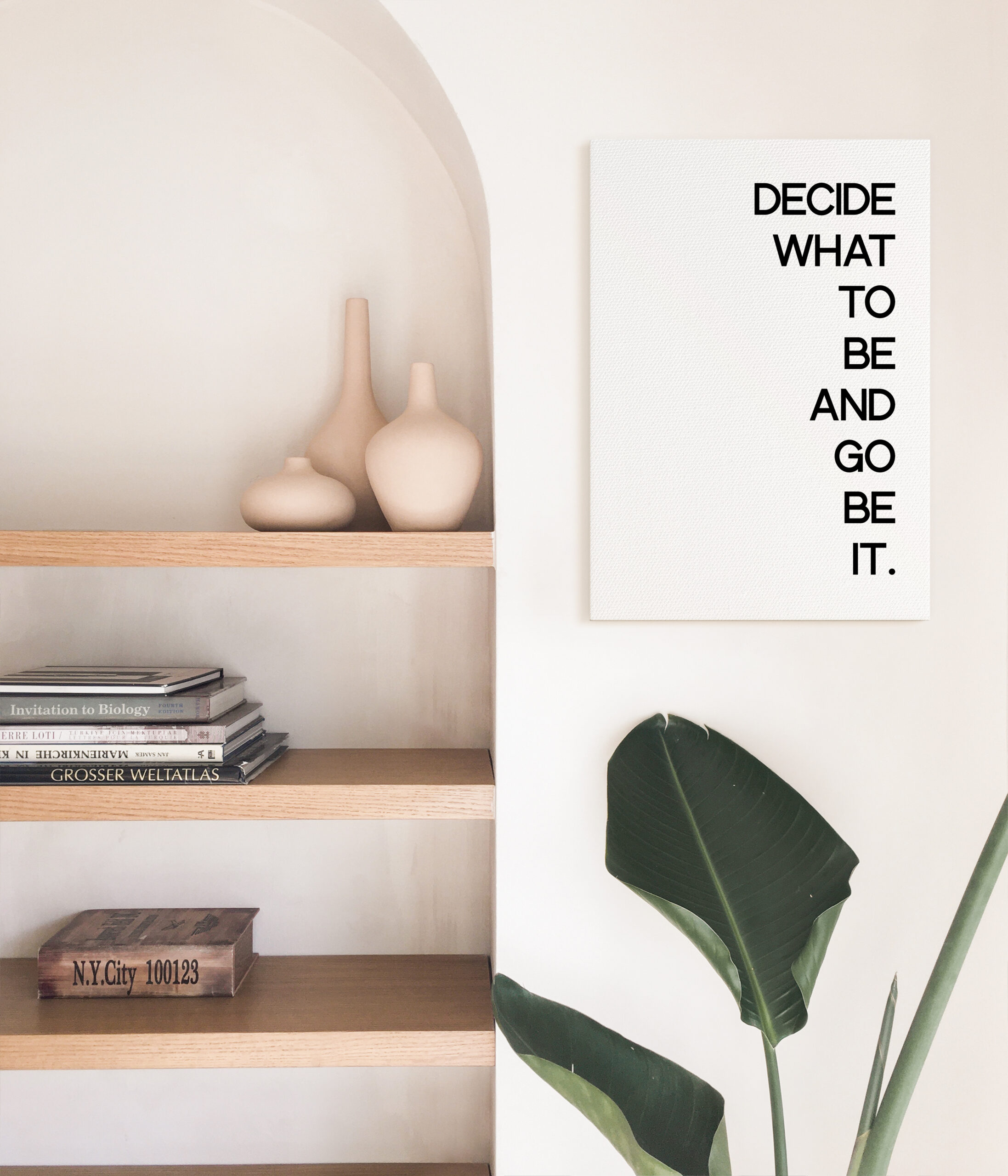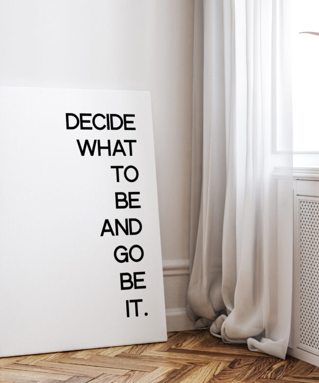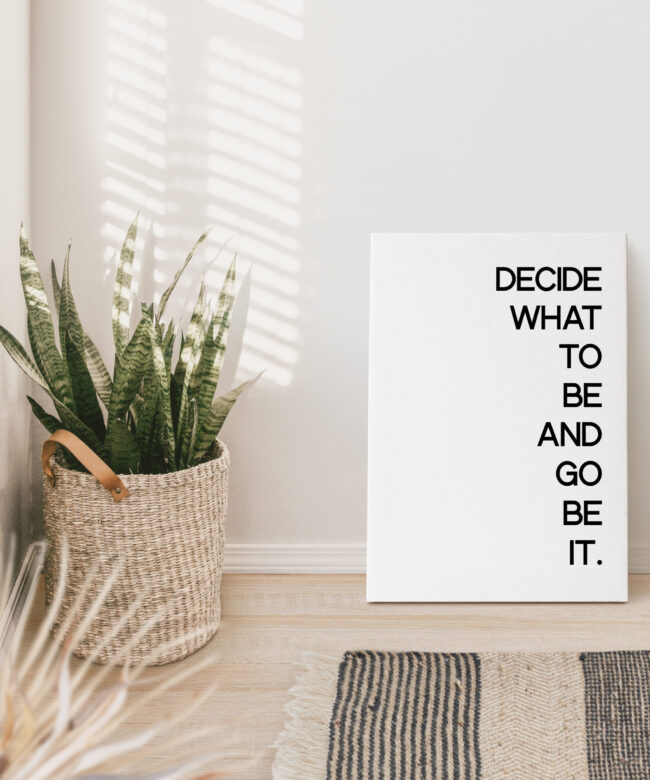 Shop for more items featuring this quote, Decide What To Be And Go Be It.