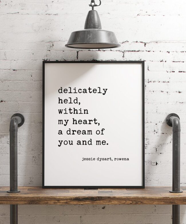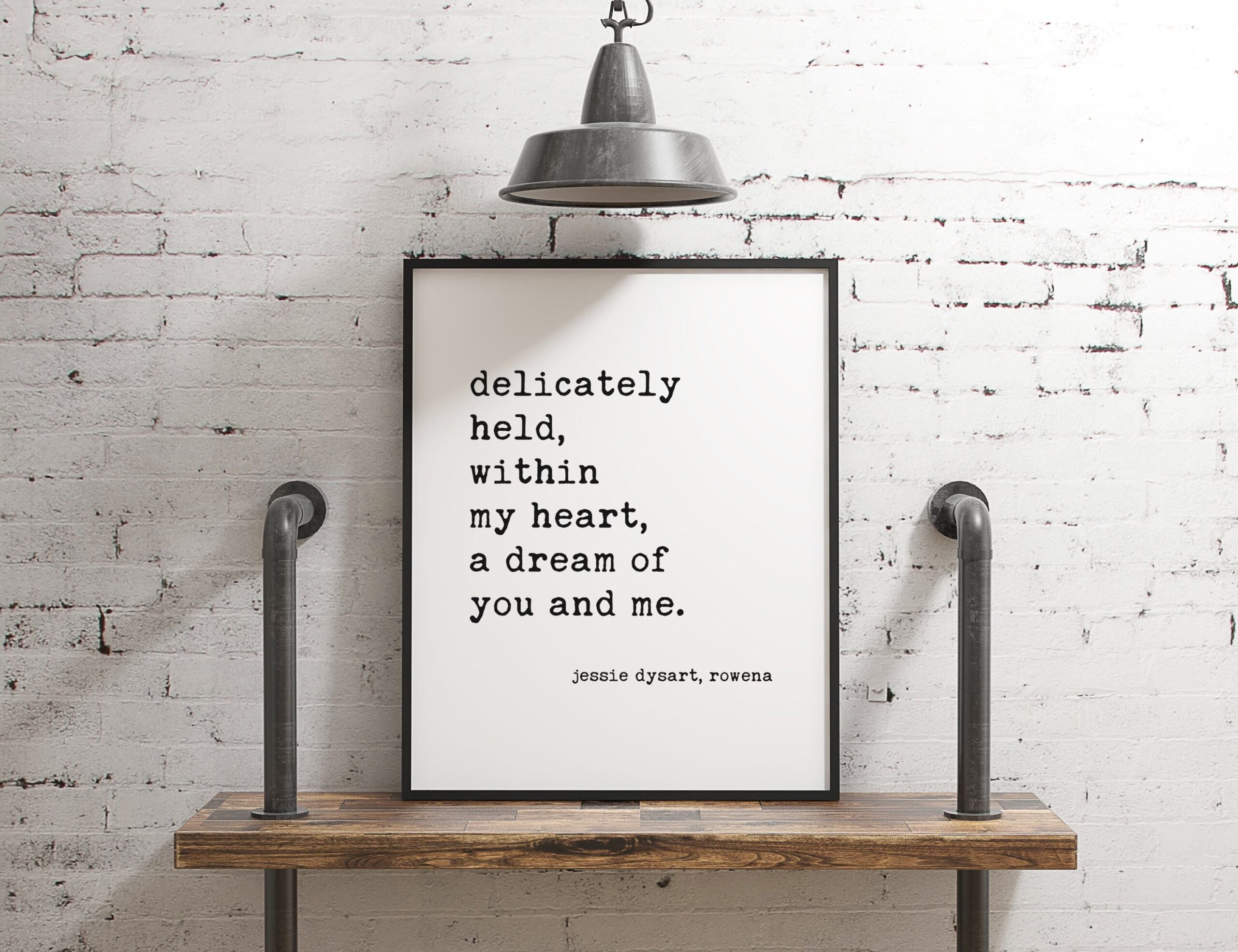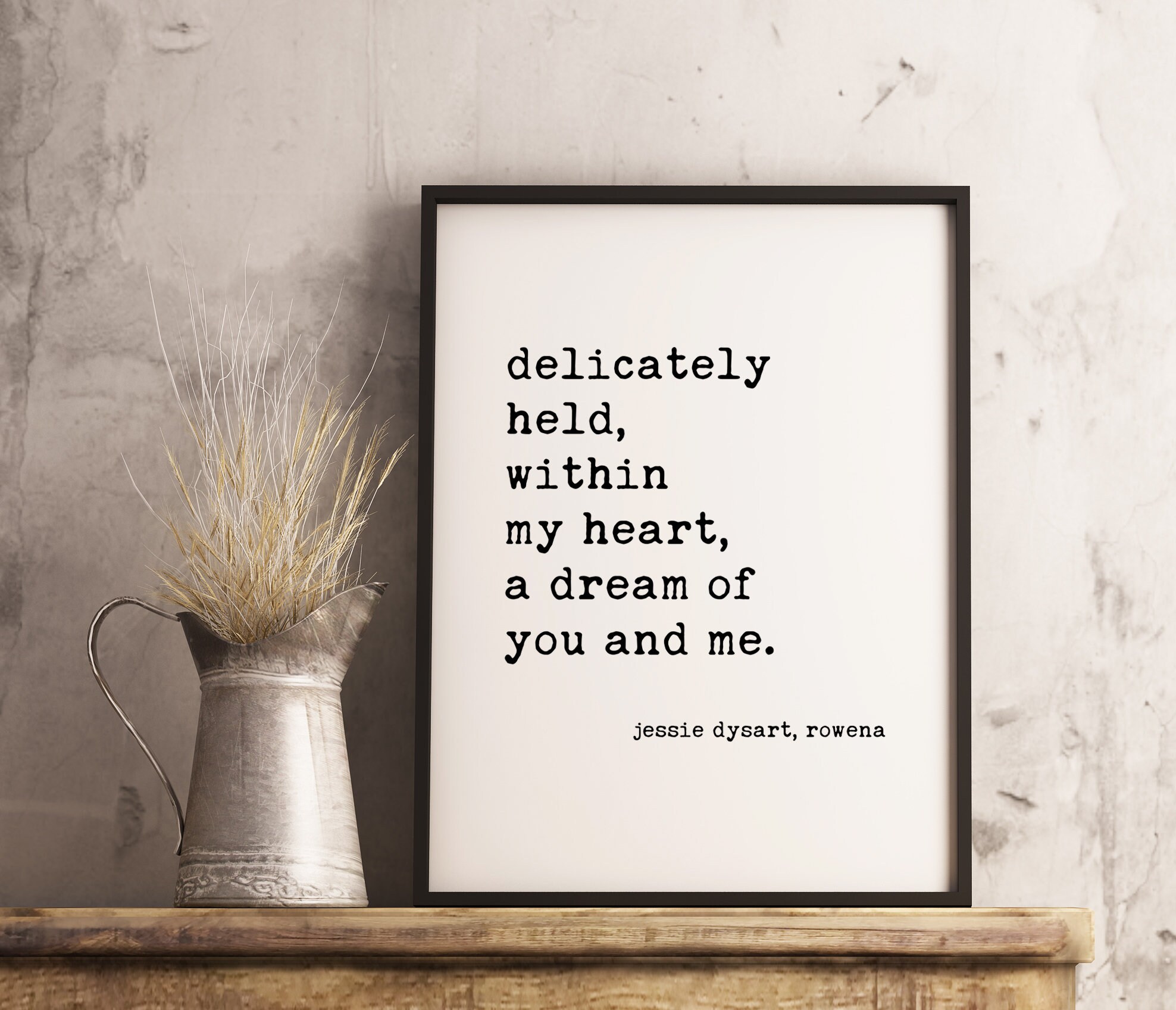 Delicately Held, Within My Heart, A Dream of You and Me. – Jessie Dysart, Rowena – Typography Print – Home Wall Decor – Wedding Quotes