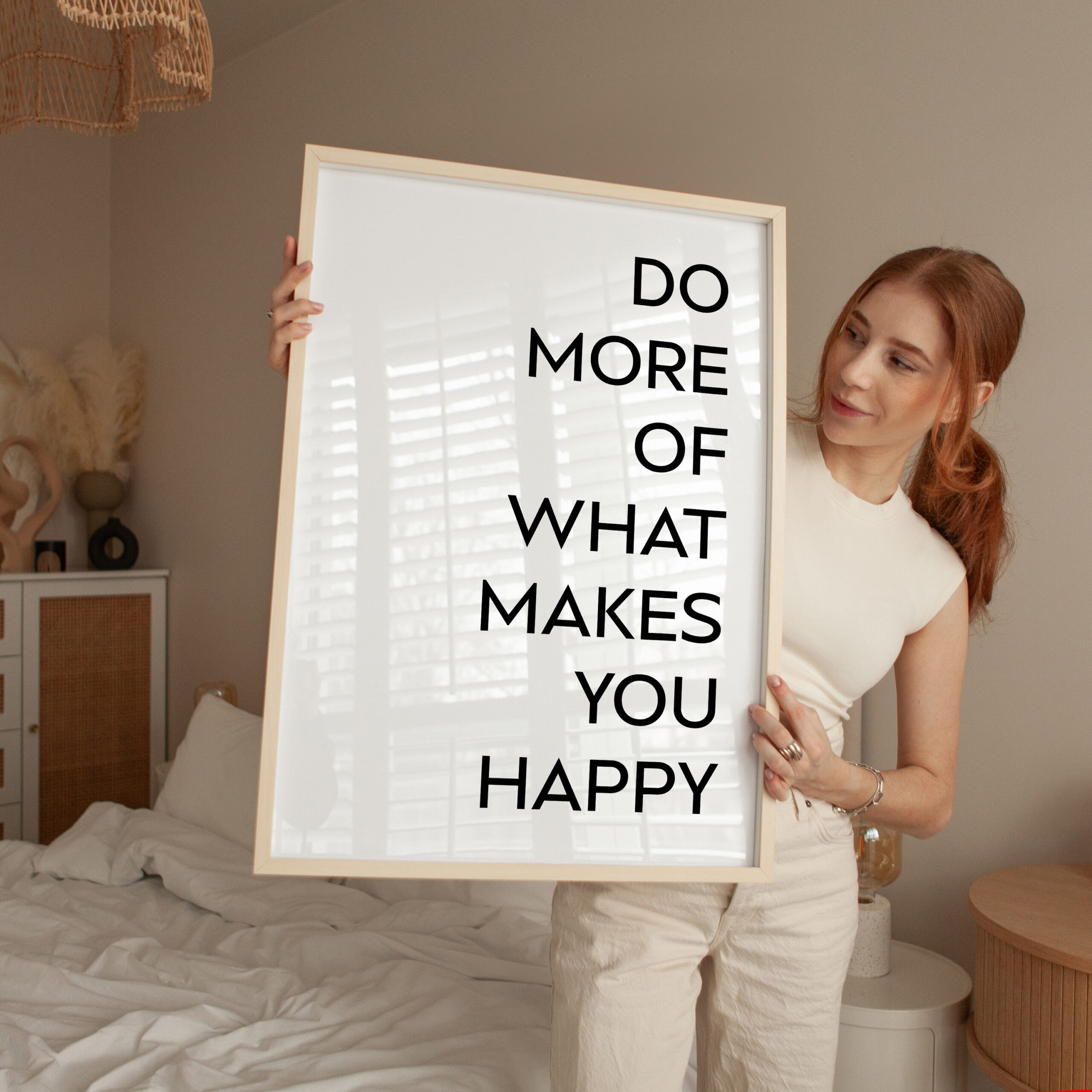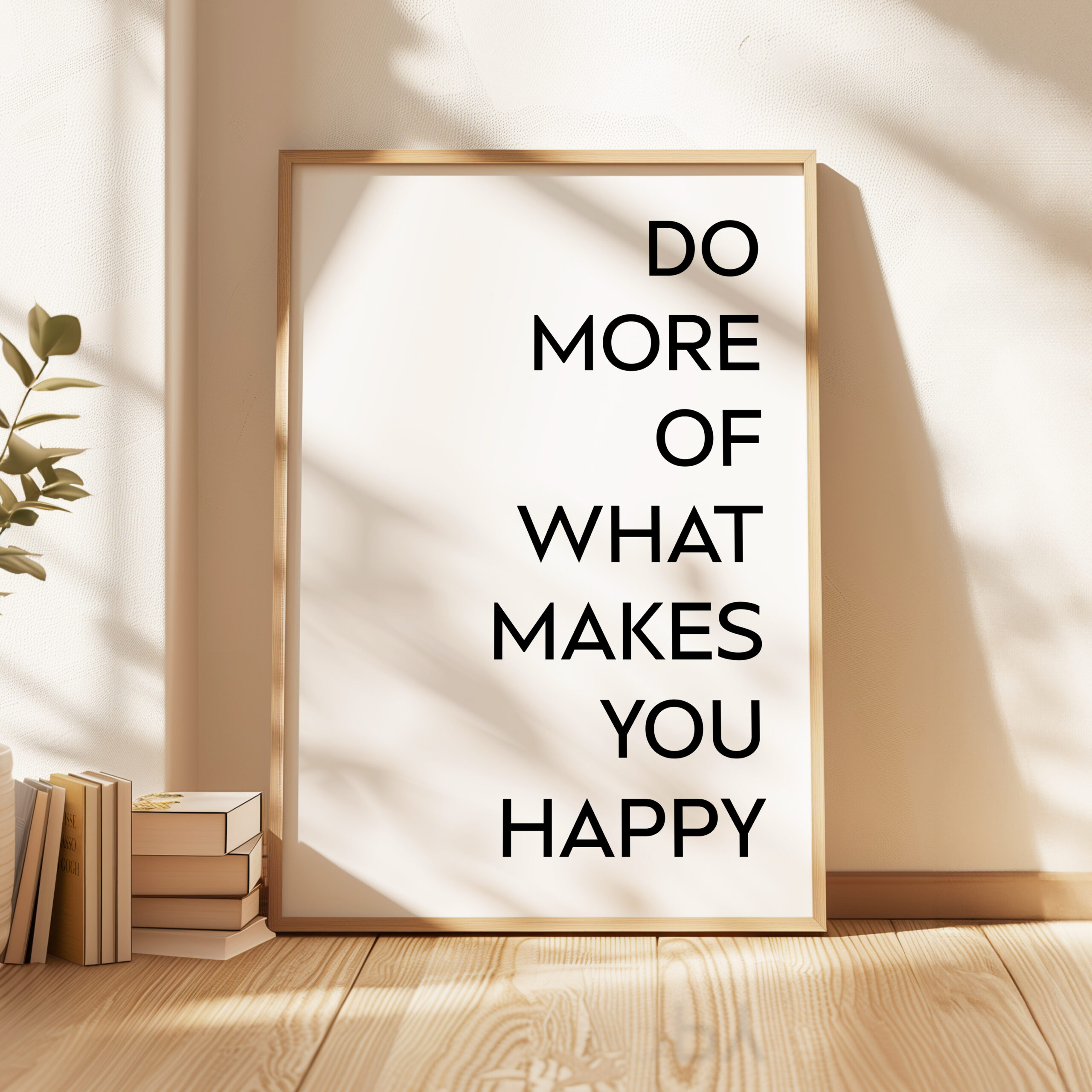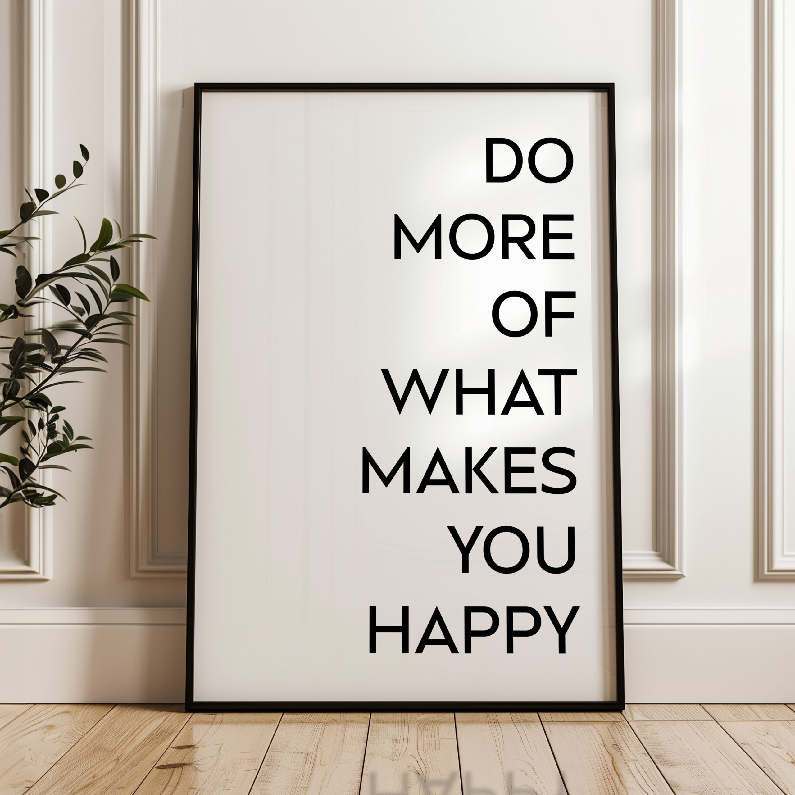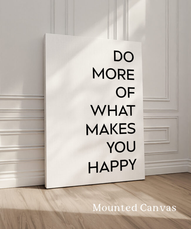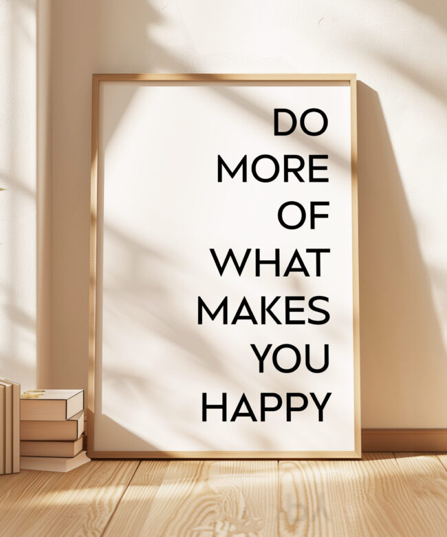 Celebrate your commitment to personal growth and happiness with this impactful Typography Art Print. The bold, minimalist design features the empowering statement “DO MORE OF WHAT MAKES YOU HAPPY”, encouraging you to focus on the people, hobbies, and moments that truly fulfill you. This artwork serves as a daily reminder to prioritize your well-being and to embrace the activities that bring you joy and a sense of purpose. Whether displayed in your living space, workspace, or gifted to a loved one, this piece will inspire you to live authentically and make the most of each day.
