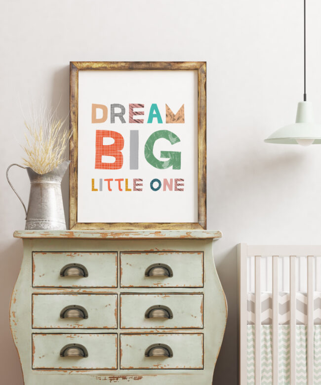 Dream Big Little One, Nursery Wall Art, Wall Decor, Kids Room Art, Typography Print, Day Care Art, School Art, Classroom Wall Art