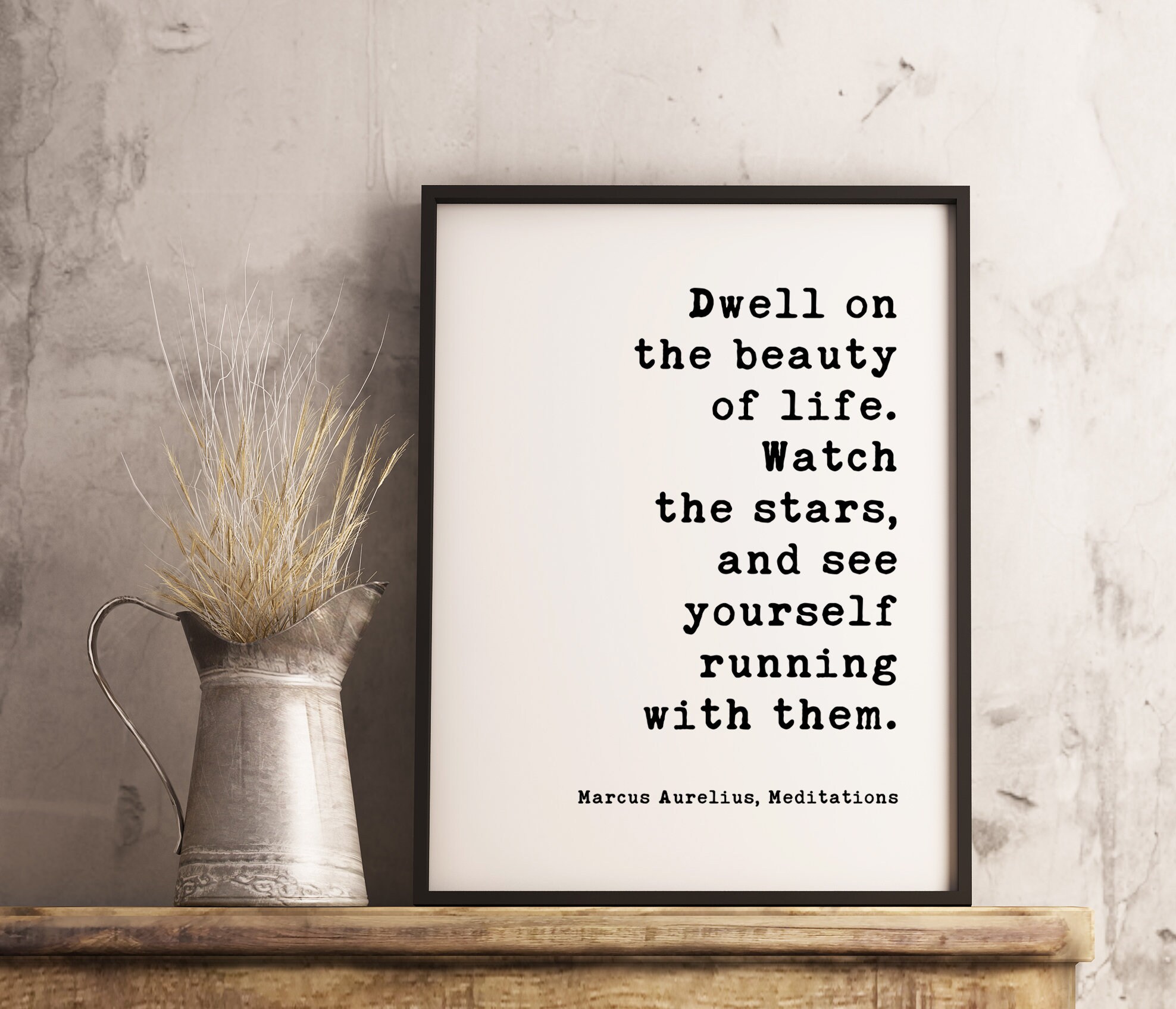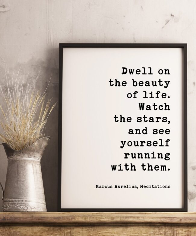 Dwell on the beauty of life. Watch the stars, and see yourself running with them. Marcus Aurelius, Meditations Typography Print