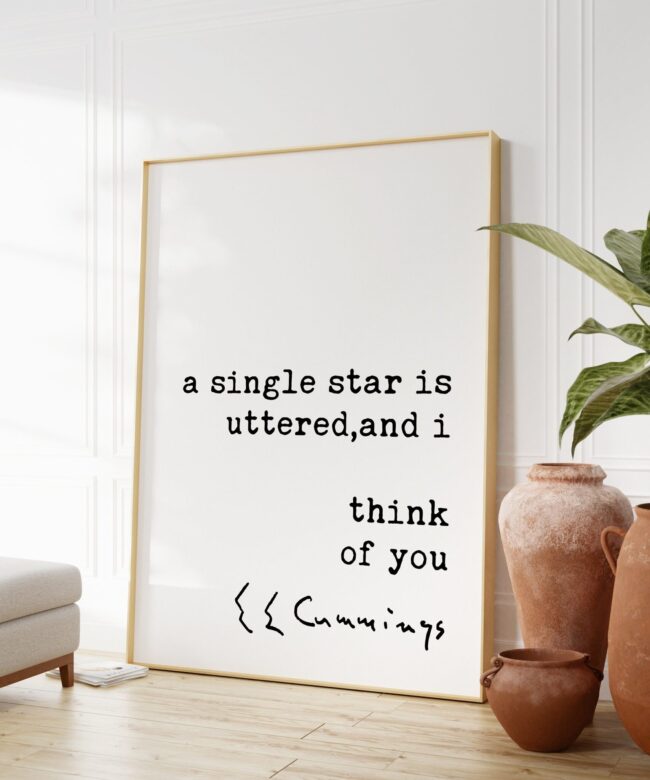 E.E. Cummings Quote – A Single Star is Uttered, and I Think of You Typography Art Print – Love – Wedding – Marriage