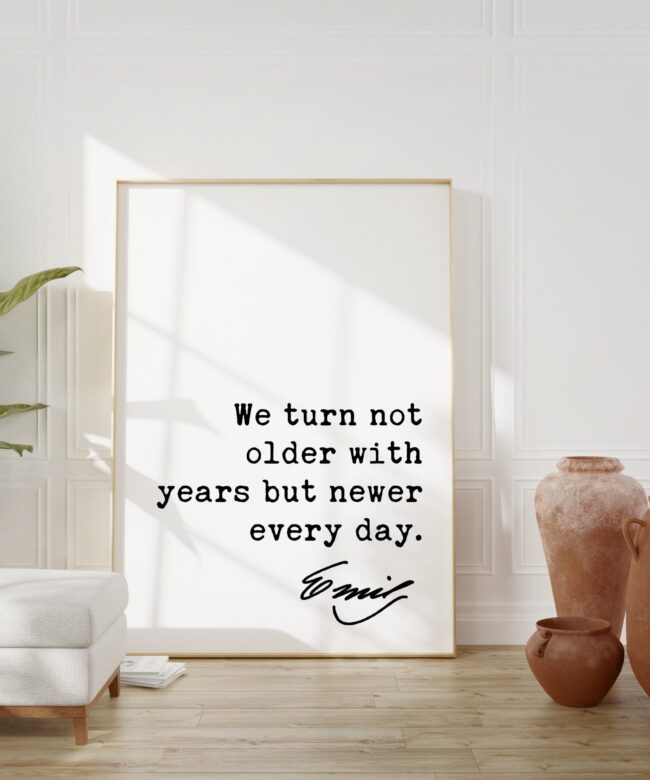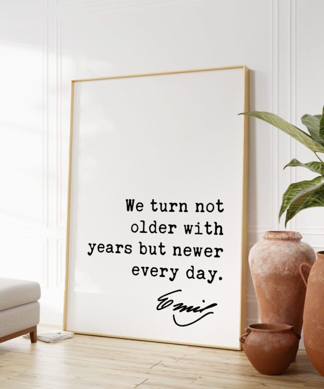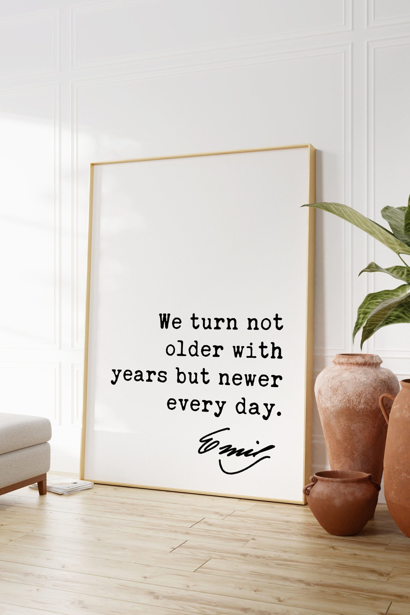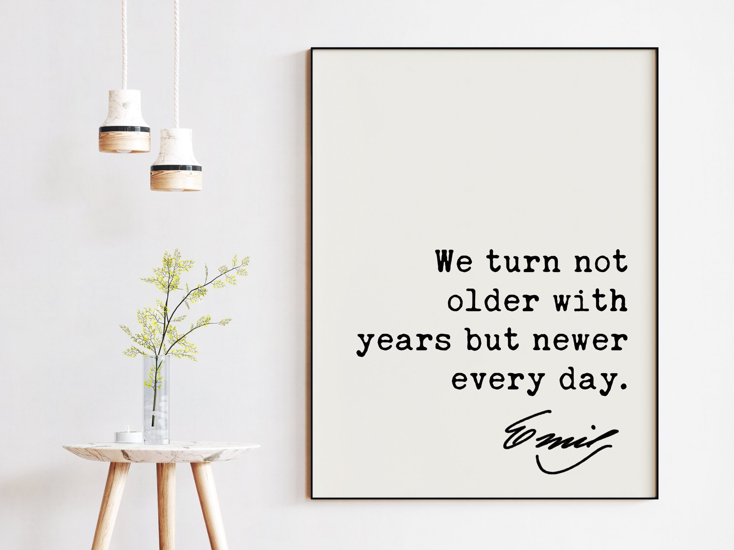 Emily Dickinson Quote – We turn not older with years but newer every day. Typography Art Print – Encouragement – Inspirational – Wisdom